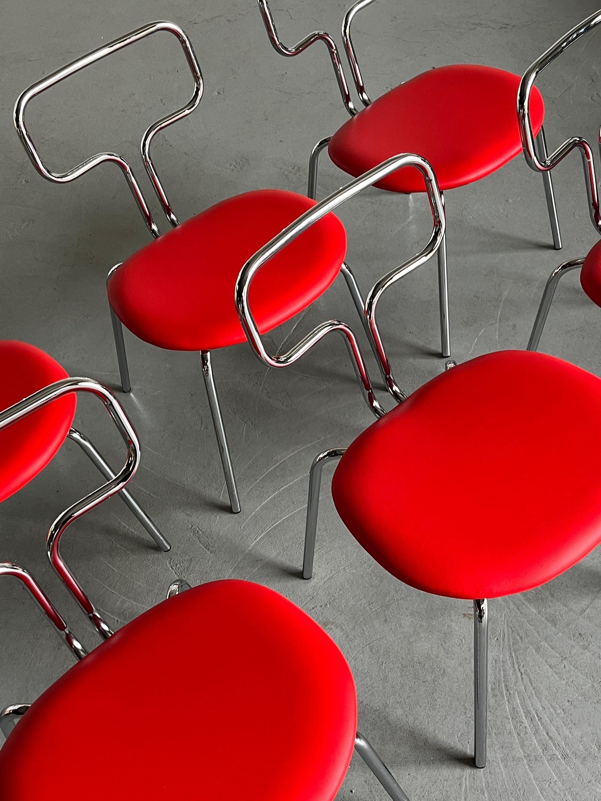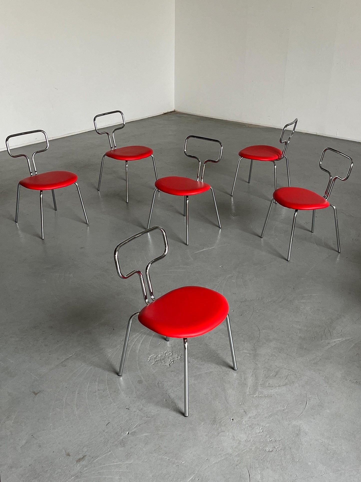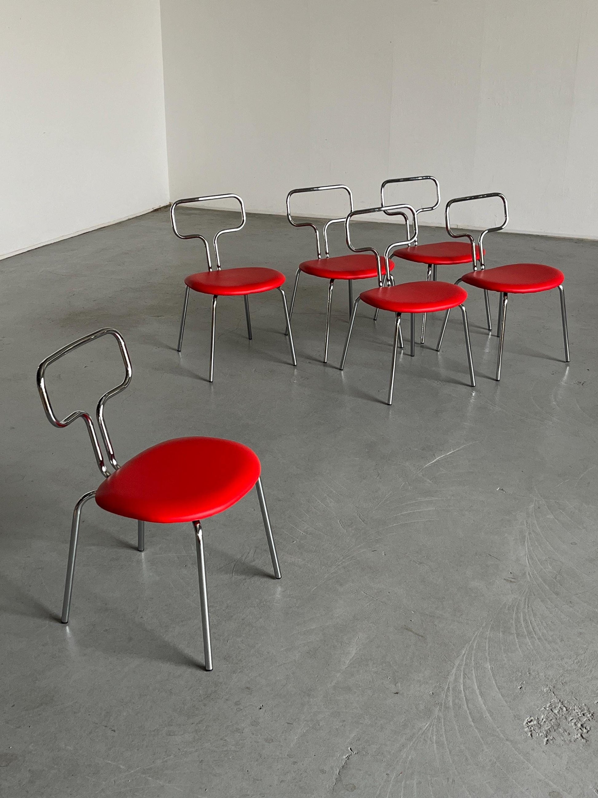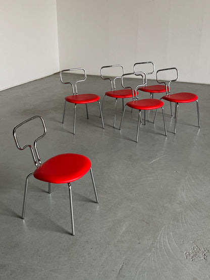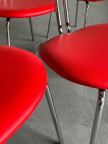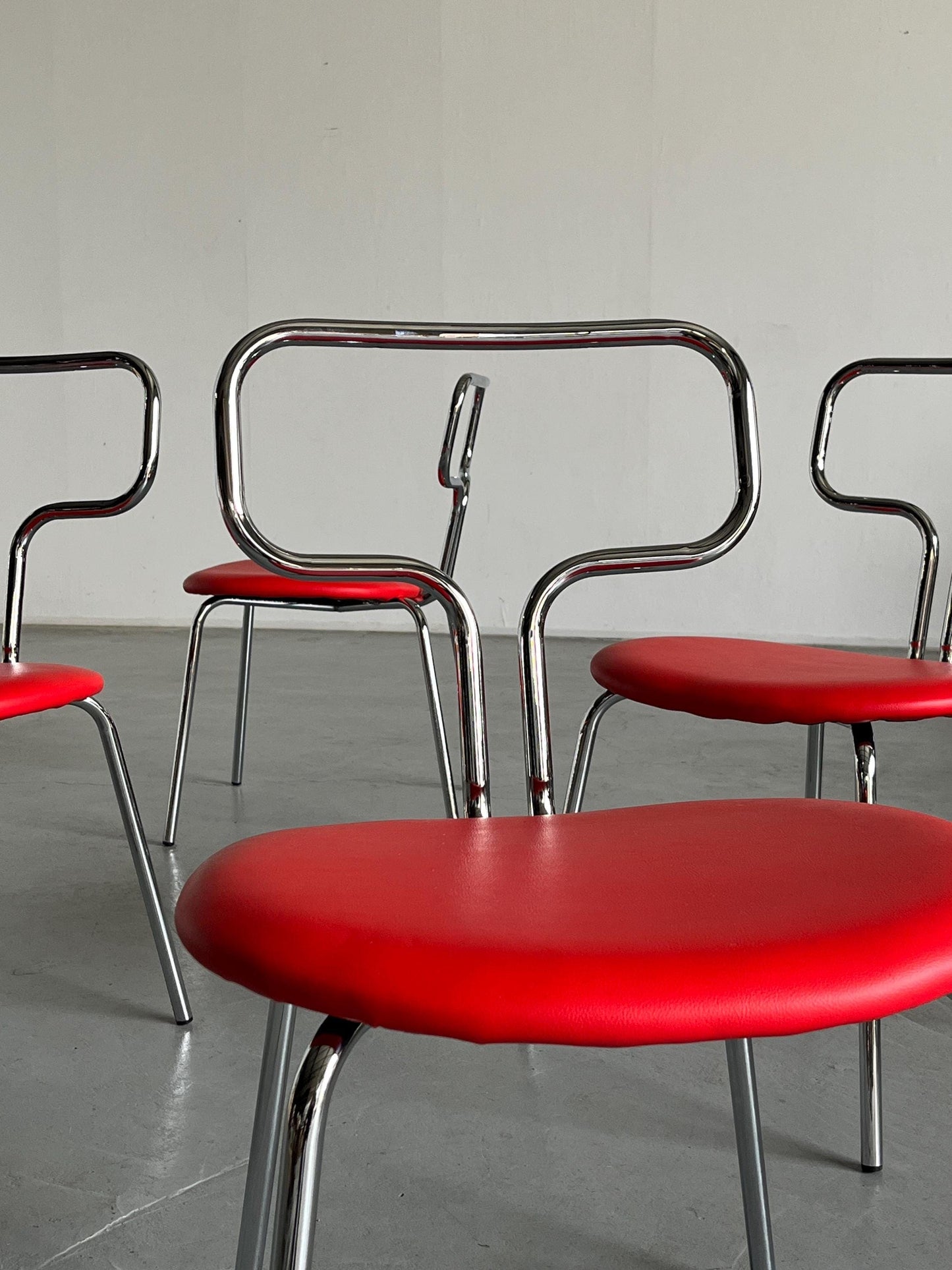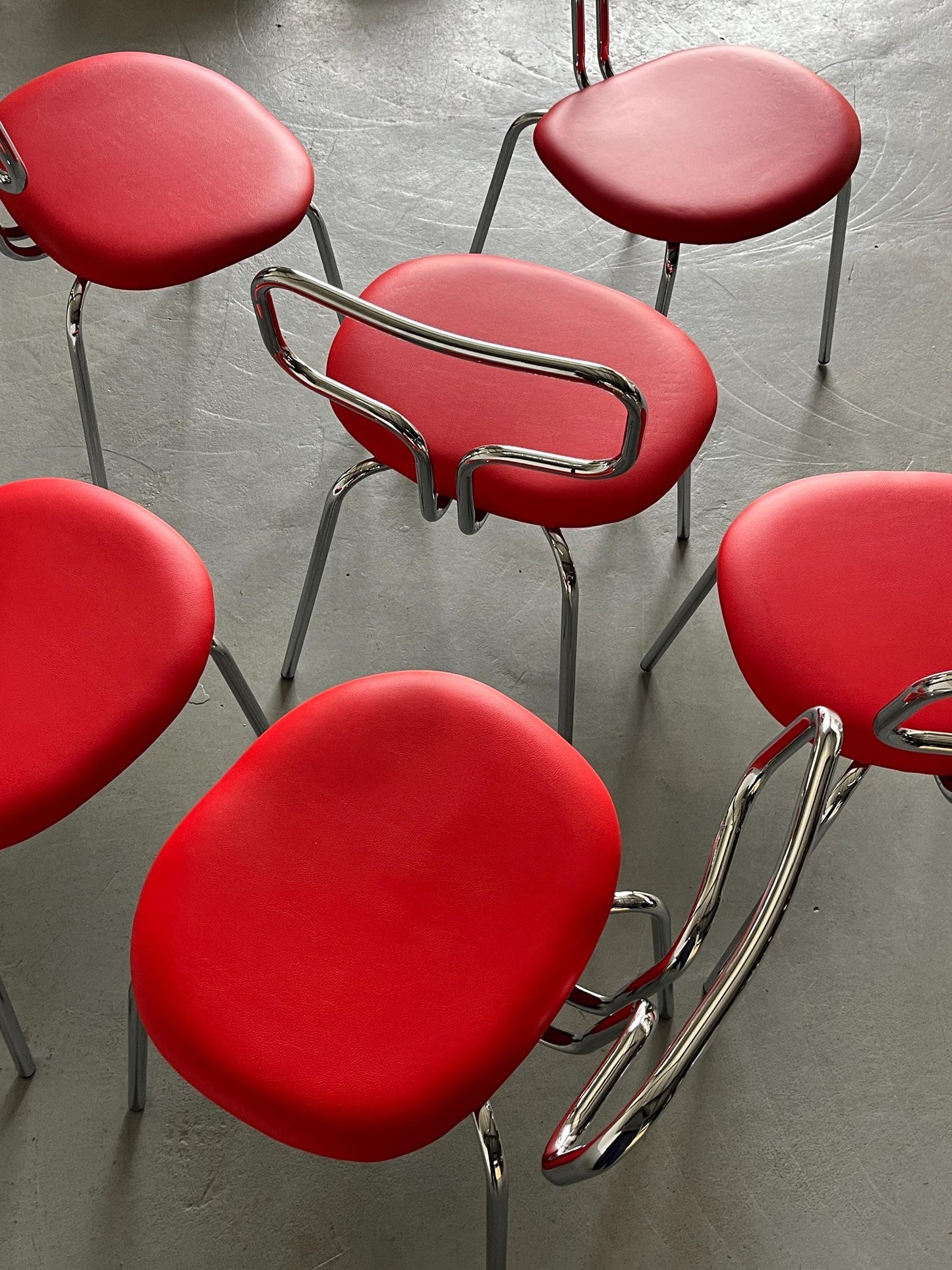 Vintage dining chair Bauhaus design chrome steel and imitation leather