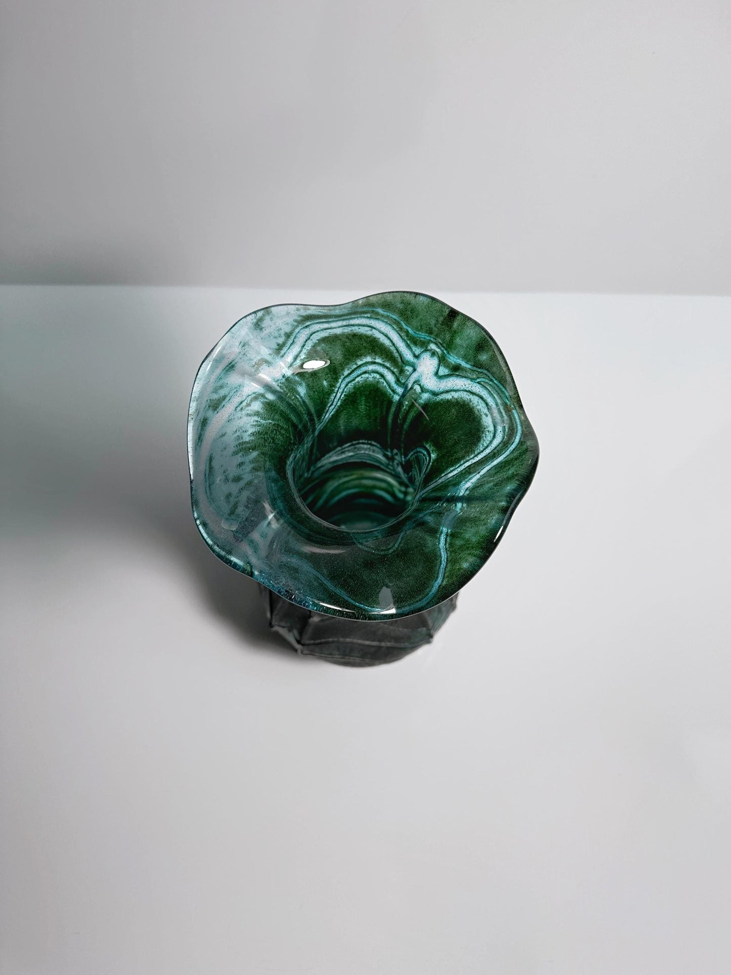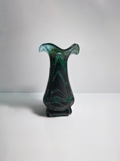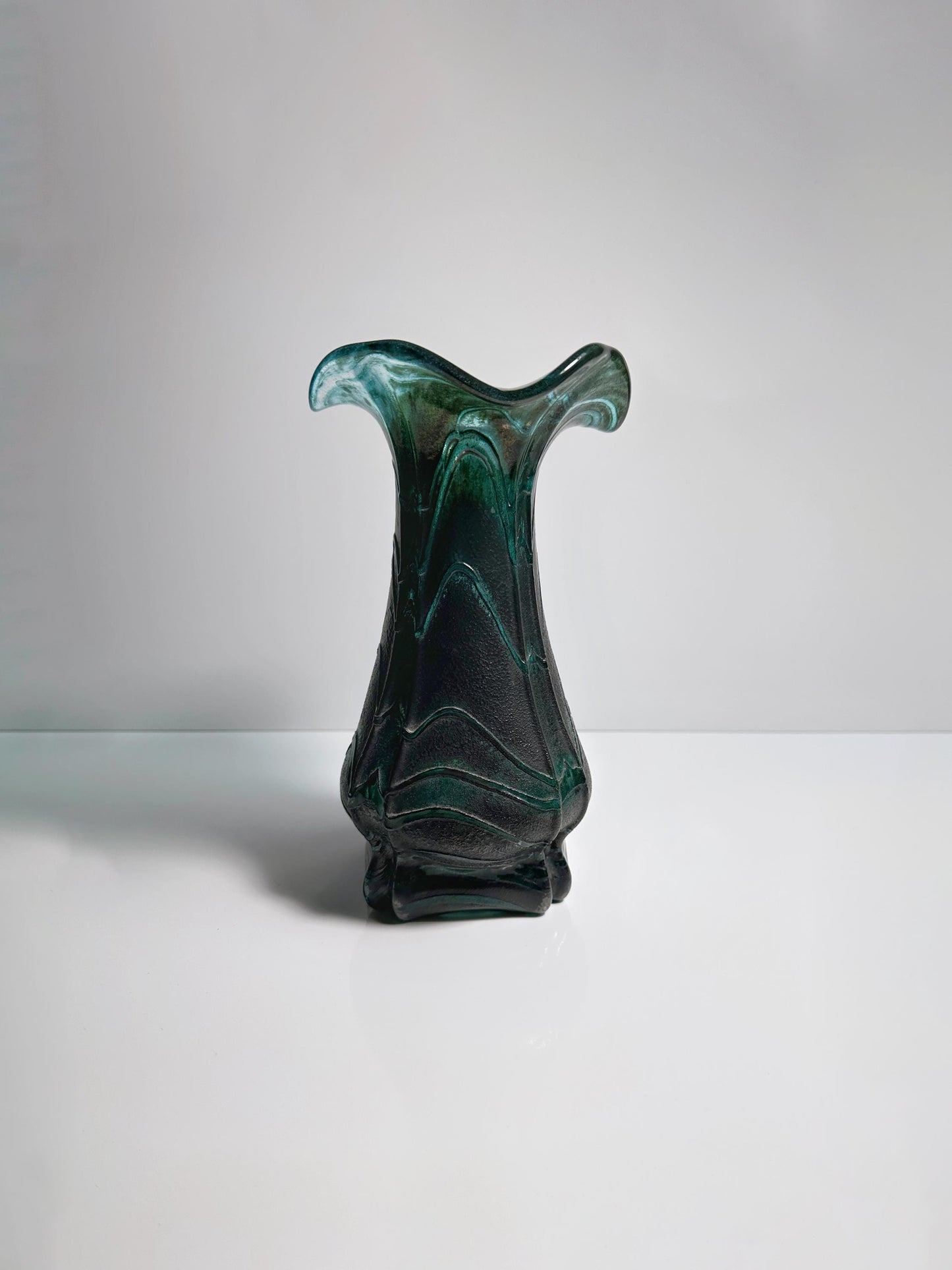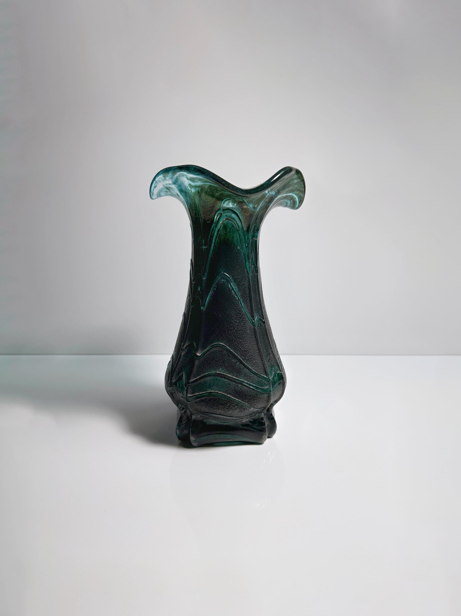 Vintage Glass Flower Vase Green Art Nouveau by Weinfurtner Glashütten Germany