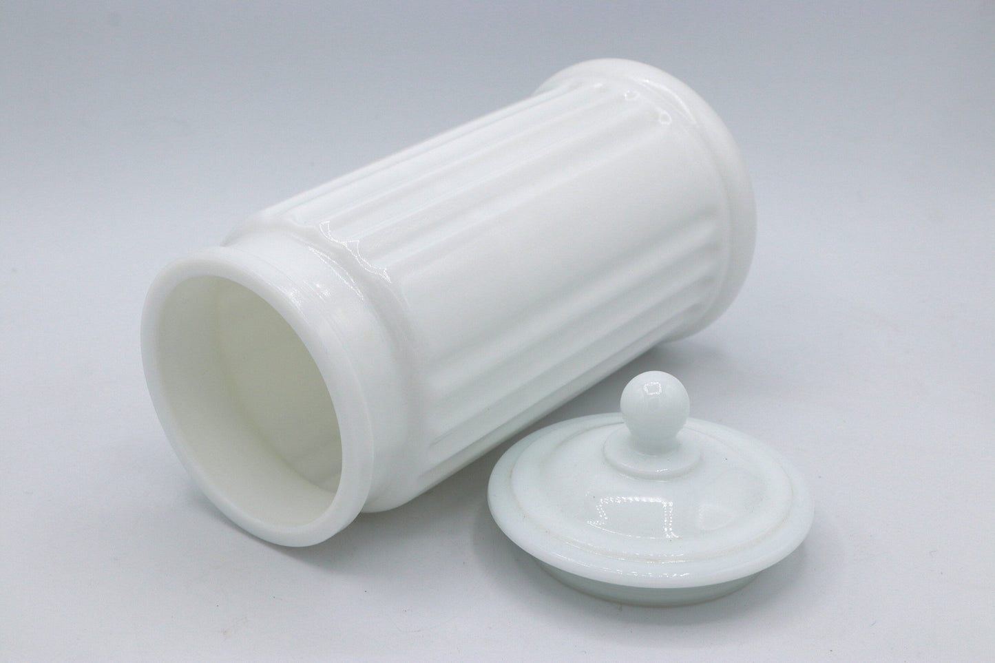 Vintage opal glass storage jar with vedute by Salomon Kleiner
