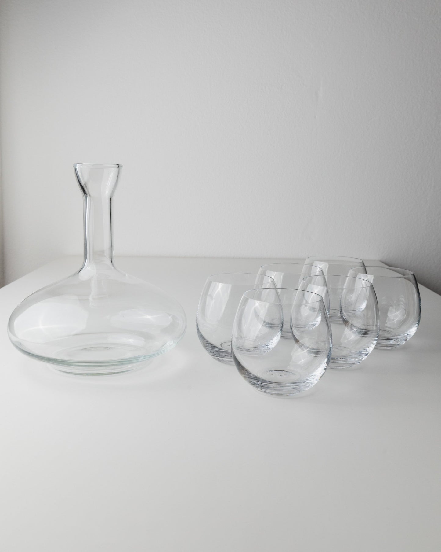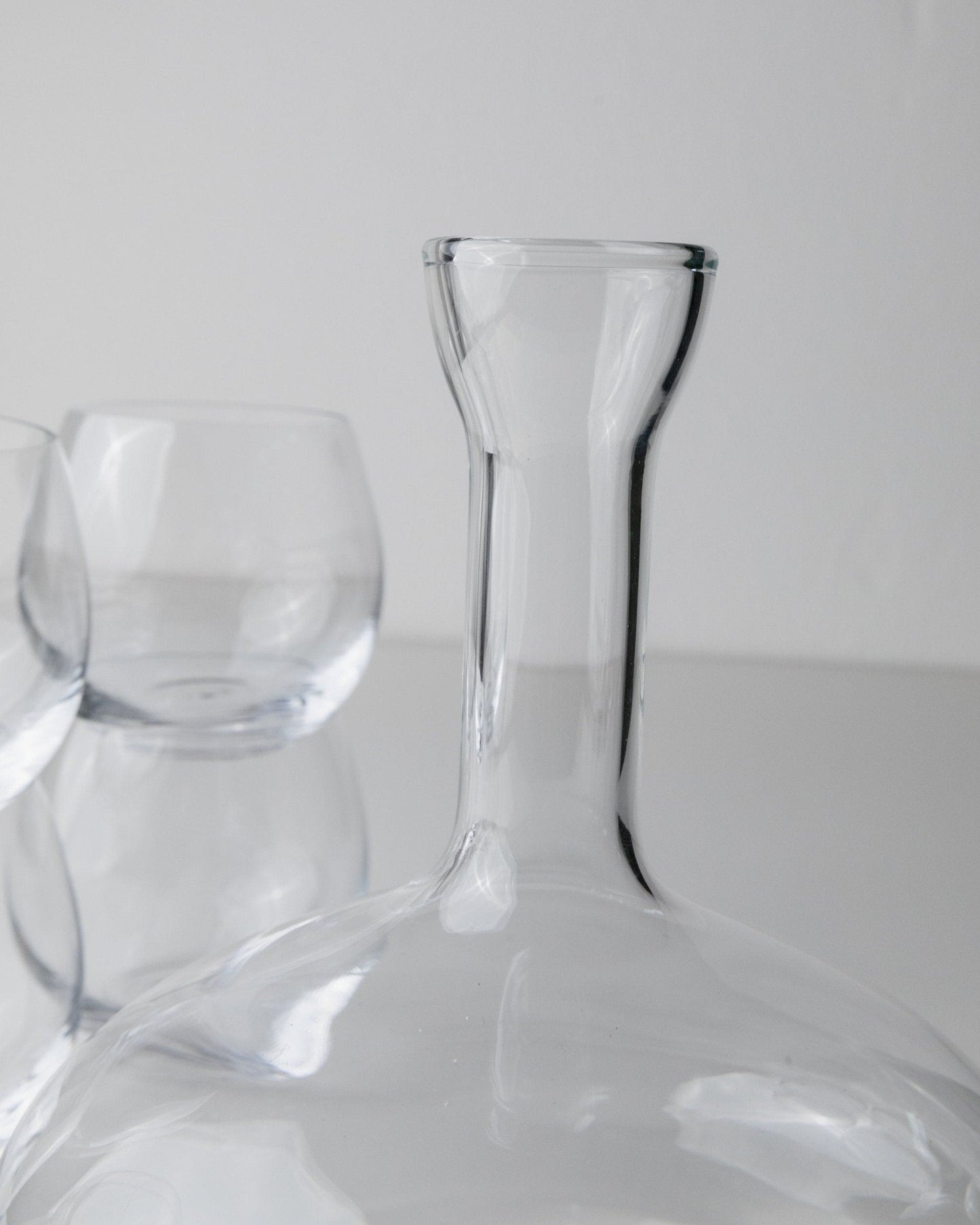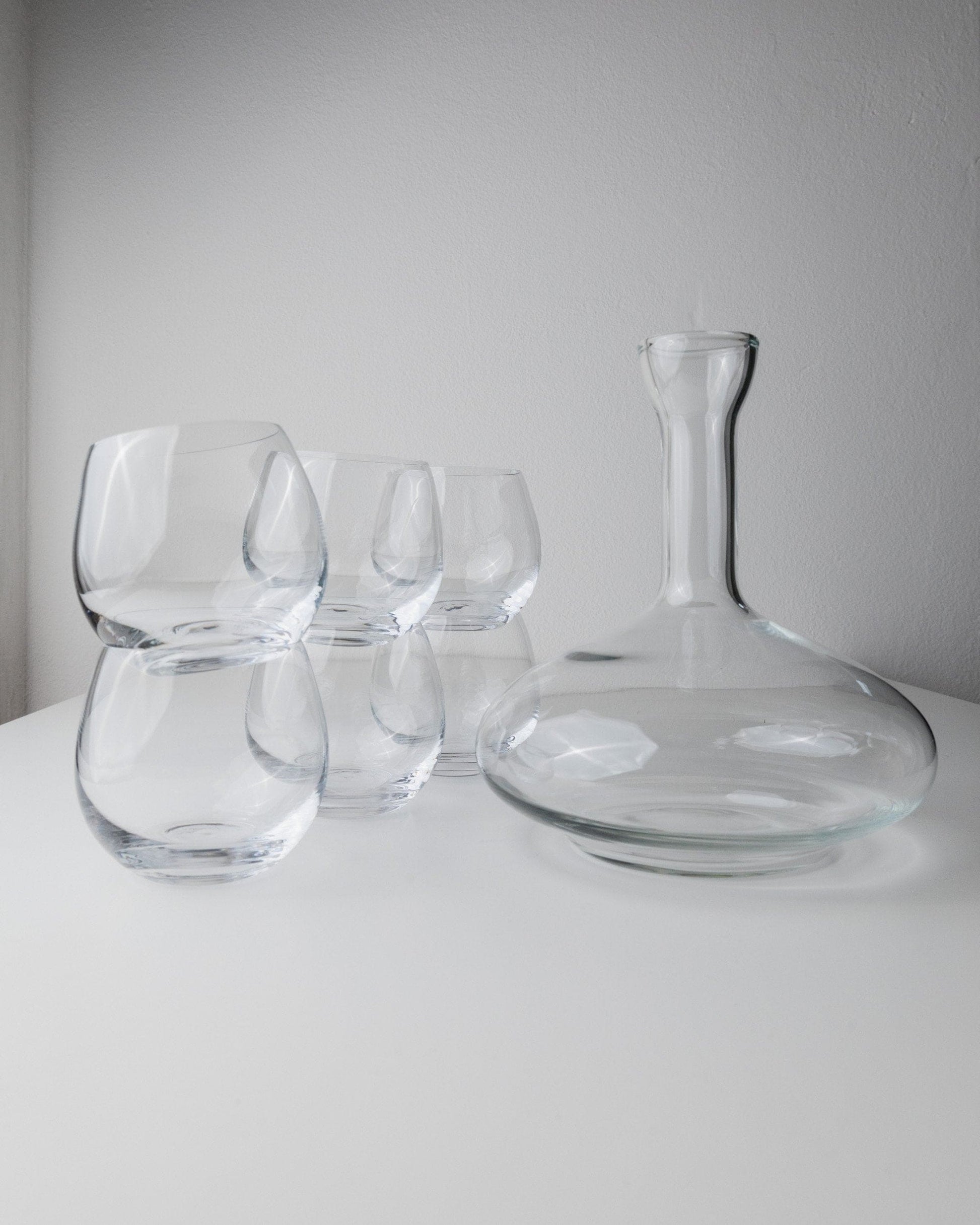 Vintage Glasses and Carafe Round Wine Glass Italy 80s Clear Glasses Set of 6