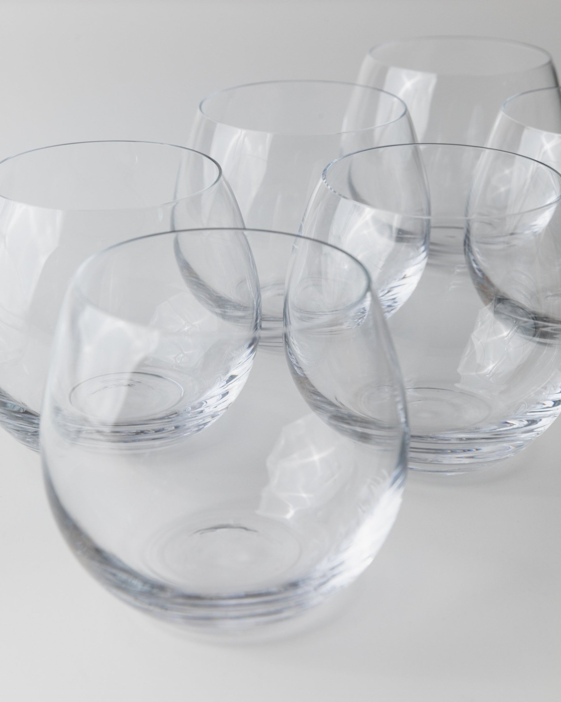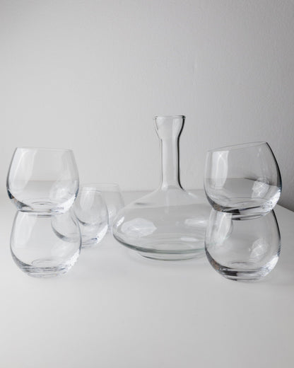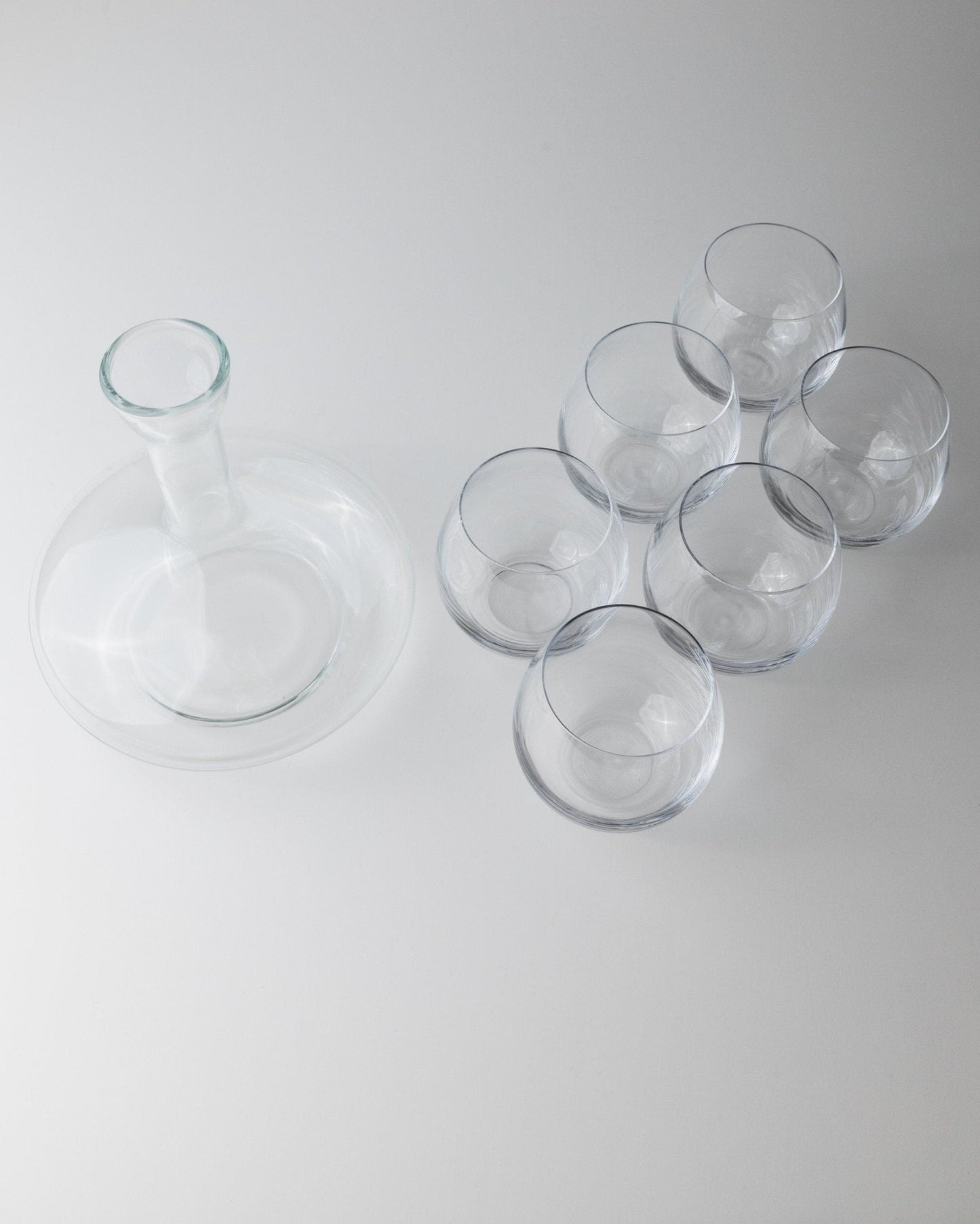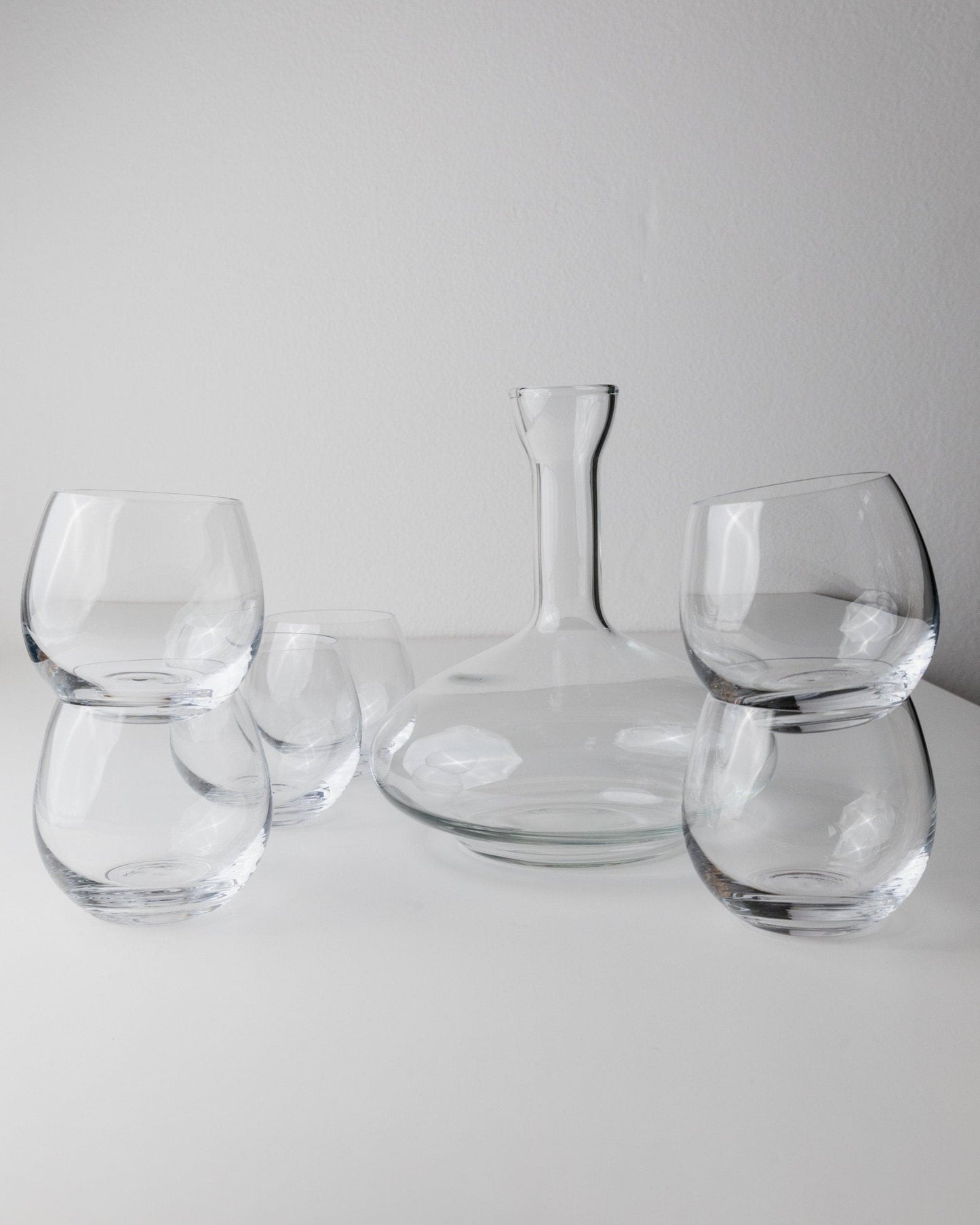 Vintage Glasses and Carafe Round Wine Glass Italy 80s Clear Glasses Set of 6