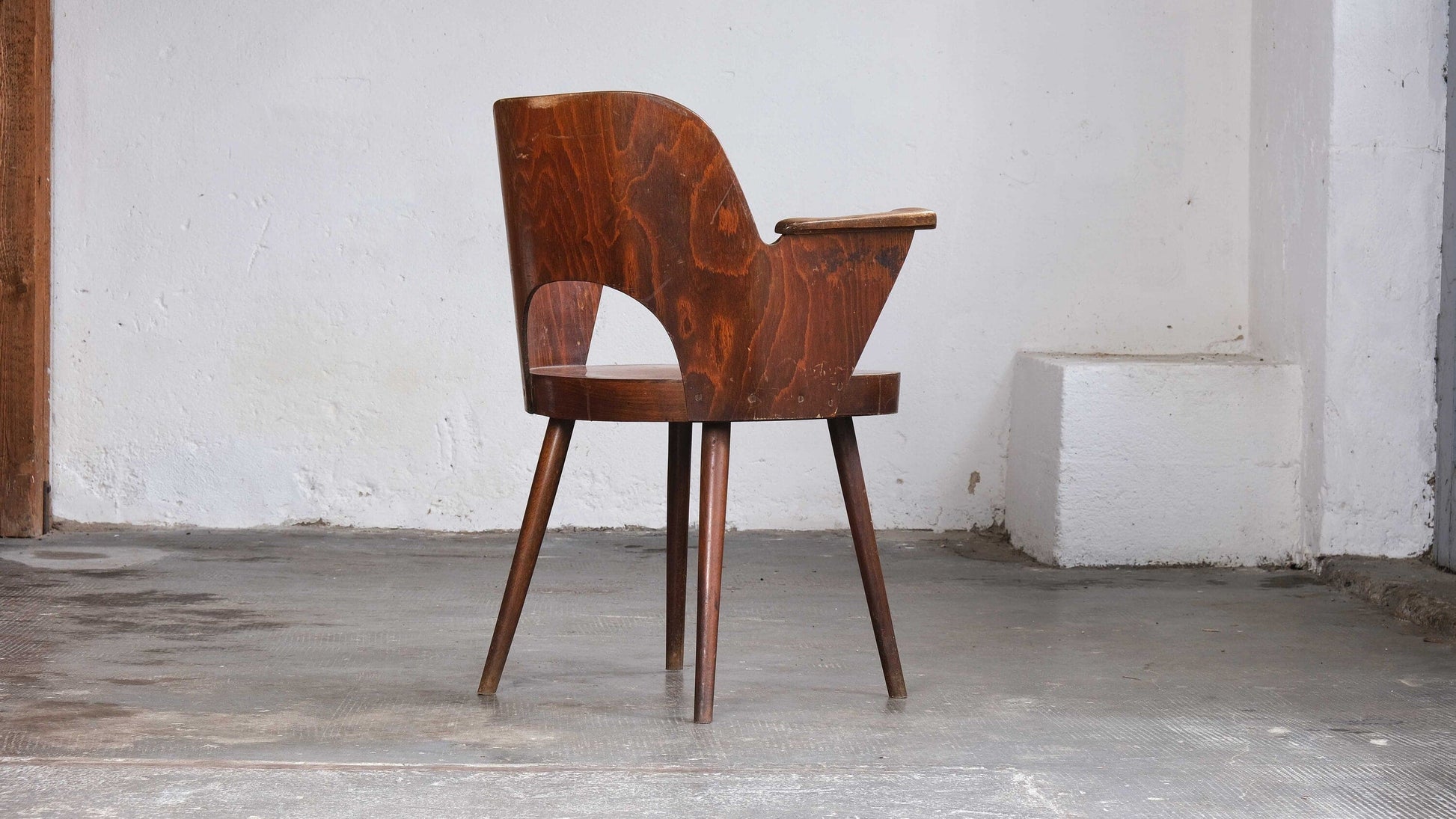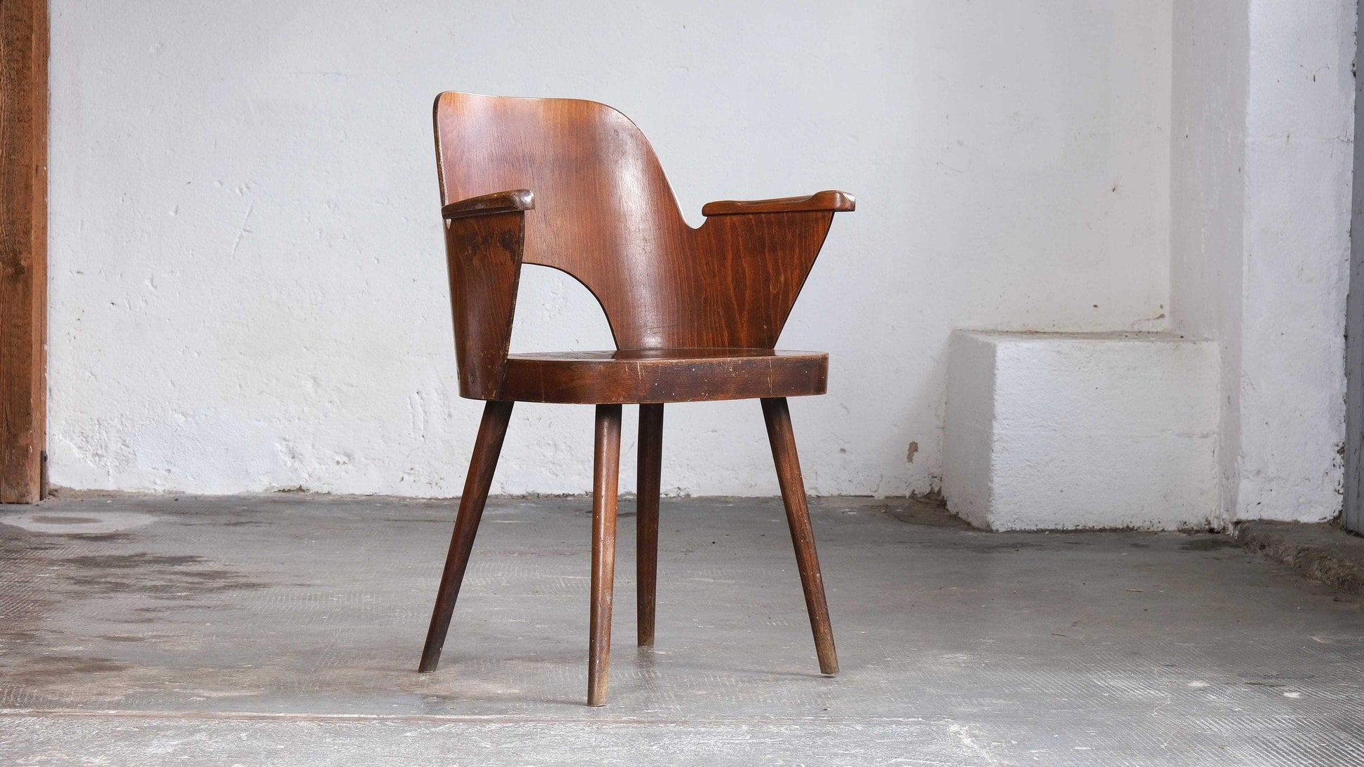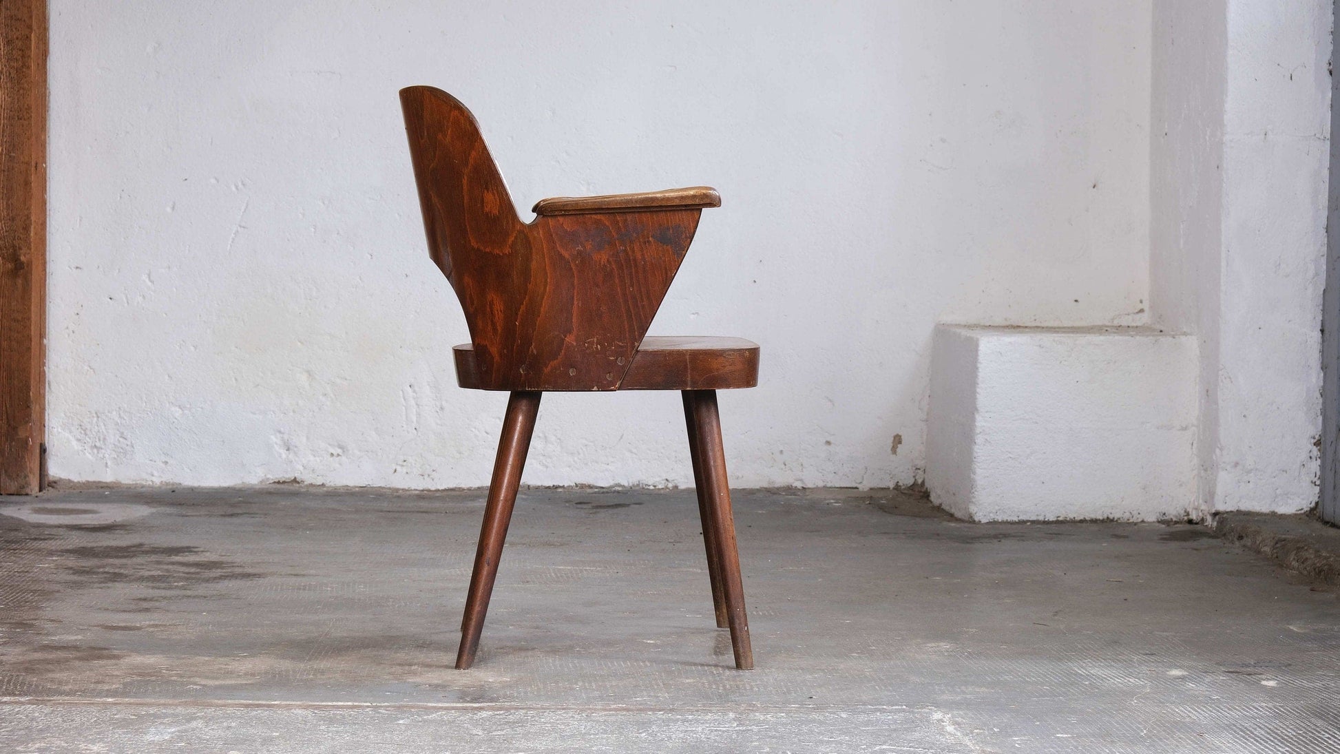 Discover the charm of vintage with the wooden armchair by Oswald Haerdtl for TON. Combining timeless elegance with functional design, this chair is a must-have for lovers of mid-century modern style. The matte wooden finish gives it an authentic vintage look, while the solid construction ensures stability. Perfect for your home or office, this chair brings a touch of history to any room.