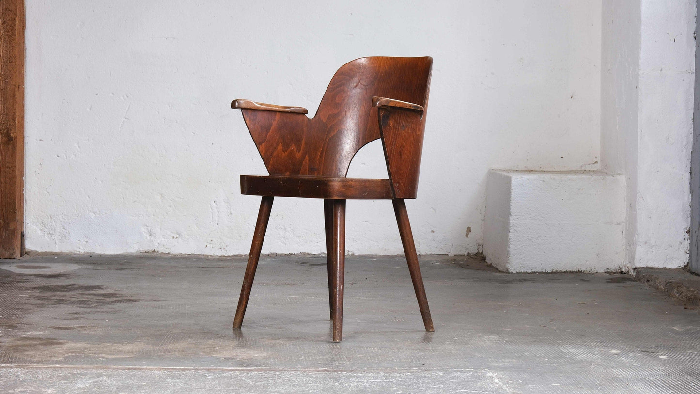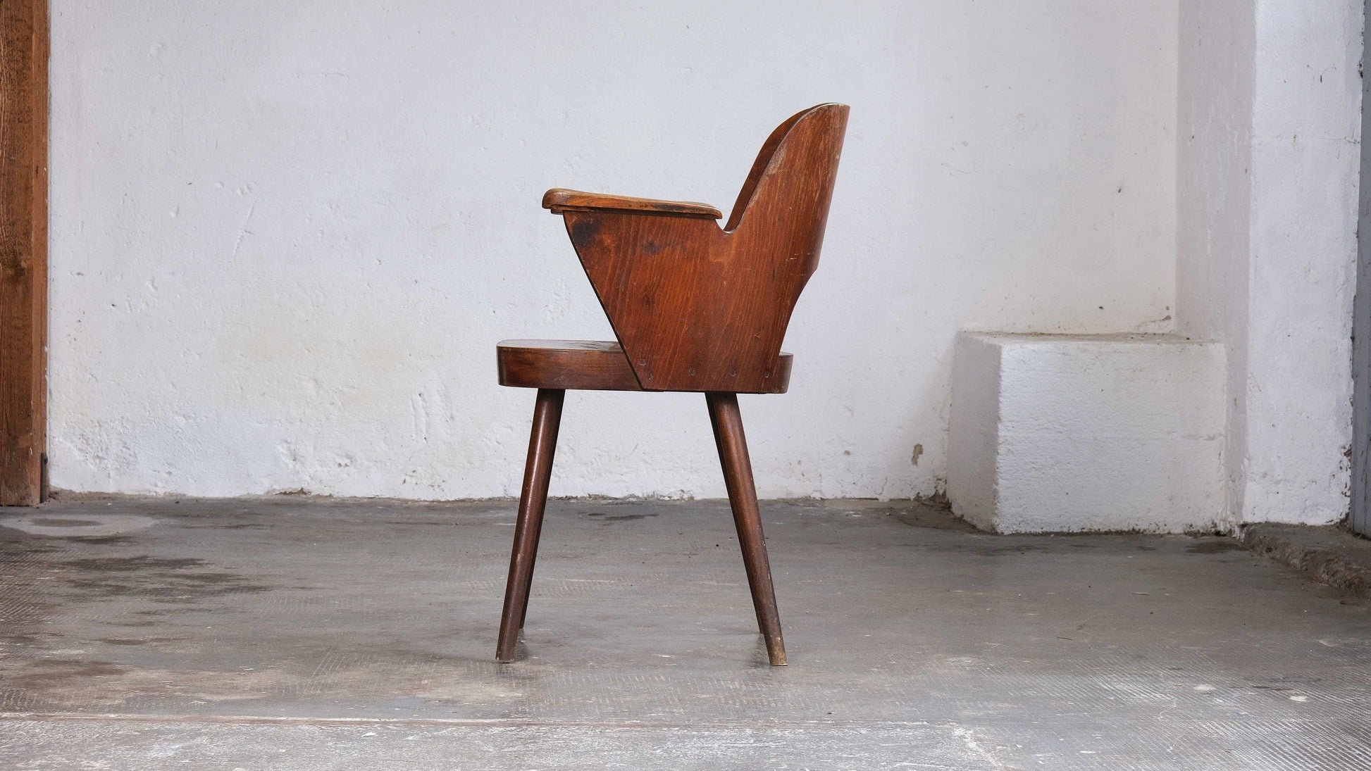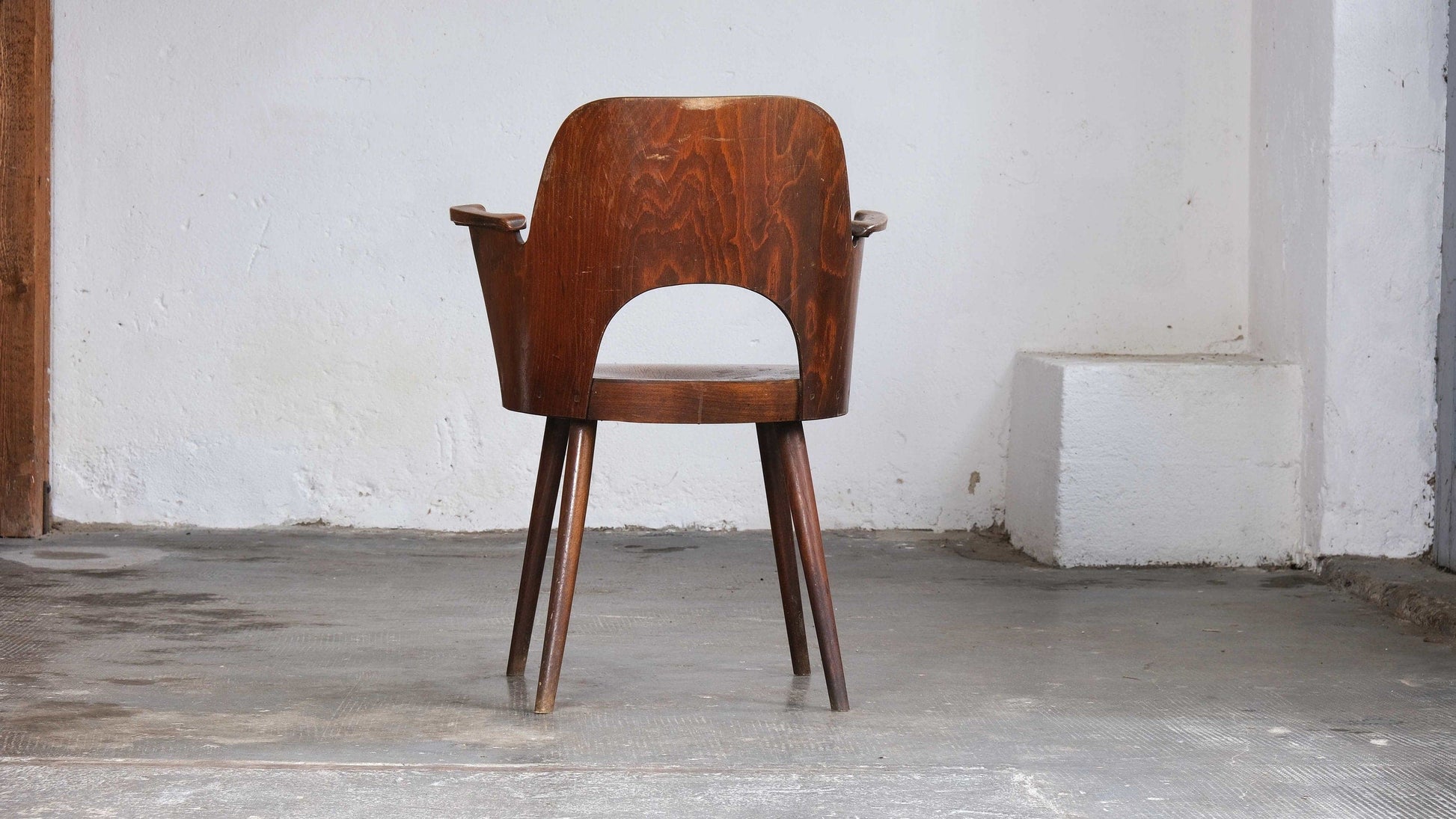 Discover the charm of vintage with the wooden armchair by Oswald Haerdtl for TON. Combining timeless elegance with functional design, this chair is a must-have for lovers of mid-century modern style. The matte wooden finish gives it an authentic vintage look, while the solid construction ensures stability. Perfect for your home or office, this chair brings a touch of history to any room.