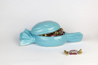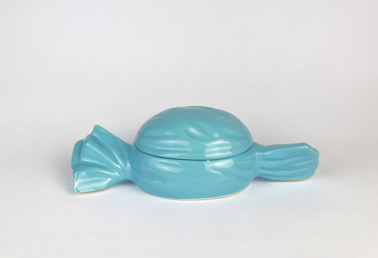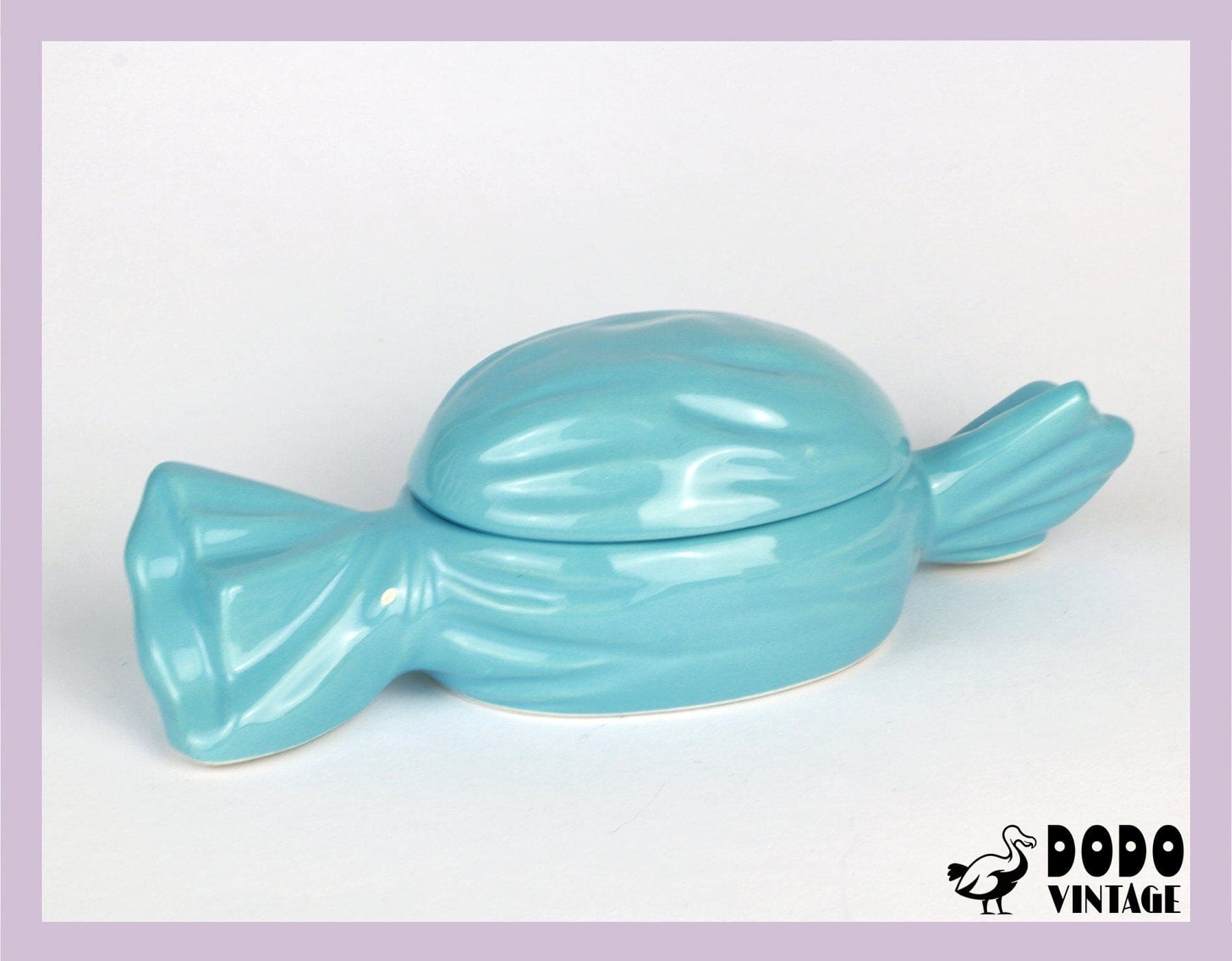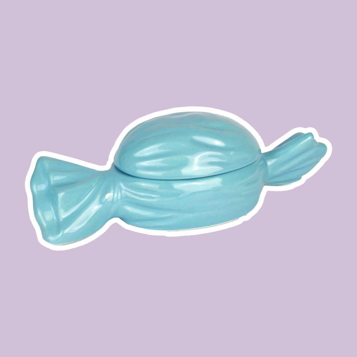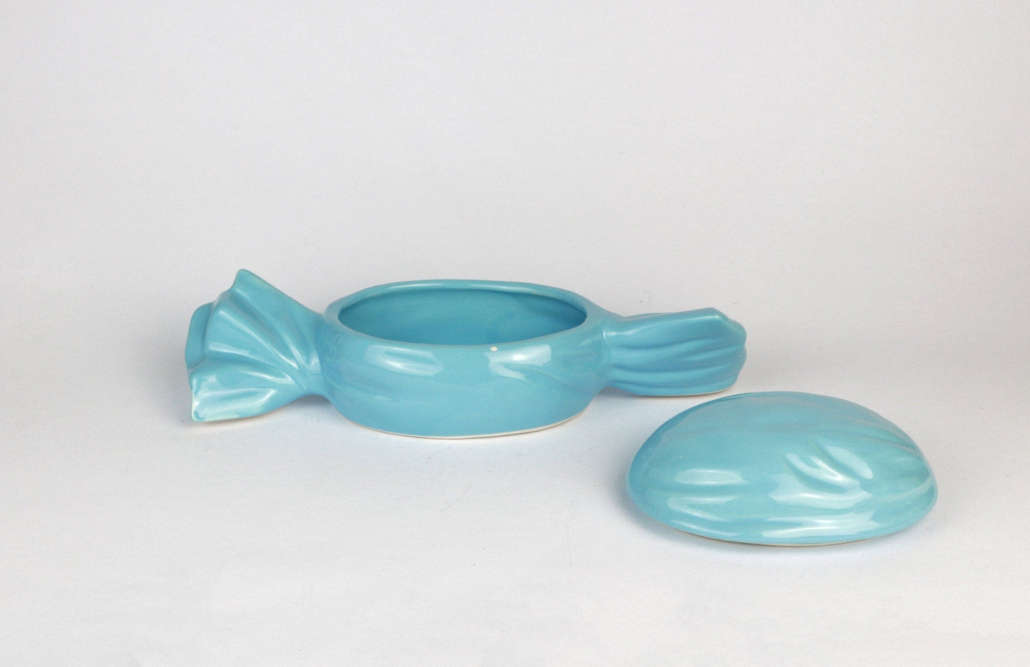 Vintage Ceramic Lidded Jar Candy Blue 80s 90s