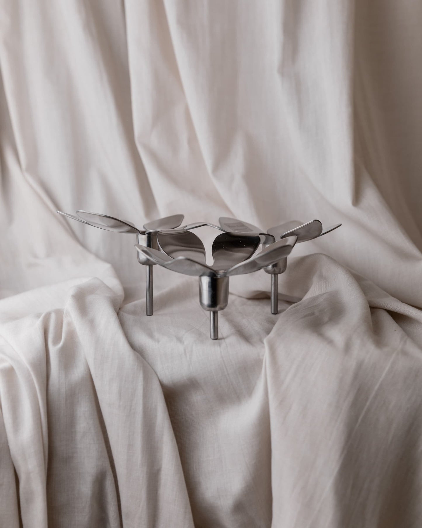 Vintage Candle Holder Flower Stainless Steel by Monica Mulder for Ikea 1990s