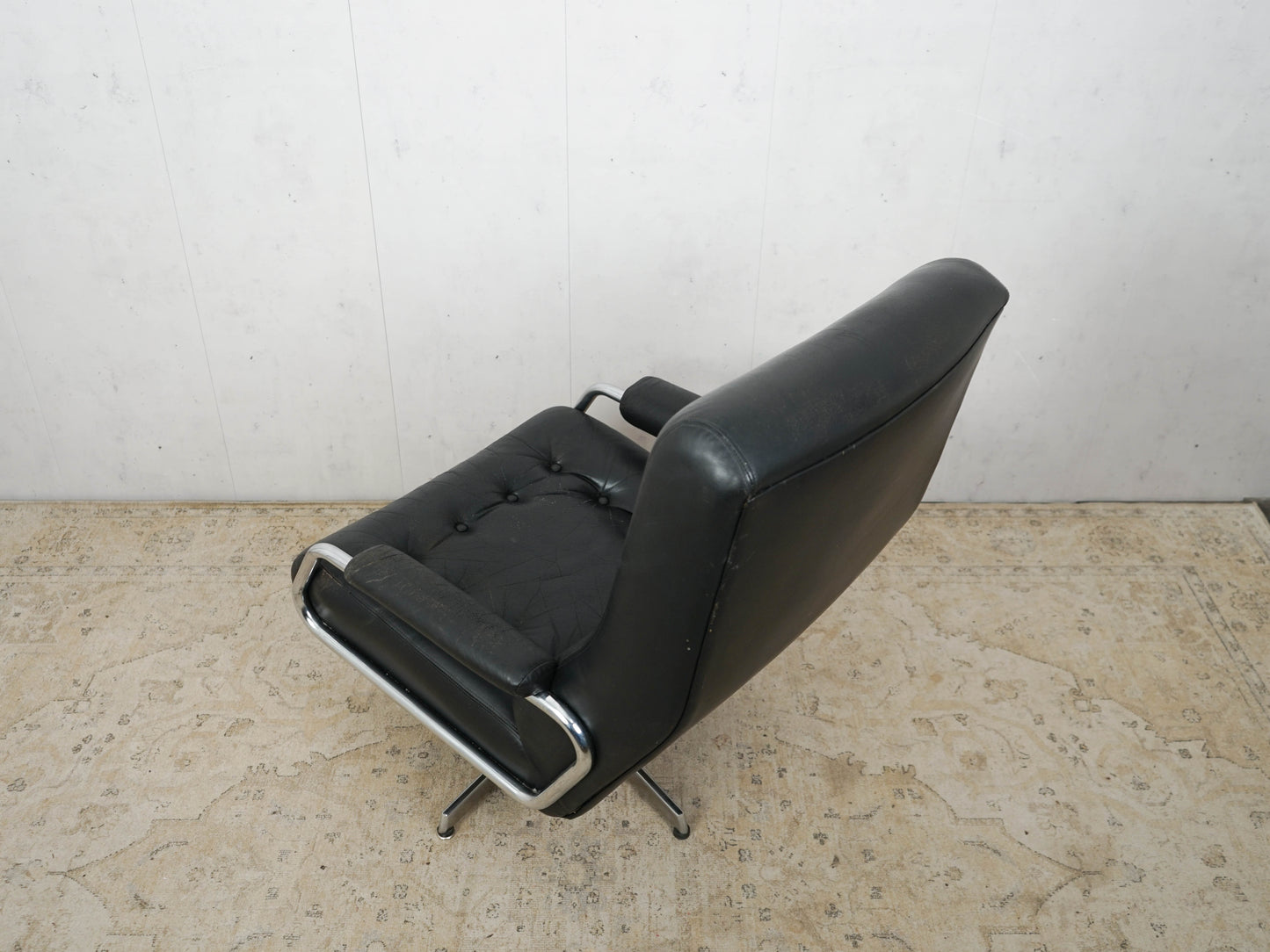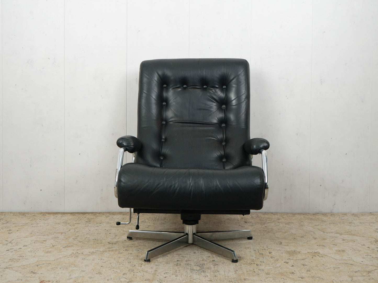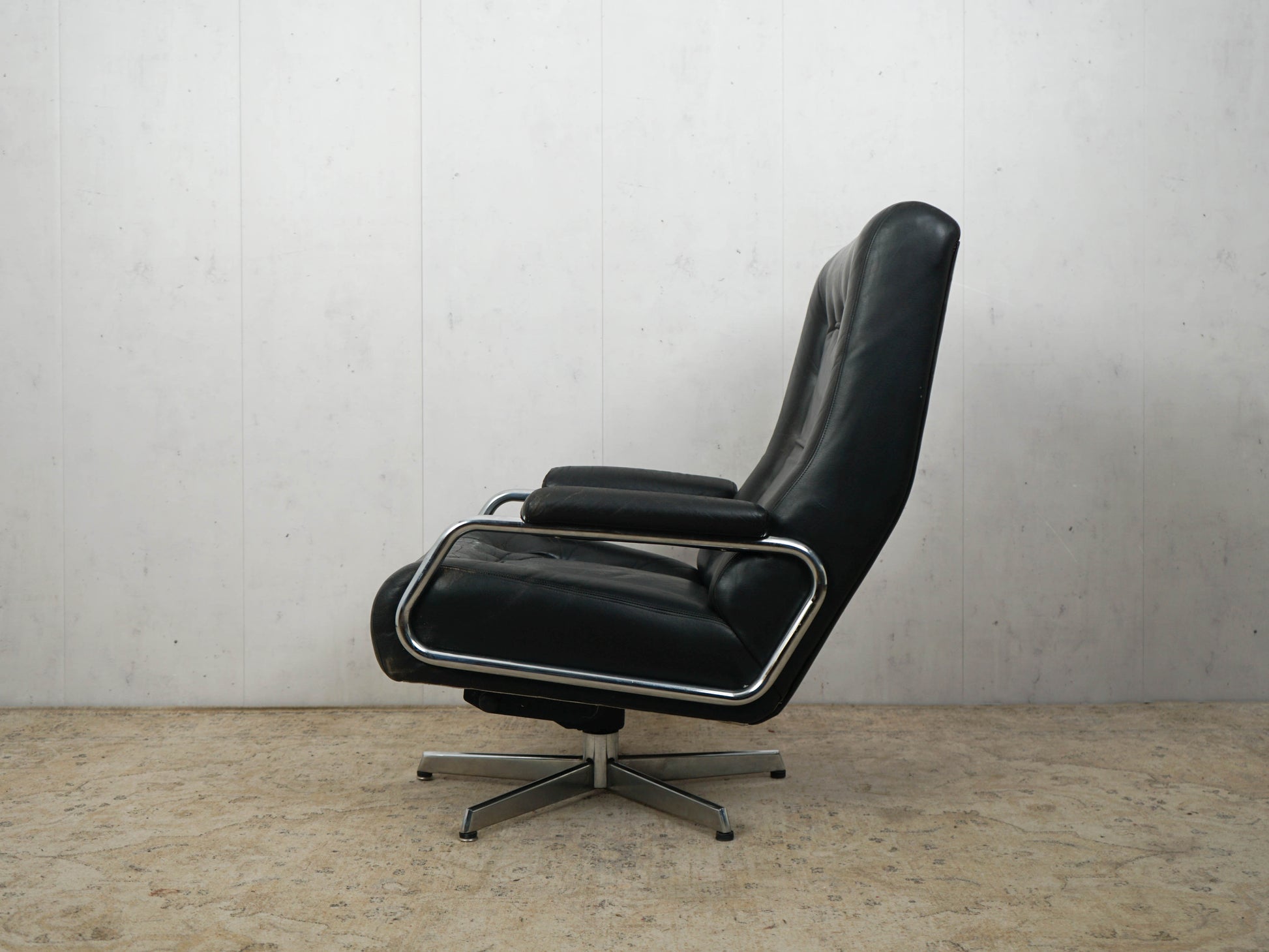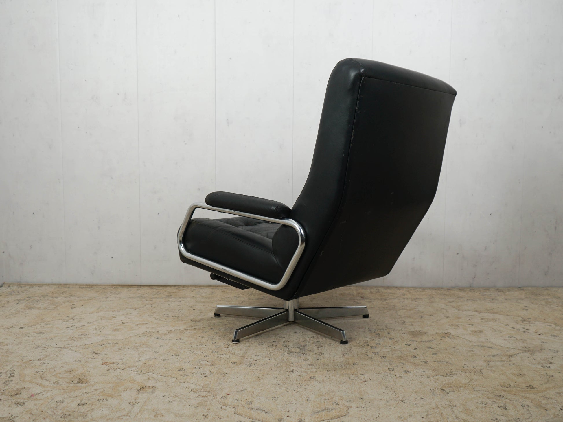 Vintage Leather Armchair Chrome Black 60s Mid Century Retro