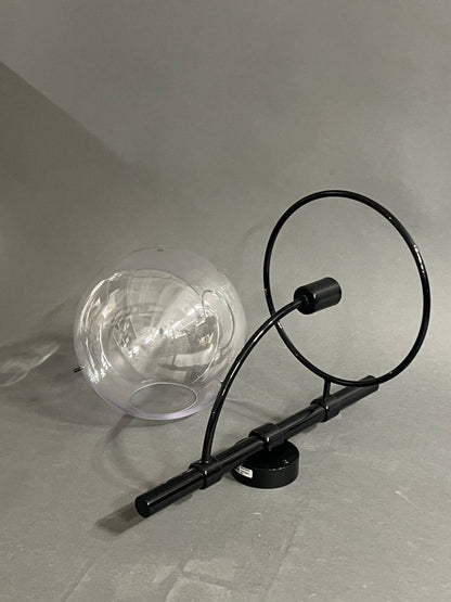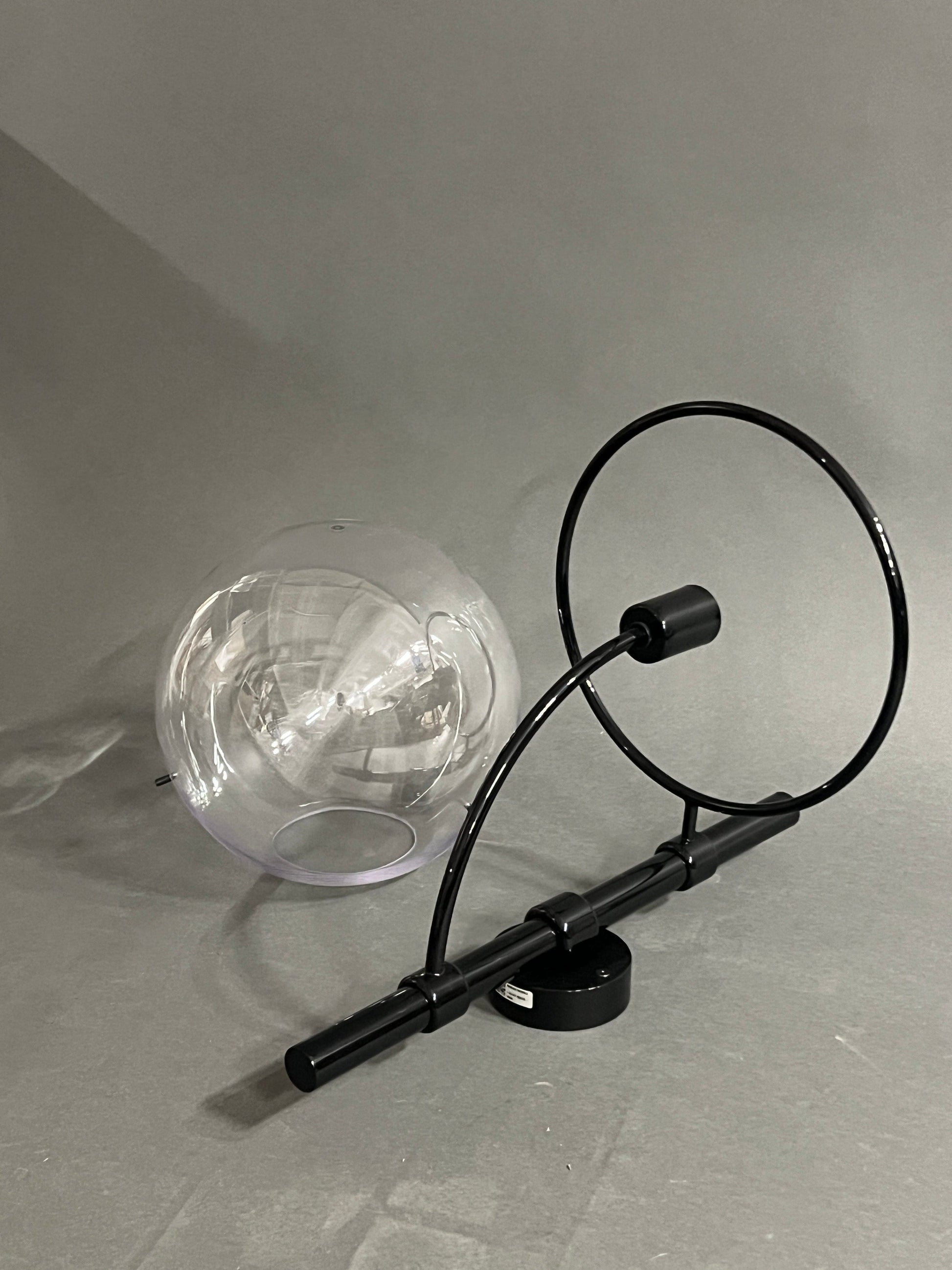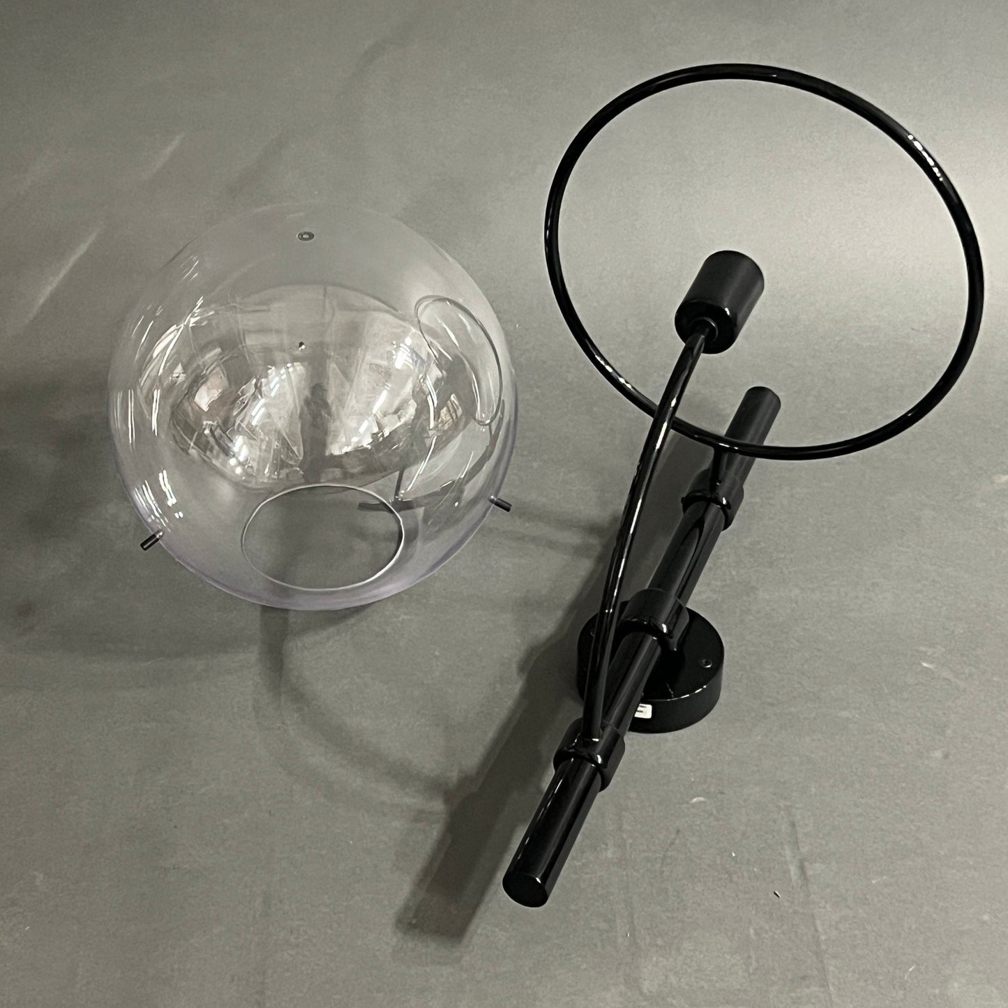 The Lyndon wall lamp by Oluce, designed by Vico Magistretti, combines clean geometry with poetic simplicity. A black metal arm supports the spherical diffuser. Mid-century meets space age, minimalist design, graphic presence. The lamp casts a serene silhouette on the wall; the diffuser unites form and function. Robust materials, precise proportions, thoughtful details. Whether used individually or as part of a set, it creates structure in the room. Ideal in hallways, living areas, or above sideboards. Timeless in its expression. A piece of Italian design culture for decades.
