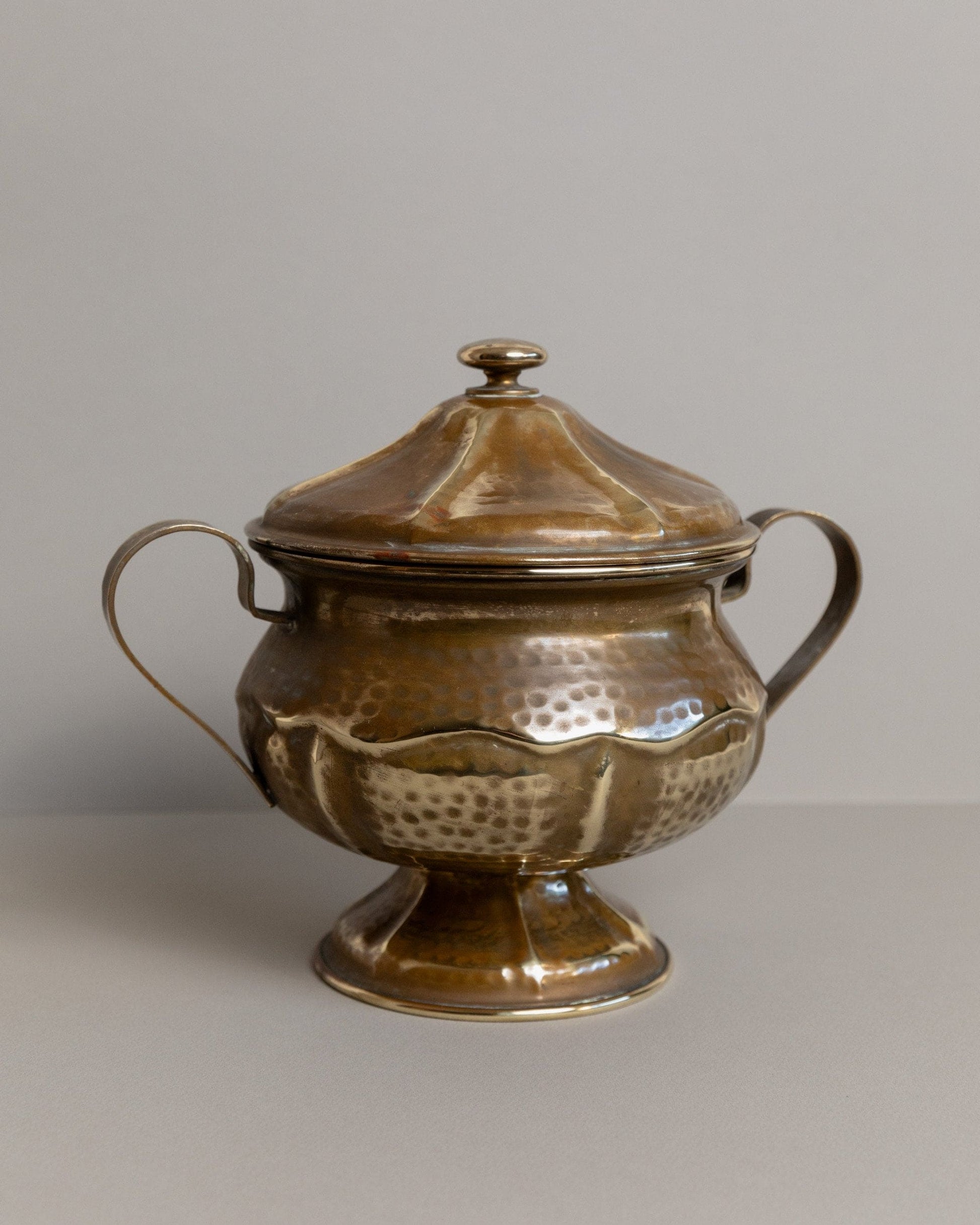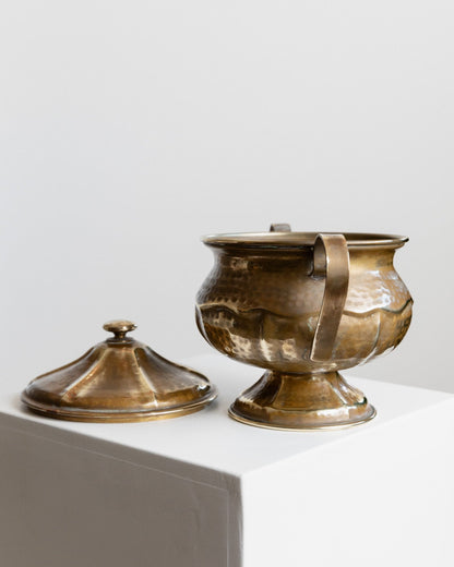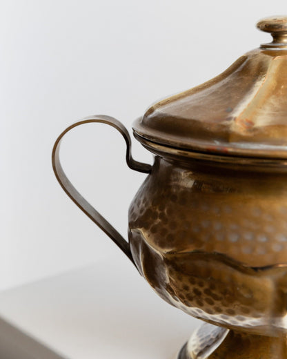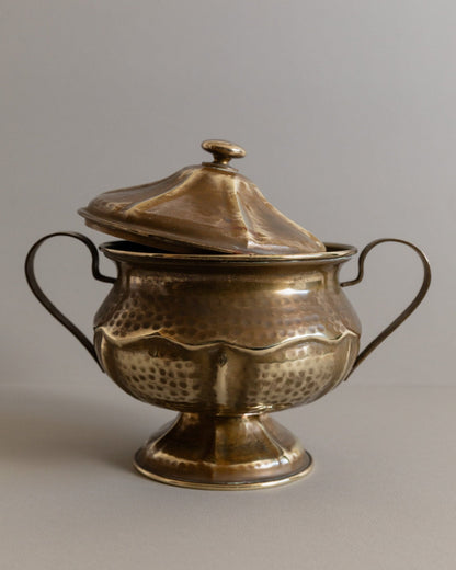 Discover the timeless elegance of the vintage brass tin with lid, handmade in Italy in the 1940s. This exquisite tin combines functionality and style and is ideal for storing biscuits or serving dishes such as soups or sauces. With its attractive design and golden patina, the tin is not only practical, but also an elegant addition to your table decoration. Perfect as a gift idea for friends and family who love something special.