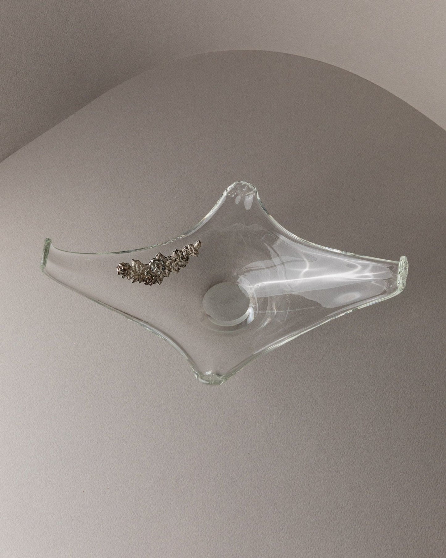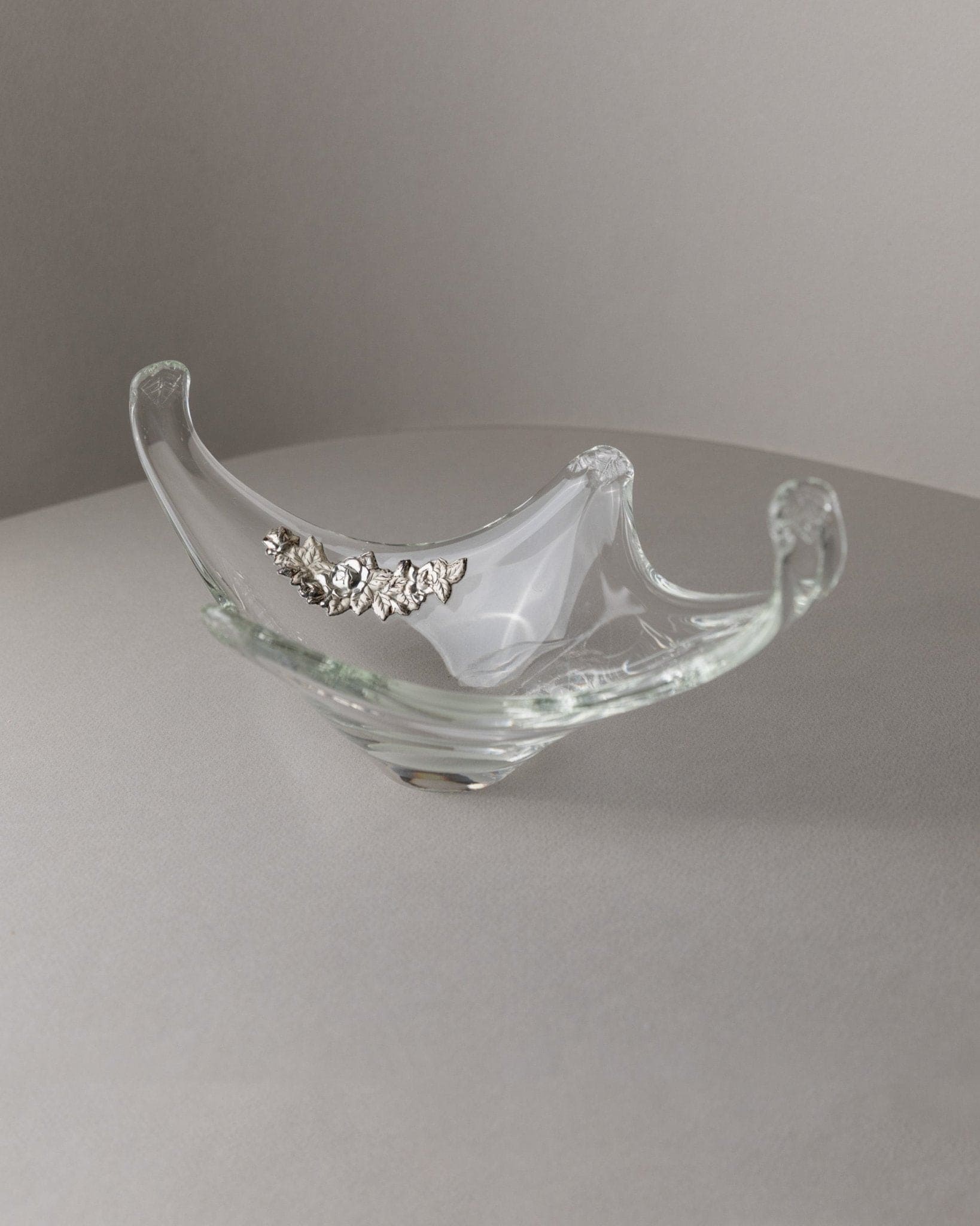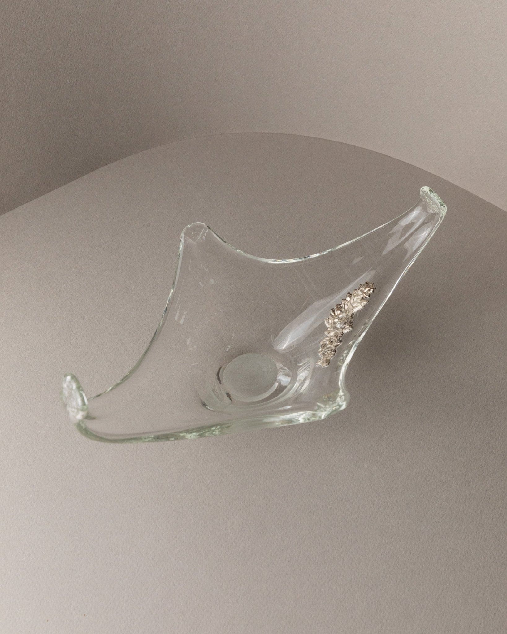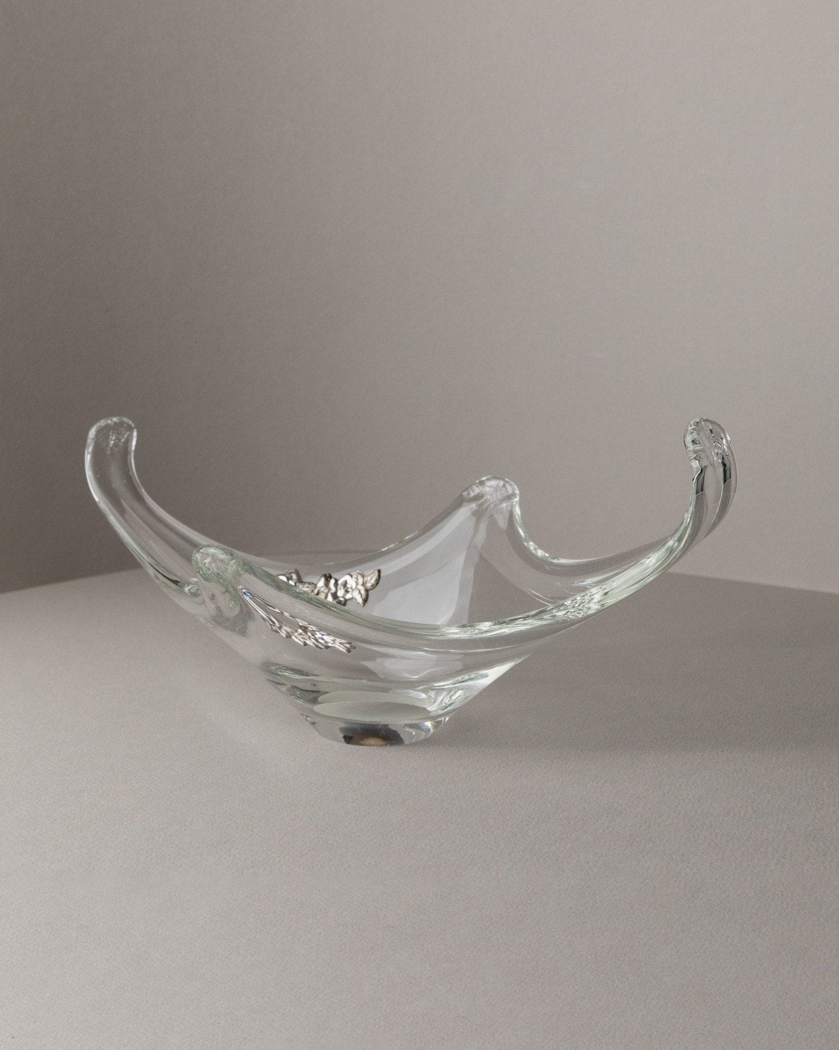 **Vintage Murano glass bowl with silver detail Italy 1970s**