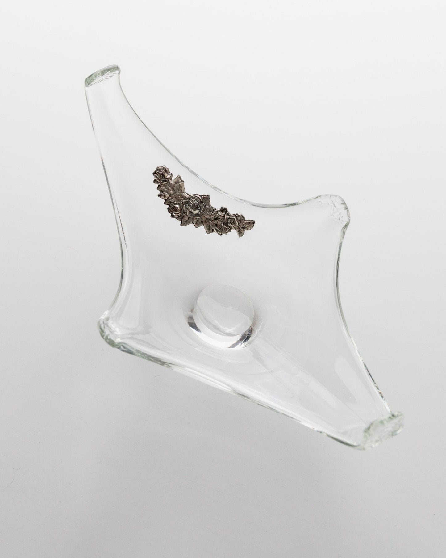 Immerse yourself in the world of mid-century modern design with this exquisite Murano glass bowl from the 1970s. Handmade in Italy, this bowl captivates with its elegant combination of glass and sterling silver. The artfully crafted silver flowers and tapered design make it a true eye-catcher. Perfect as a gift idea or as a highlight in your own collection.