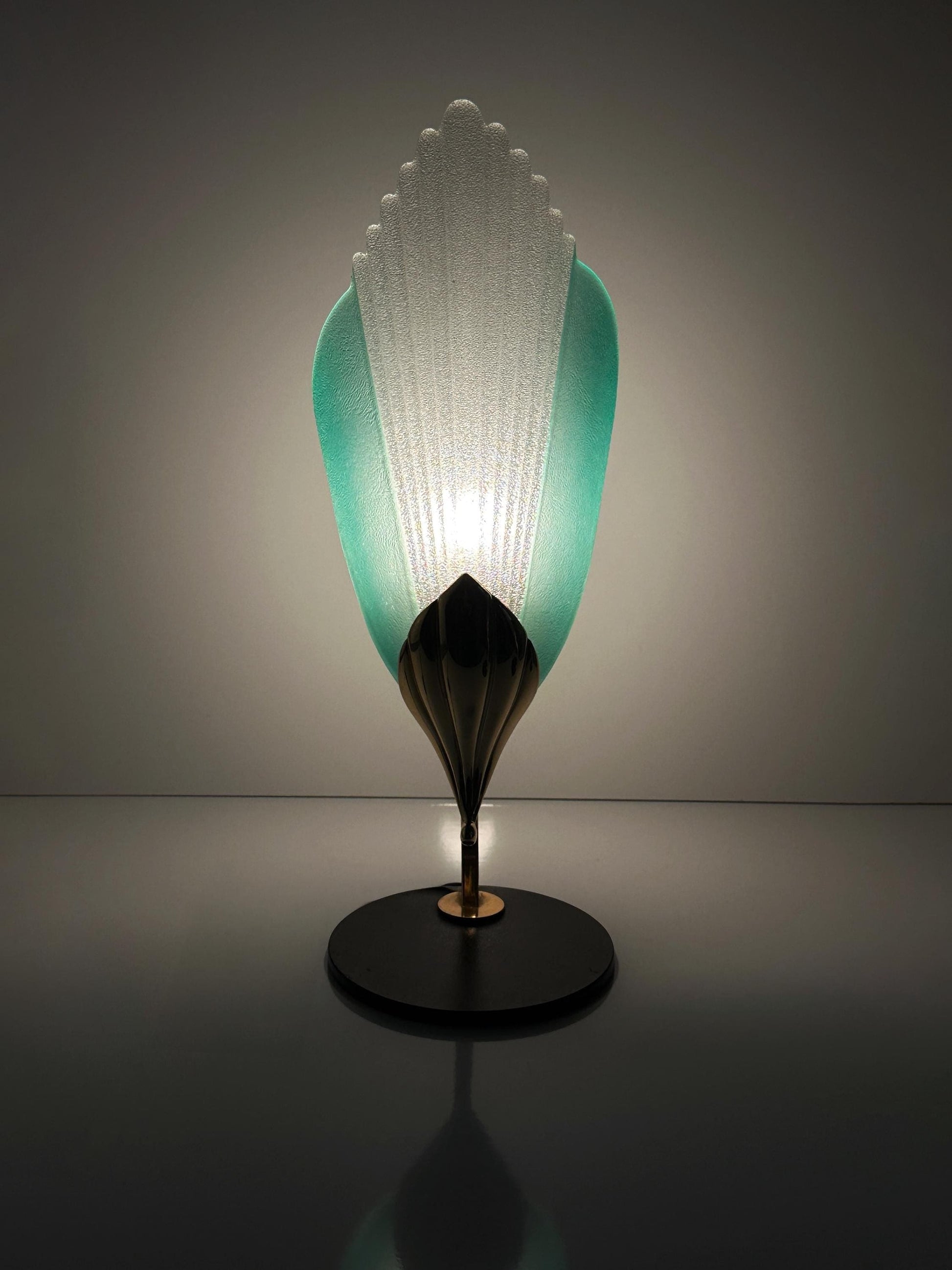 Vintage Murano Table Lamp Glass Brass by Barovier Toso Set of 2