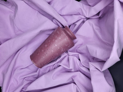 - Material: Ceramic with fuchsia glaze and speckles