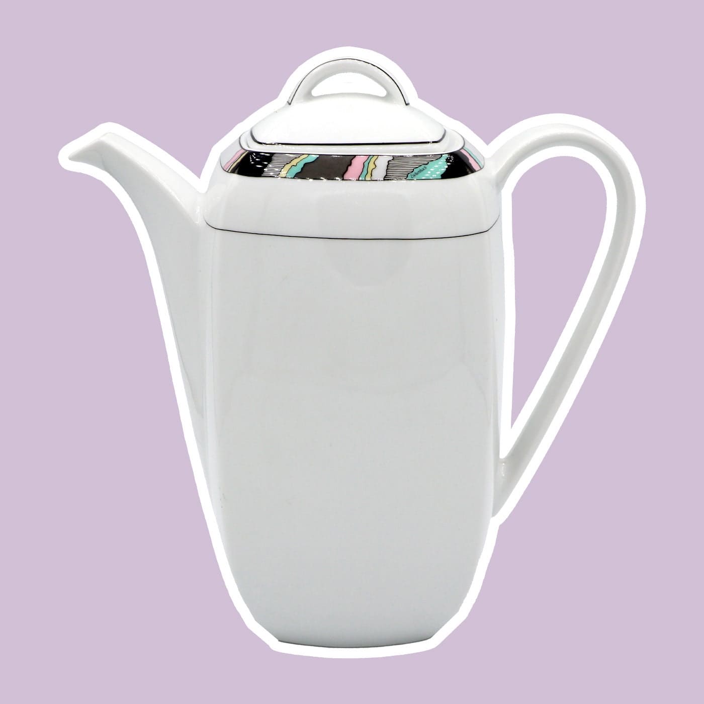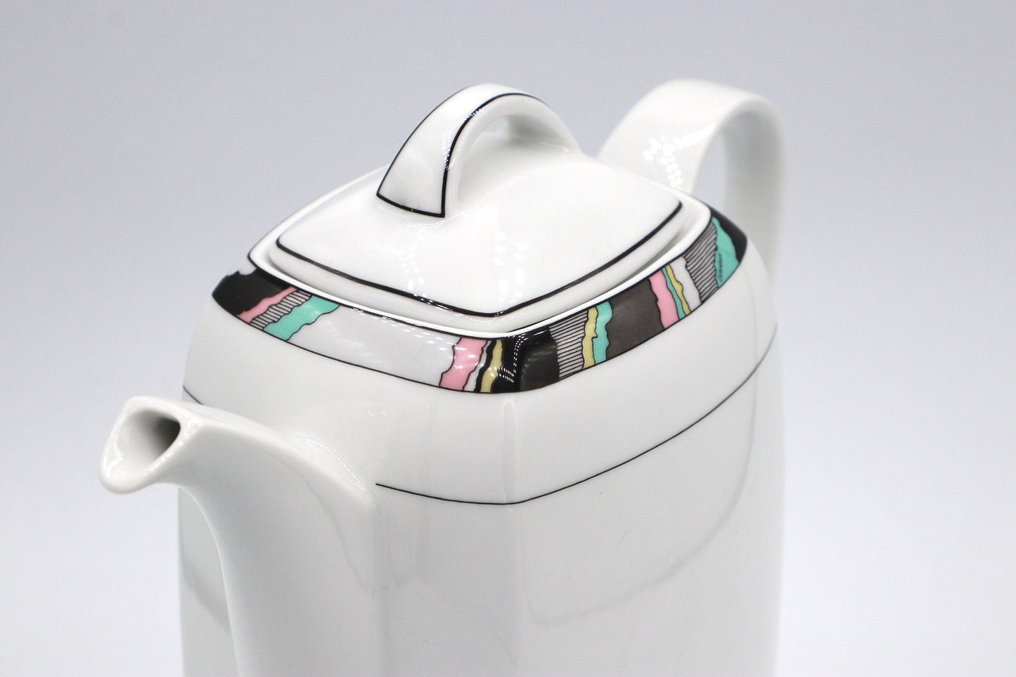 Vintage Teapot Eschenbach Domus Manhattan White Geometric 80s 90s