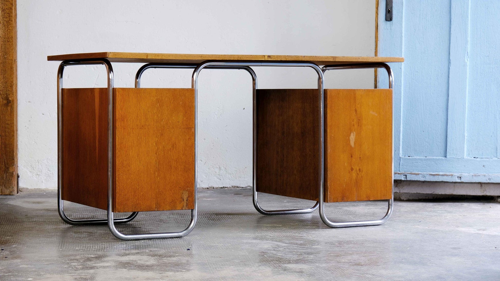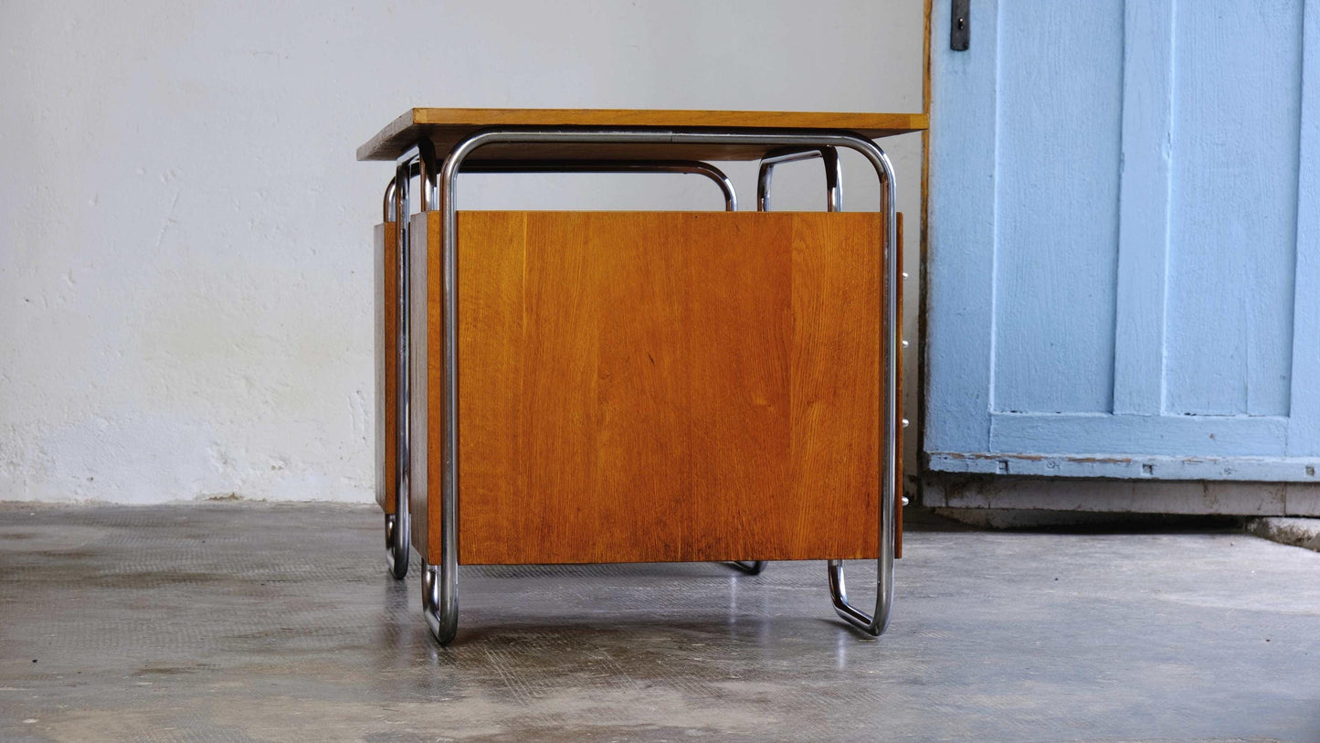 A table is more than just a storage surface – it is a central component of the living space. OurVintage tablescombine design history with functionality and range fromspacious dining tables for convivial gatheringsabovestylish coffee tables as the centerpiece of the living roomup topractical side tables and elegant bar trolleys for drinks & decoration. Particularly popular areBauhaus glass and tubular steel tables, mid-century models made of teak or Art Deco bar carts with brass detailsAt 2nd-home.io, you'll find tested, immediately available tables that will add a touch of style to any interior.