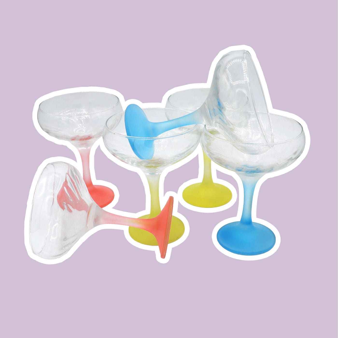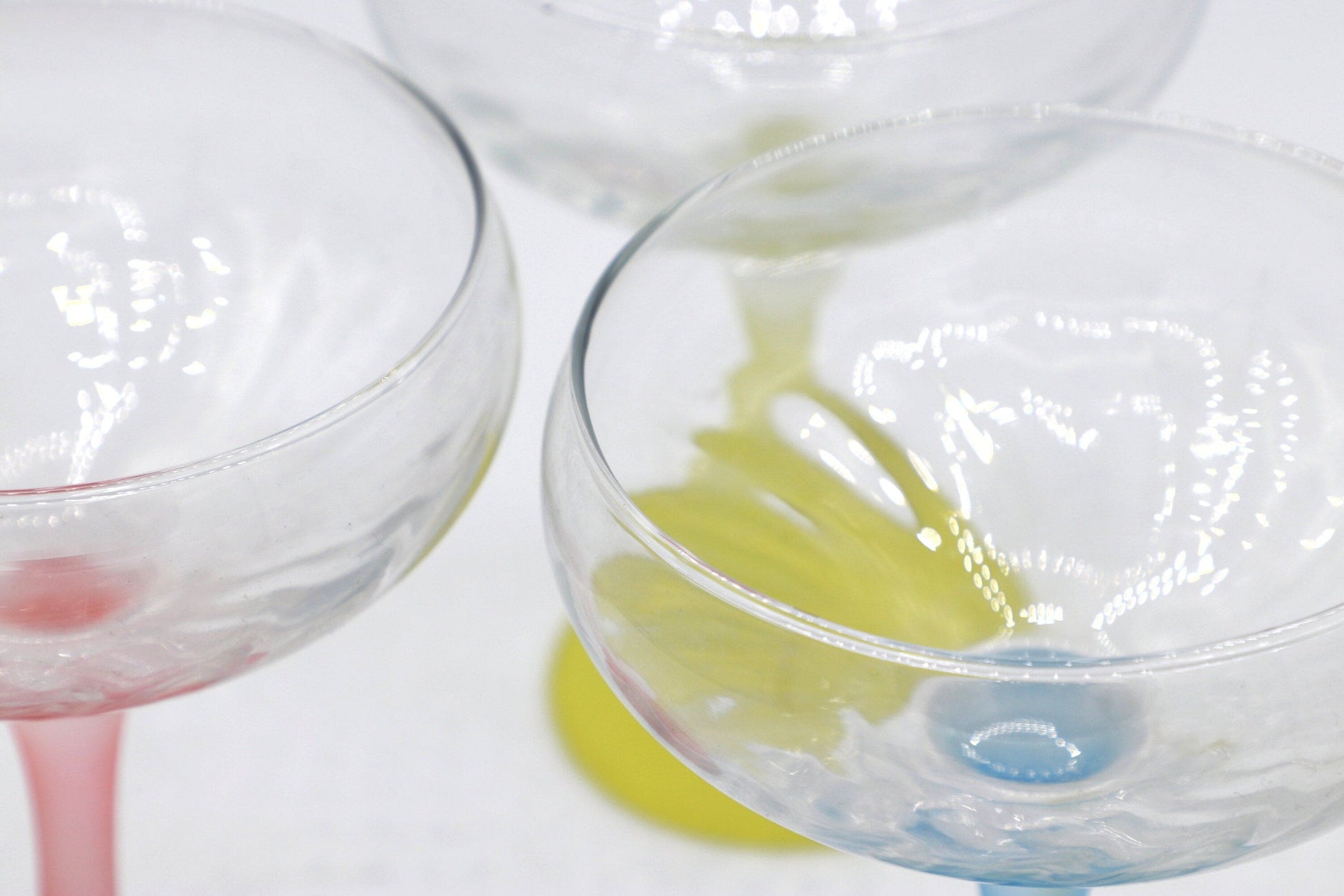 Vintage Champagne Glass Italy 50s Pastel Red Yellow Blue Mid Century Set of 6