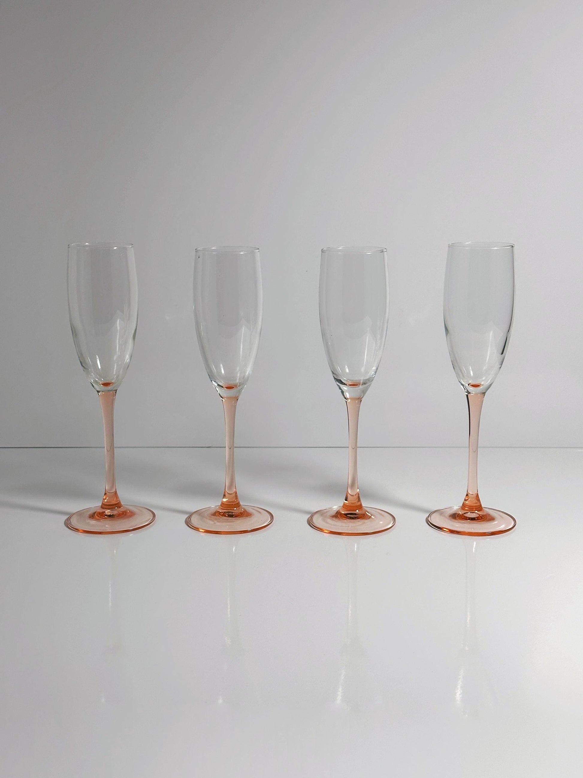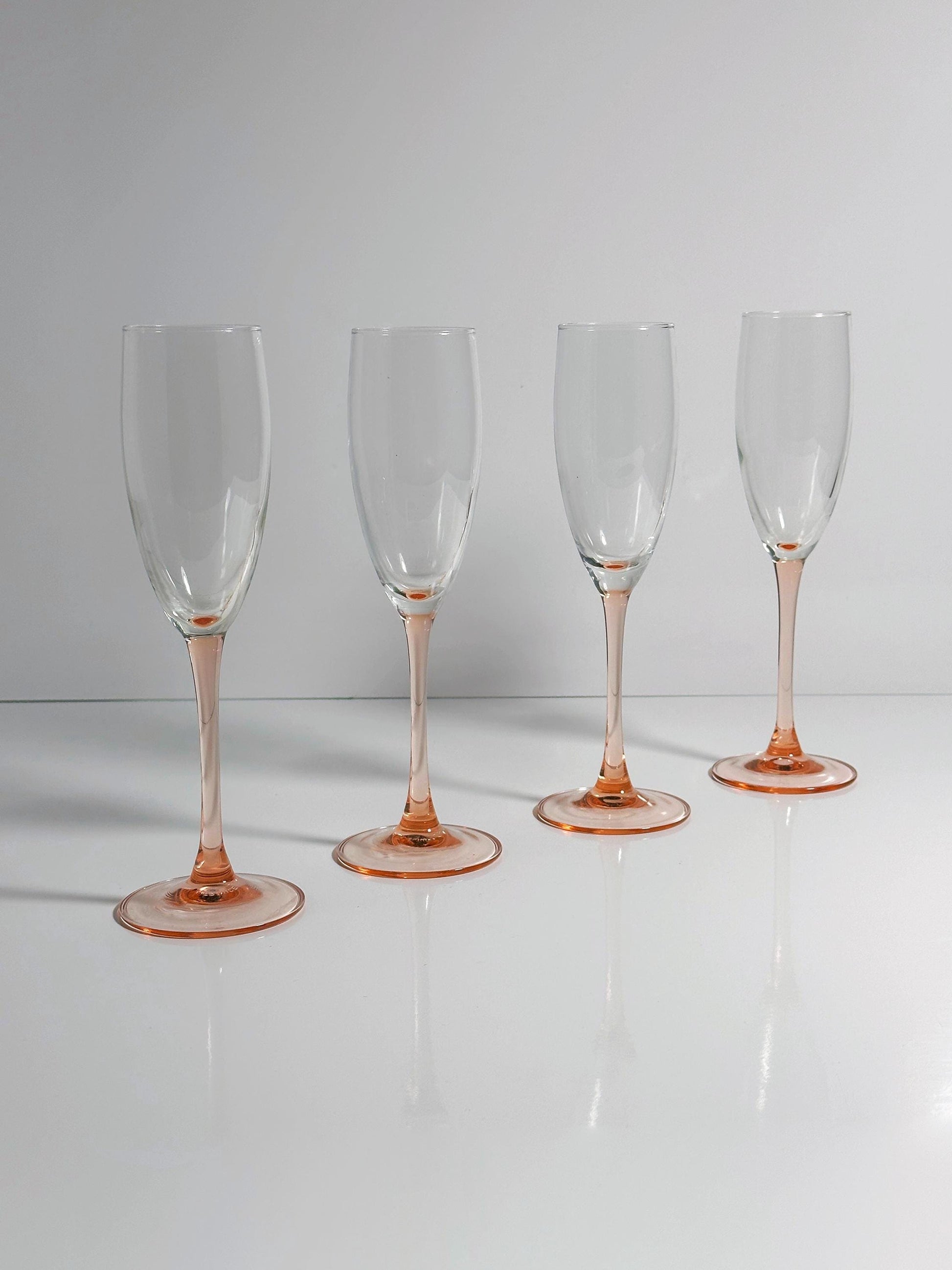 Vintage champagne glass Luminarc Rosa Art Deco from the 80s set of 4