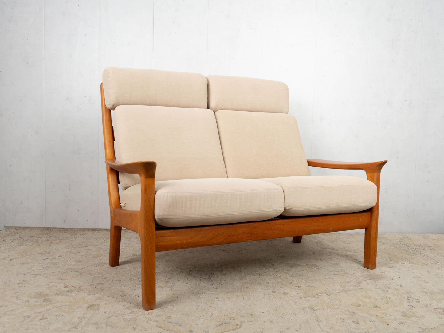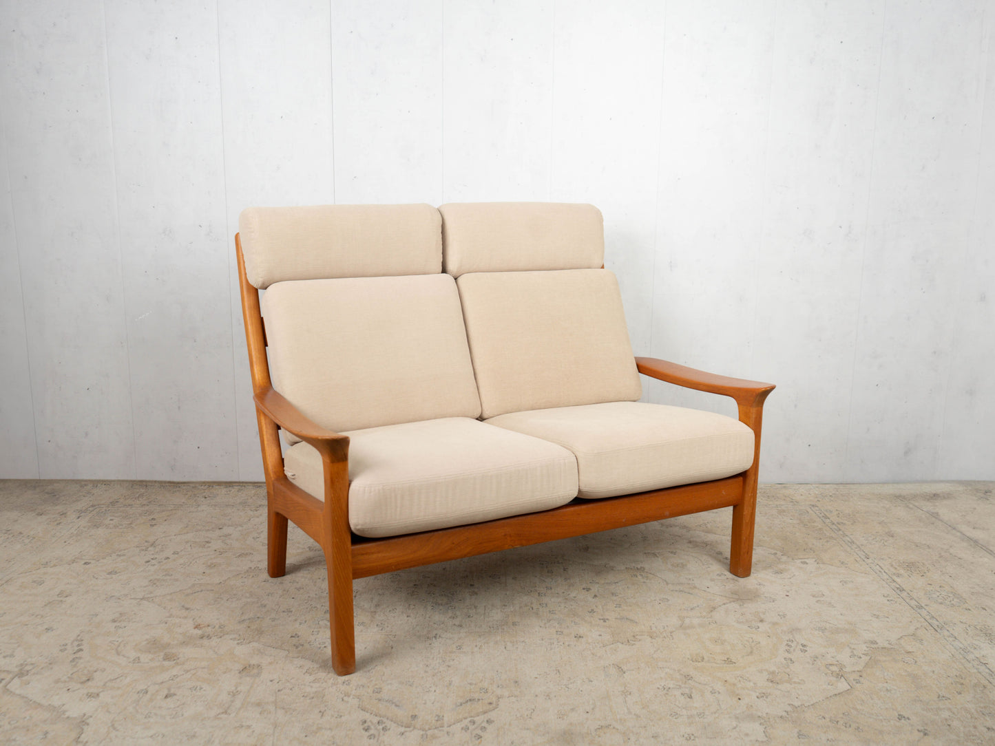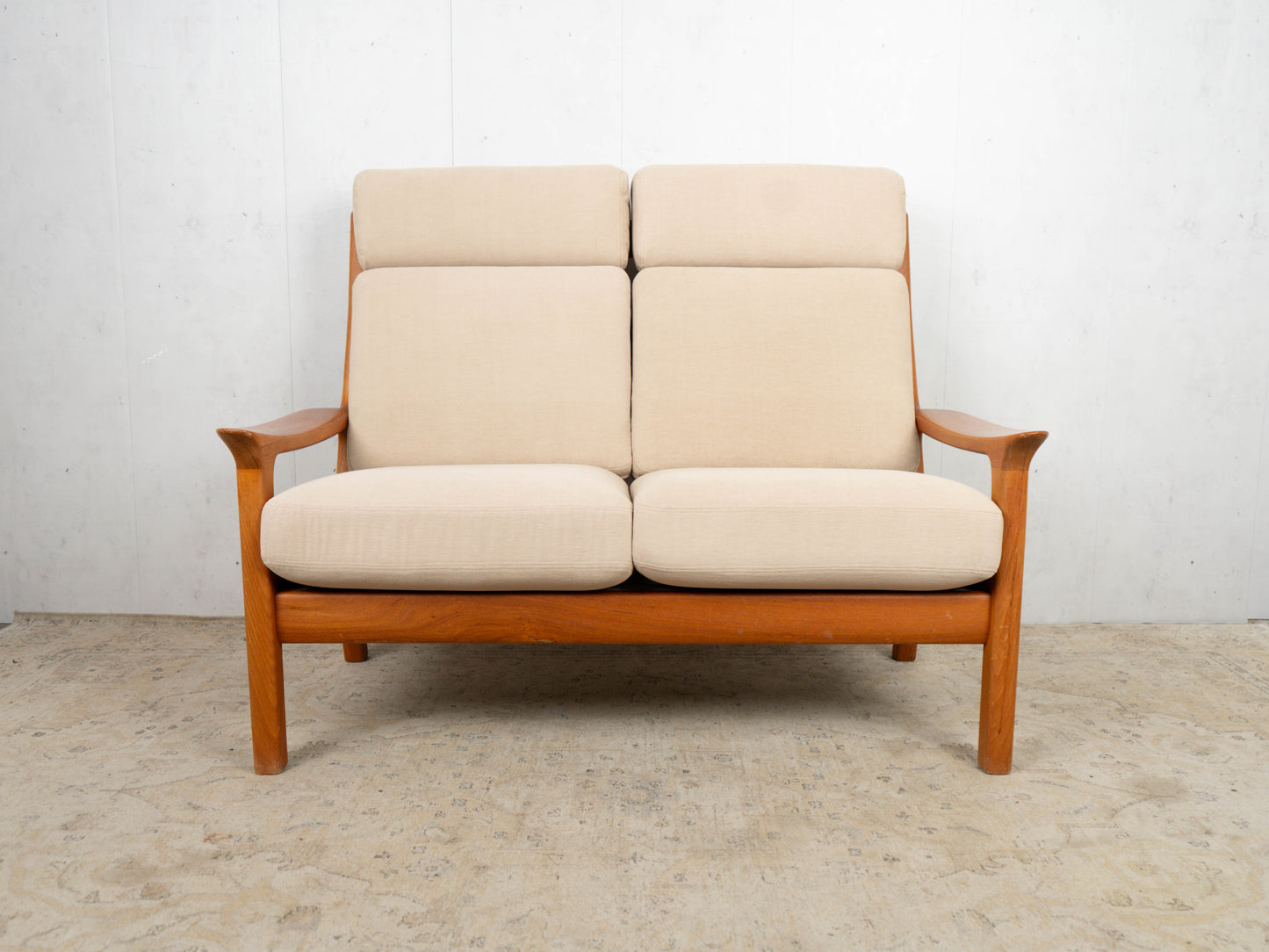 Discover the timeless design of this vintage sofa from the 1960s, which perfectly embodies the charm of mid-century modern style. This Danish teak sofa is not only an eye-catcher but also a prime example of the excellent craftsmanship of this era. The removable and washable covers ensure easy care and durability, while the clean lines and elegant shape add a stylish touch to any room.