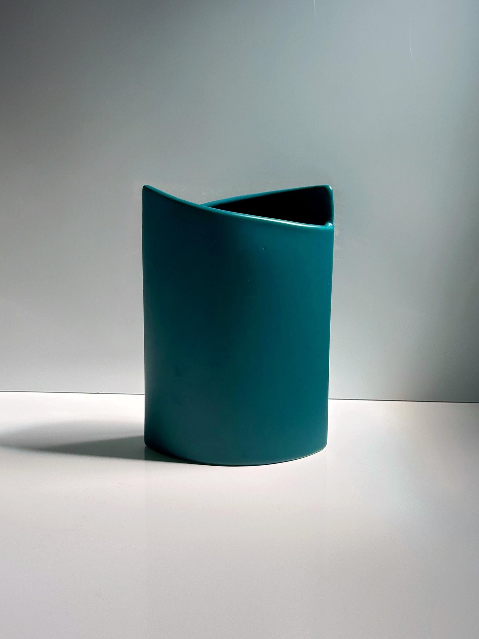 Discover the unique vintage turquoise ASA flower vase by Mandel Elypse – a true highlight for lovers of mid-century modern and space-age design. This vase dates back to the 1990s and embodies the typical postmodern flair of the Memphis Milano movement. The high-quality ceramic and striking turquoise glaze make it a stylish eye-catcher in any room. With its unusual shape and excellent quality, it is a must-have for design enthusiasts.