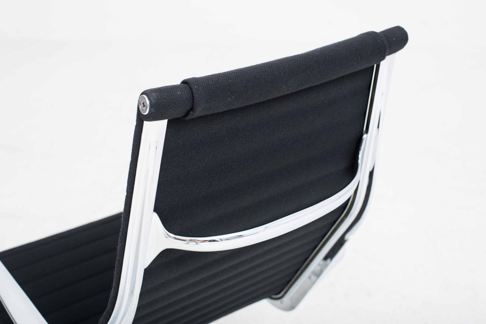 Experience timeless elegance and exceptional comfort with the Vitra EA 124 armchair and matching EA 125 ottoman—two icons of vintage Mid-Century Modern design. Designed by legendary designers Charles and Ray Eames in 1958, these pieces combine innovative technology with classic aesthetics. The Aluminium Group collection represents Space Age design and supreme functionality, perfectly blending into modern living spaces. Enjoy relaxing hours thanks to the high backrest with headrest, the tilt function, and the swivel base.