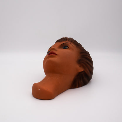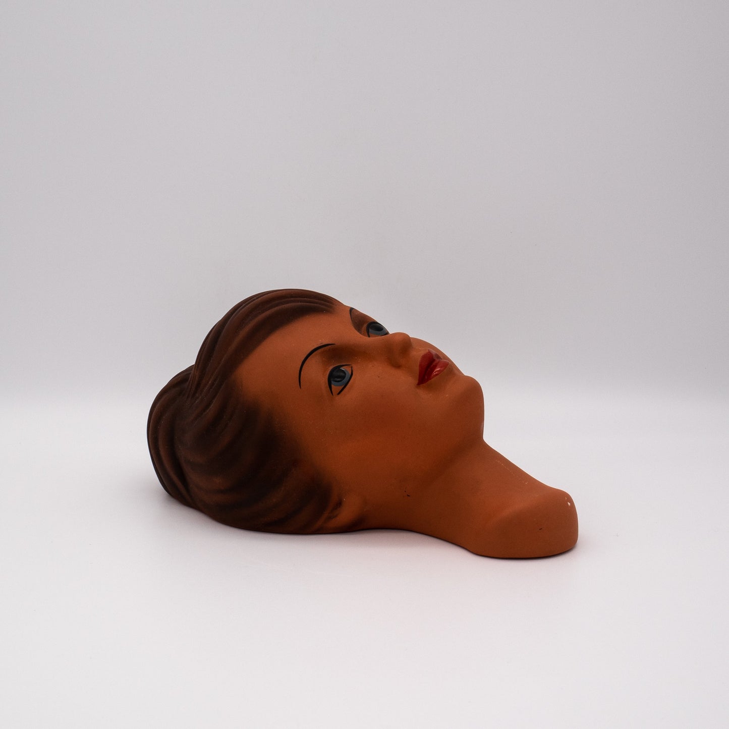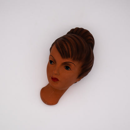 Vintage wall mask woman's head 1960s white hand-painted 20x11 cm
