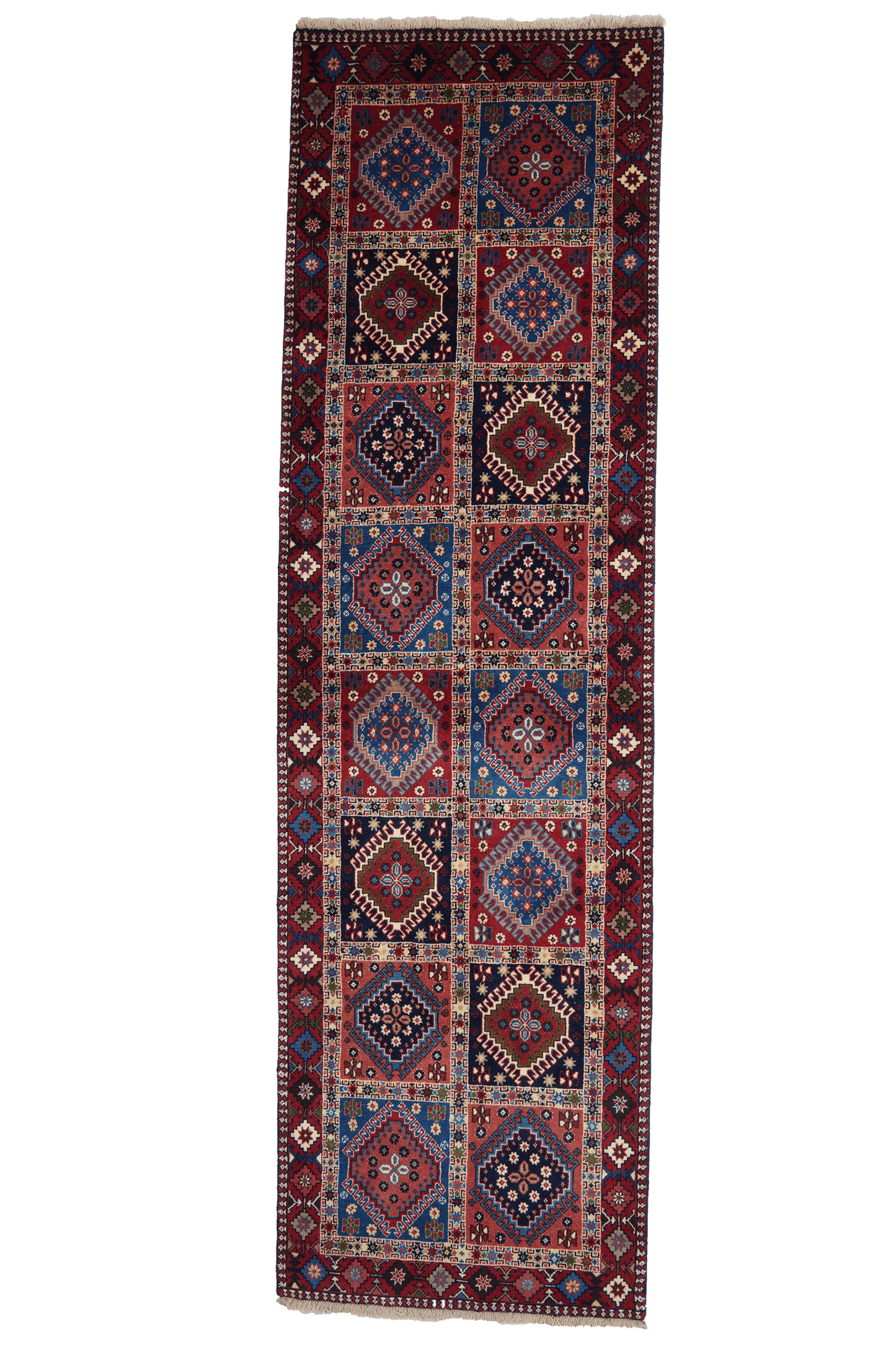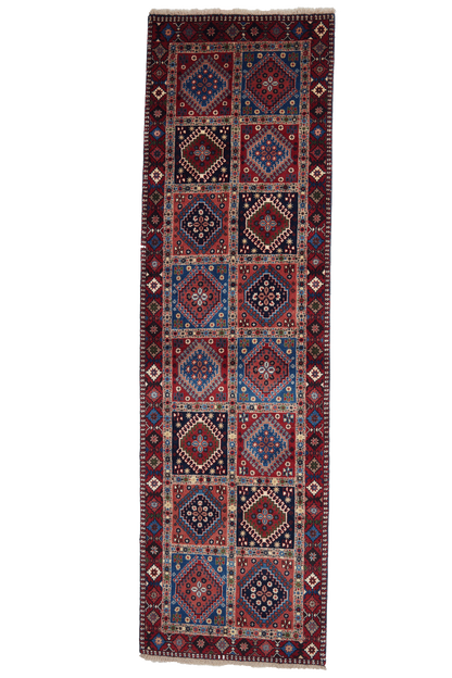 Vintage carpet Yalameh 286x83cm colorful natural motifs