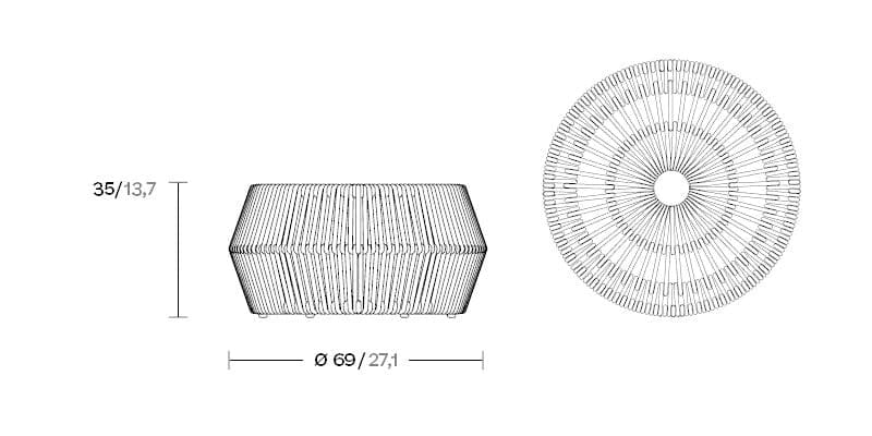With a diameter of 69 cm, the pouf offers ample seating or serves as a casual storage space for trays, books, or drinks. Thanks to its low weight of just 6.3 kg, the piece can be flexibly repositioned—perfect for dynamic outdoor settings.