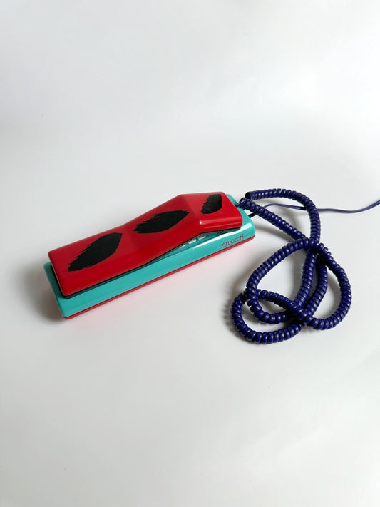 Chaise de salle à manger vintage en métal simili cuir rouge style Memphis années 1980 Italie