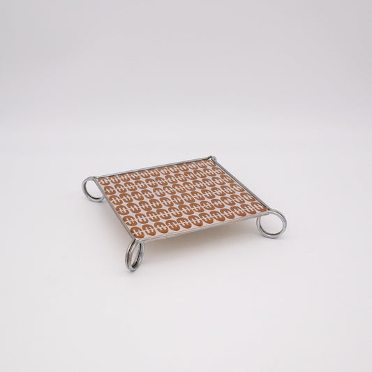Cendrier vintage en métal doré et argenté Italie années 1970 Hollywood Regency