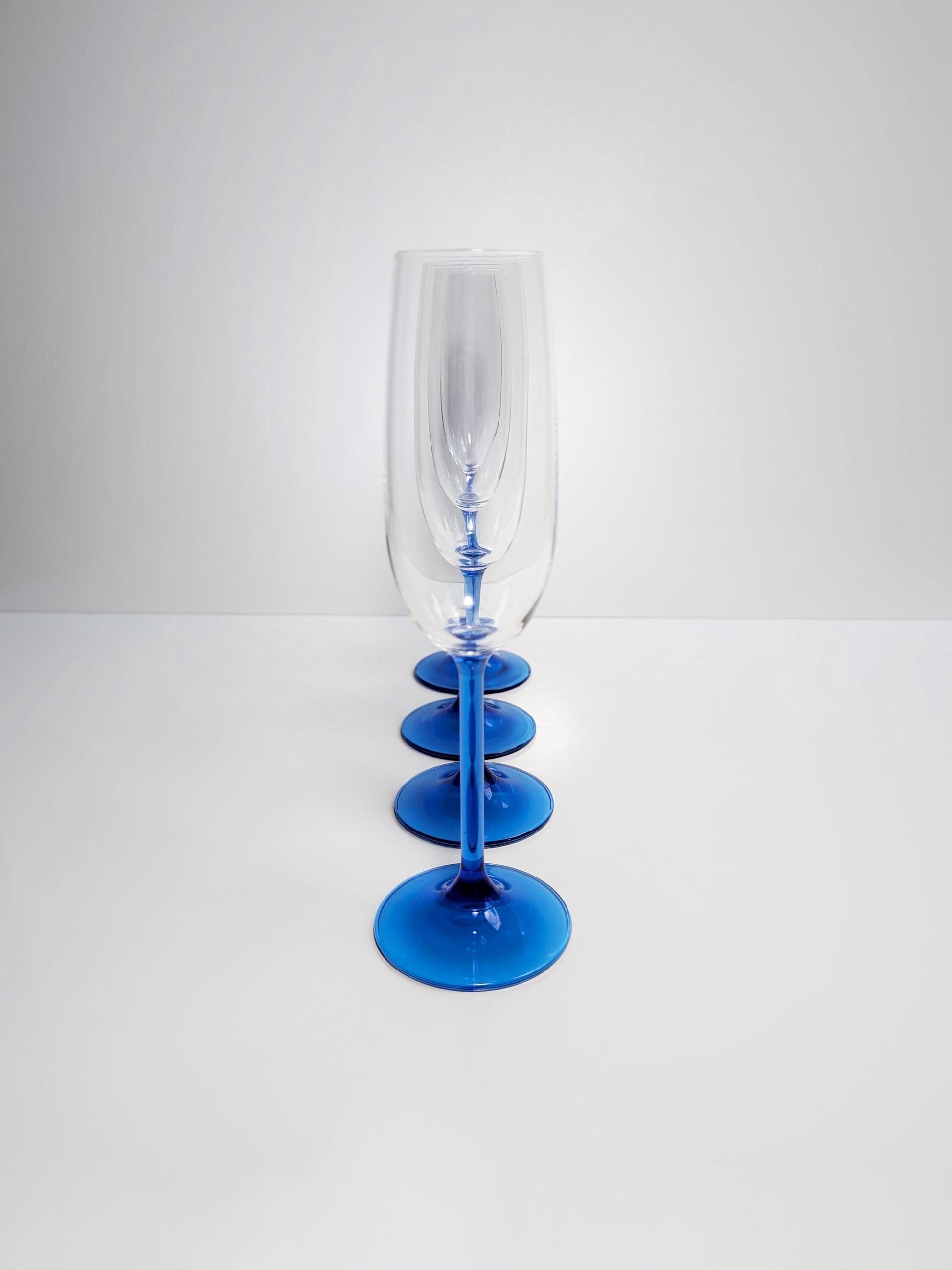 Verre à champagne vintage en cristal Luminarc bleu années 80 Lot de 4