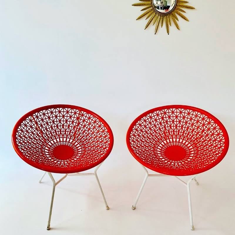 Chaise de jardin vintage Alu7 de Seledue en rouge