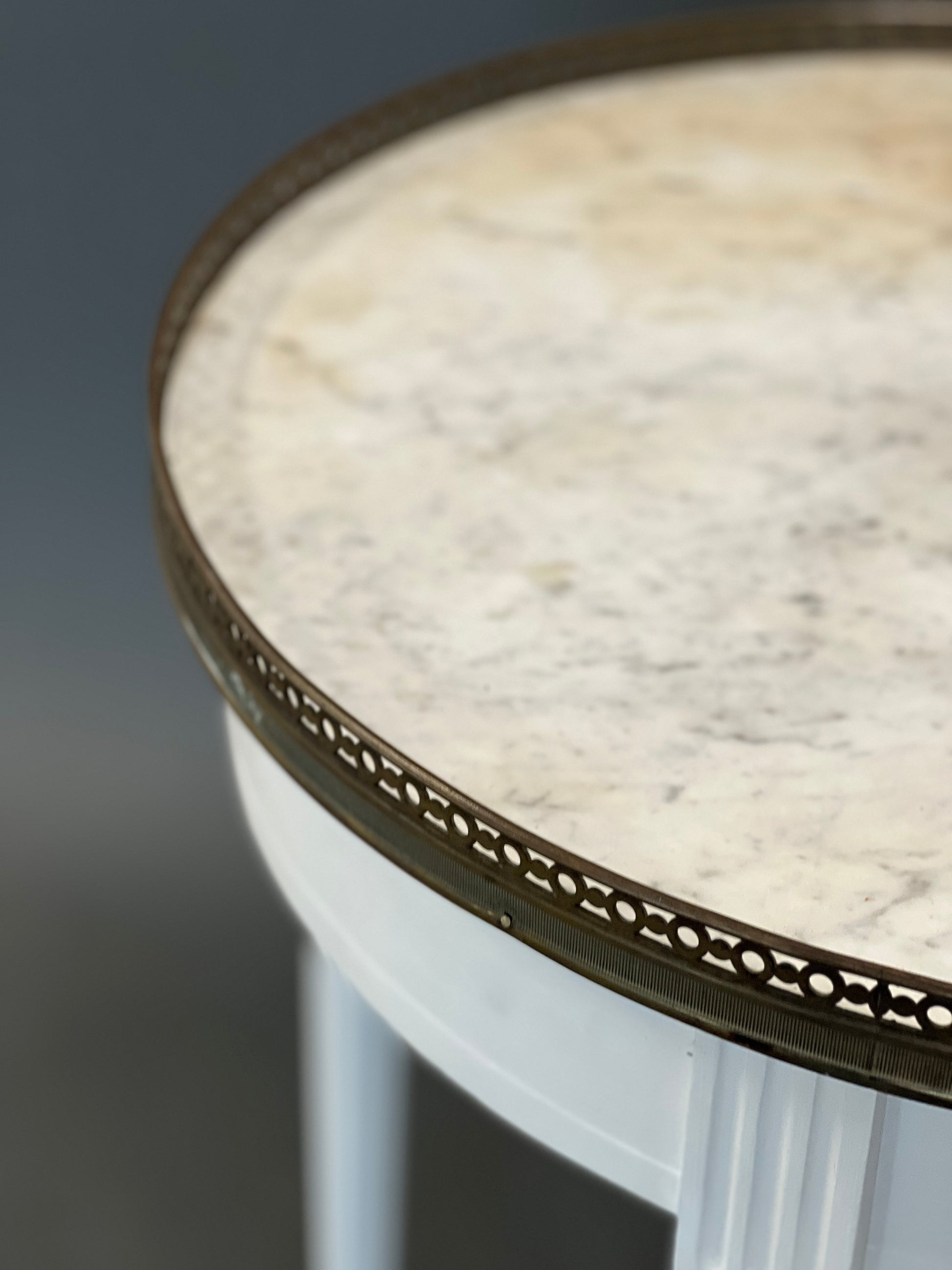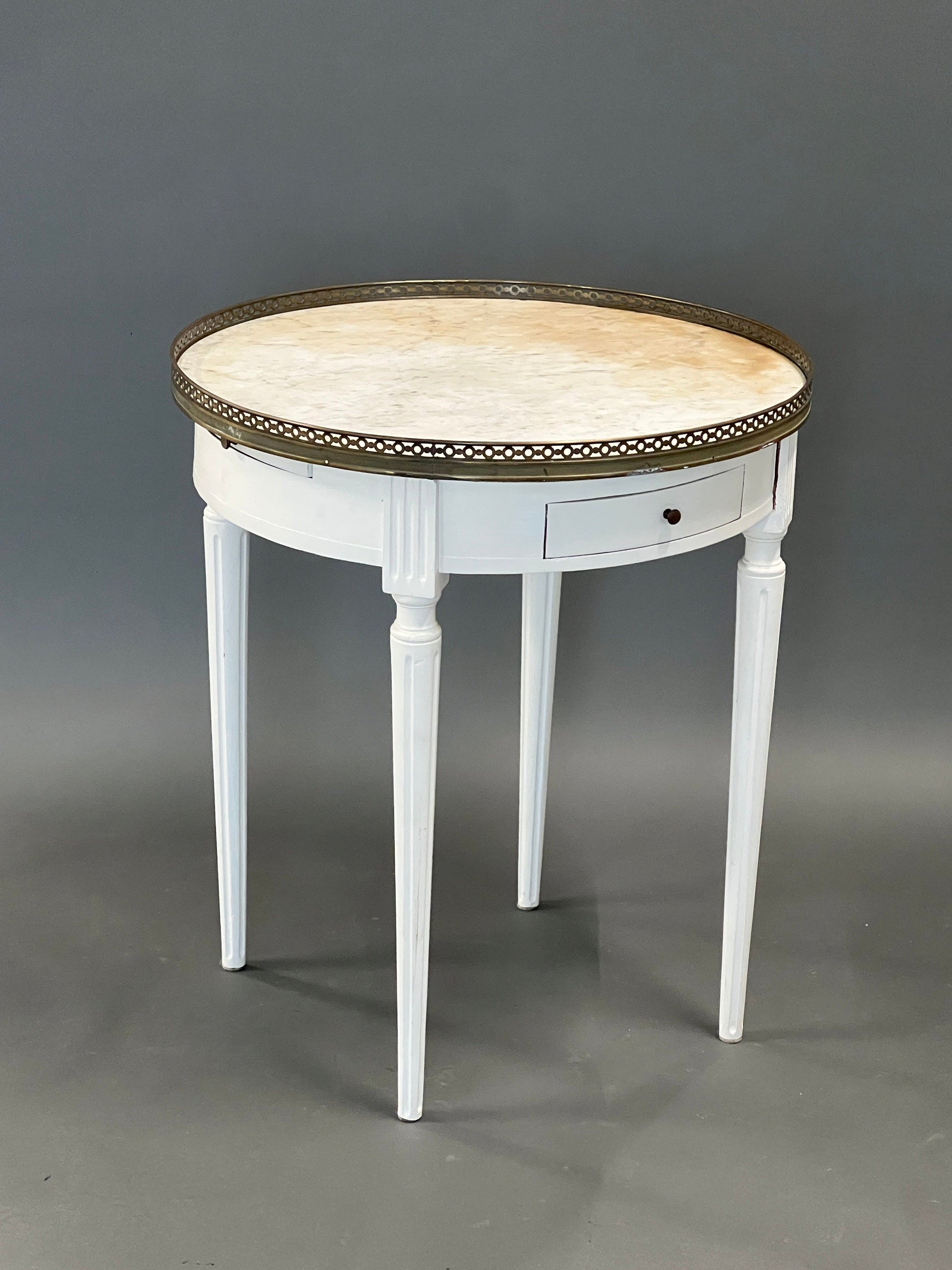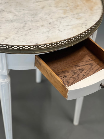 Table d'appoint ronde blanche antique avec tiroir