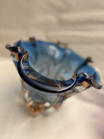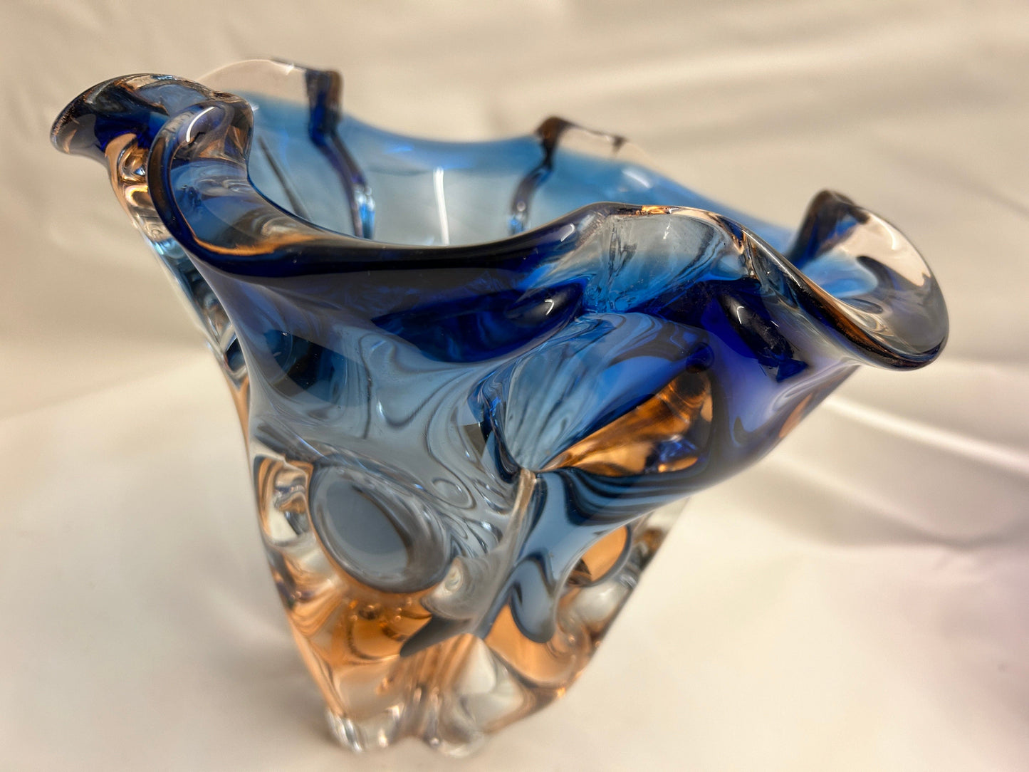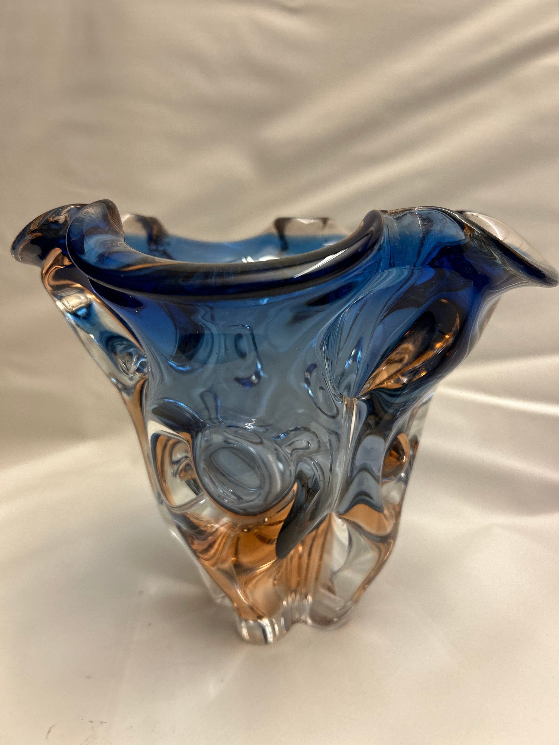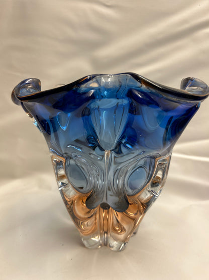 Vase Vintage Bohème par pour dégradé de couleurs ambre à bleu, verre massif, années 1970