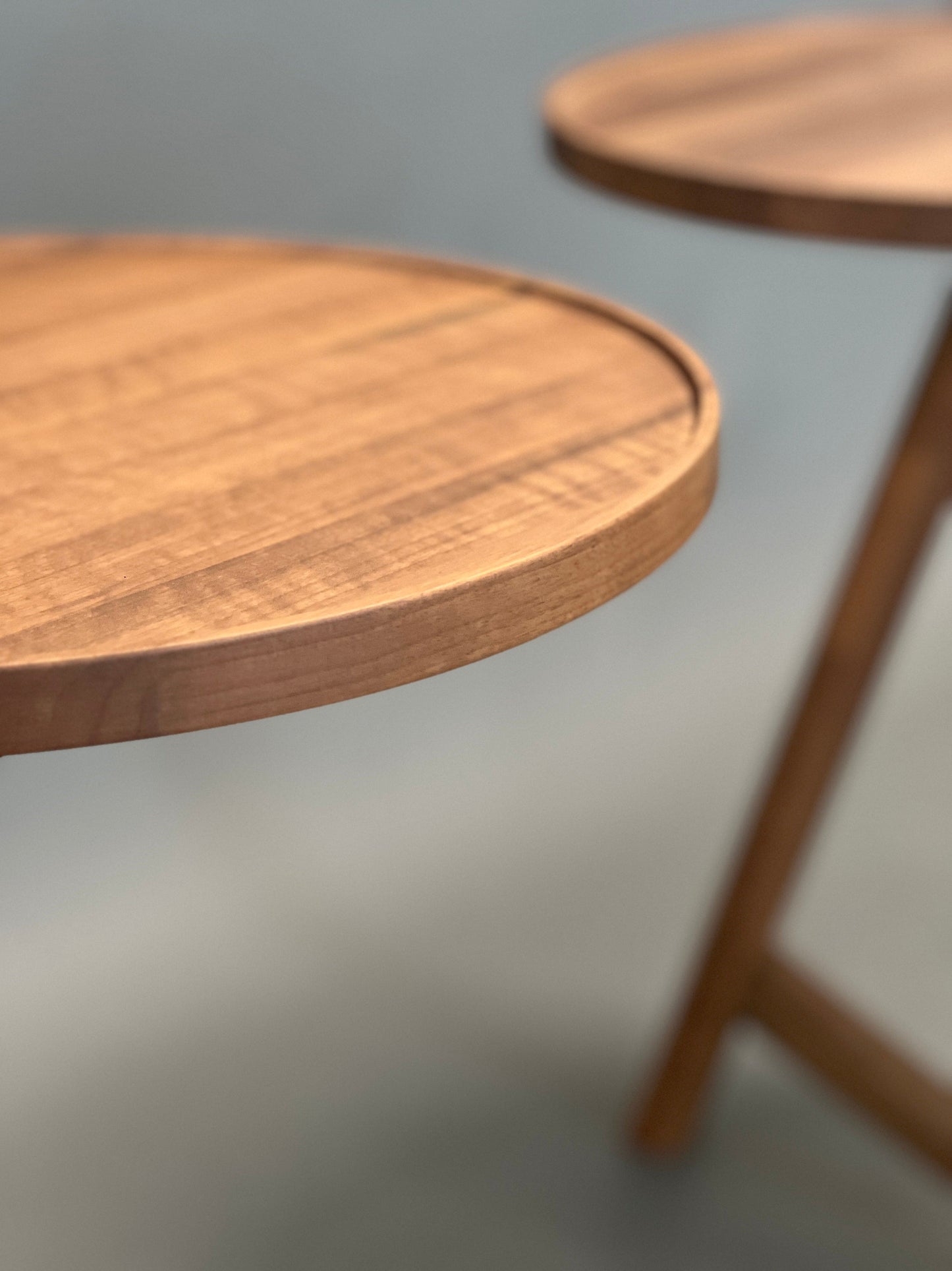 - Caractéristiques : Ensemble de 2 tables d’appoint ; prix de l’ensemble : 900 € ; lignes épurées et proportions harmonieuses ; inspirations Mid-Century et Space Age