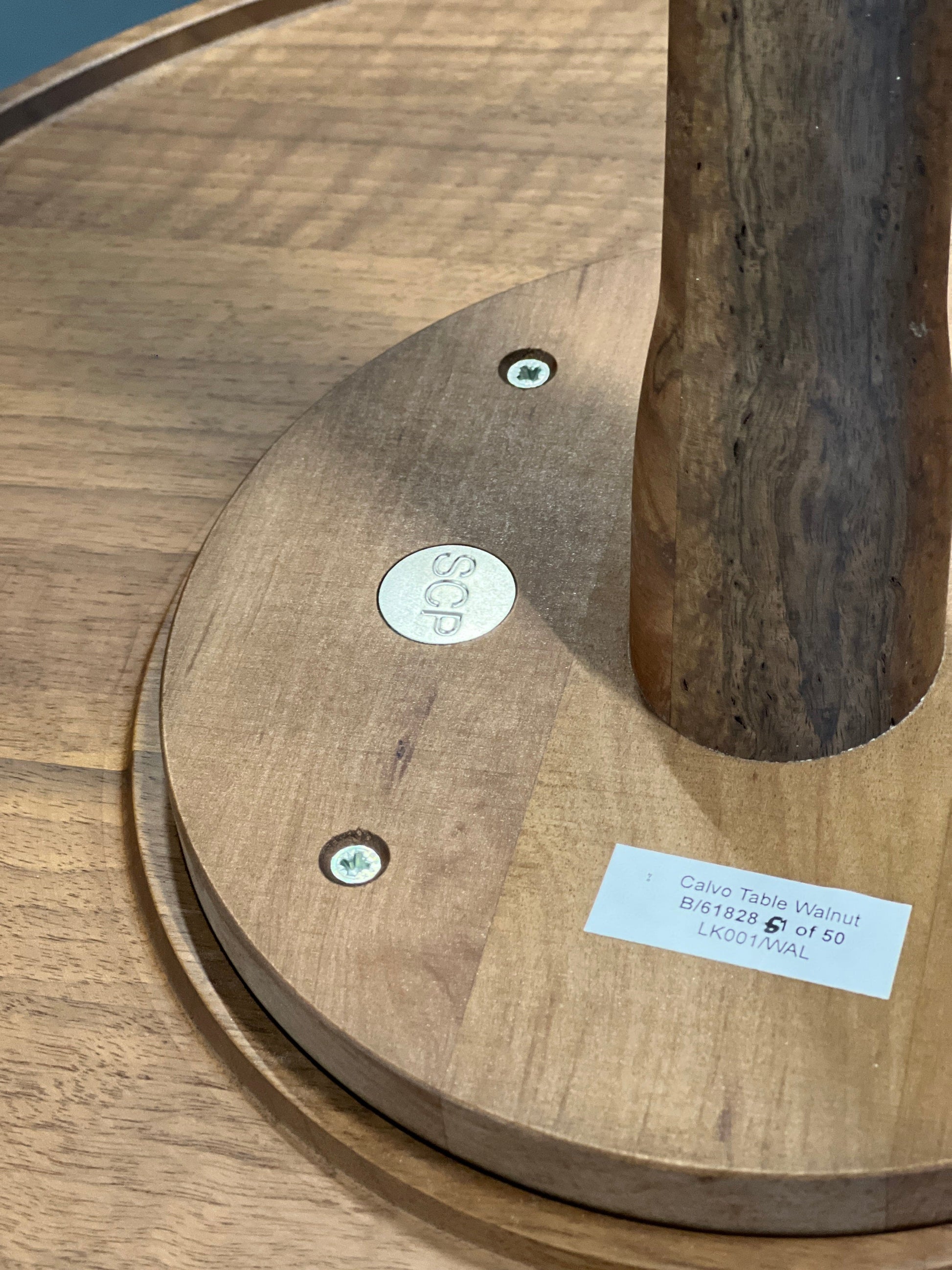 La table d'appoint Calvo de Lee Kirkbride se distingue par ses lignes épurées et ses courbes douces. Son plateau organique repose sur un piètement parfaitement équilibré, alliant sérénité, fonctionnalité et sobriété. Fabriquée en noyer, elle apporte chaleur et texture à la pièce. Vendue par lot de deux, elle peut être utilisée séparément ou assemblée. Des références subtiles au design du milieu du XXe siècle et à l'ère spatiale se font sentir, sans aucune nostalgie. Un complément idéal pour un canapé, un fauteuil ou un lit. Pour les amateurs de minimalisme qui souhaitent mettre en valeur les qualités intrinsèques du bois. Un style intemporel, une réalisation impeccable.