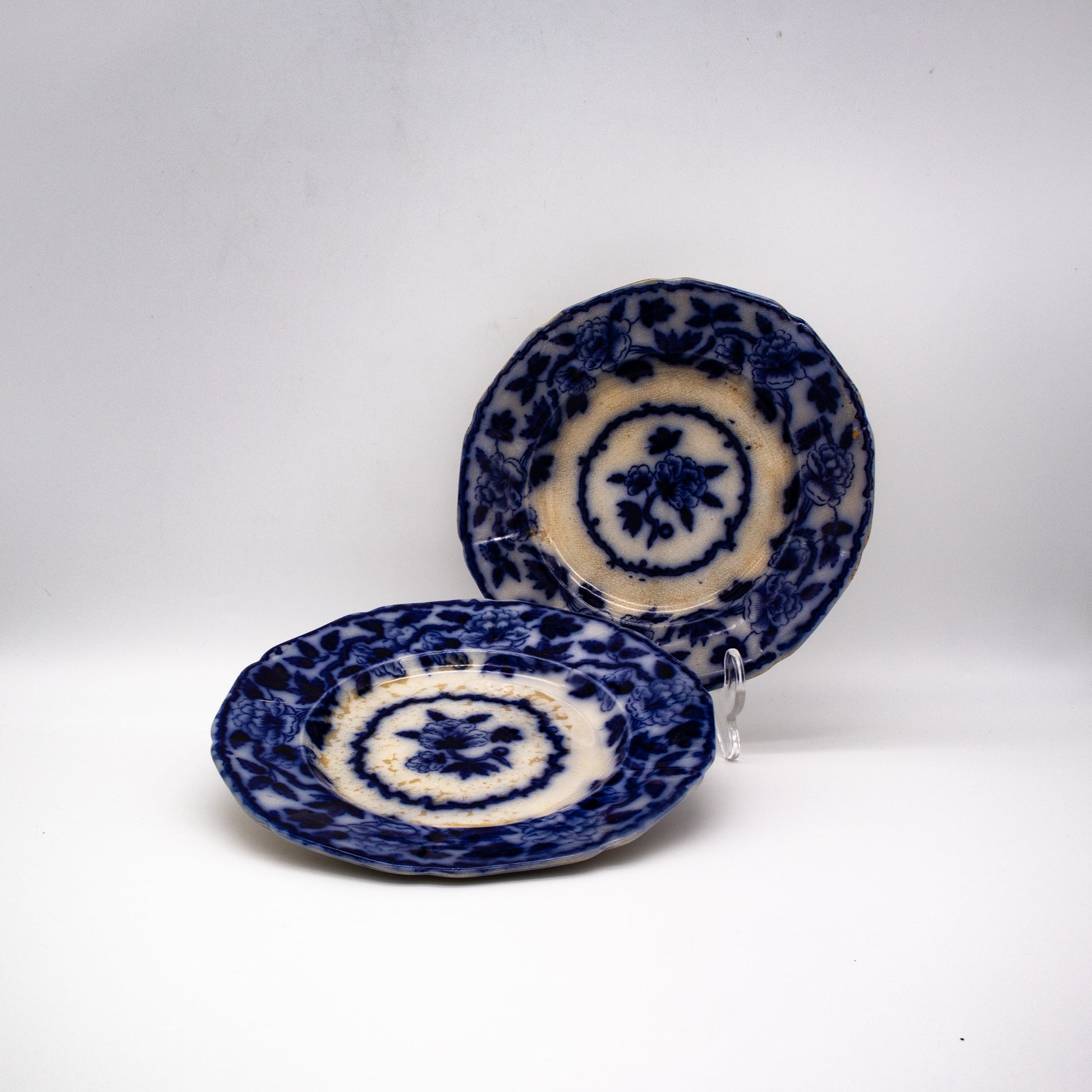 Ce magnifique service d'assiettes à dessert a été réalisé par Villeroy et Boch vers 1850. Au bas de l'assiette se trouvent le logo de l'entreprise et l'inscription Japonica ainsi qu'un numéro 5 imprimé. Les assiettes ont une magnifique patine et sont de véritables pièces de collection.