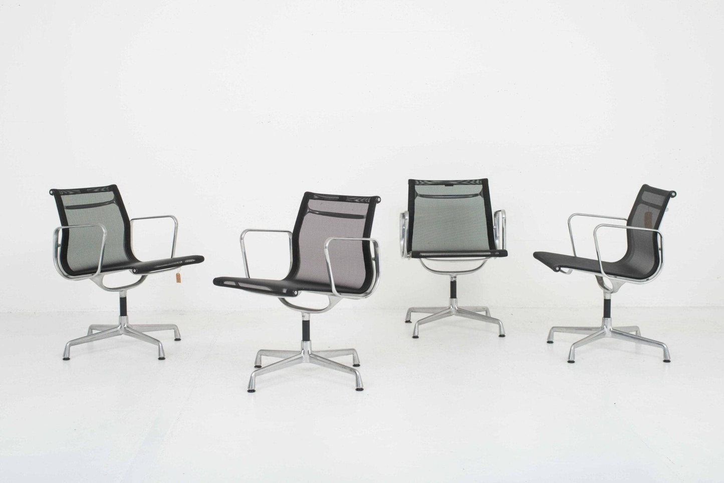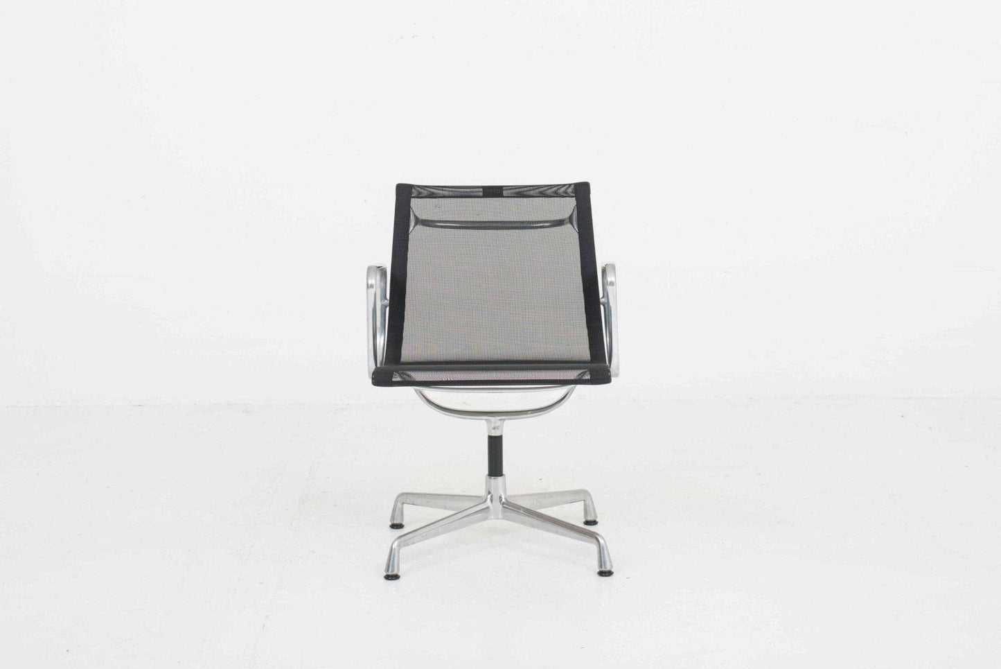 Chaise de bureau vintage Eames EA 108 par Vitra tissu résille noir aluminium poli