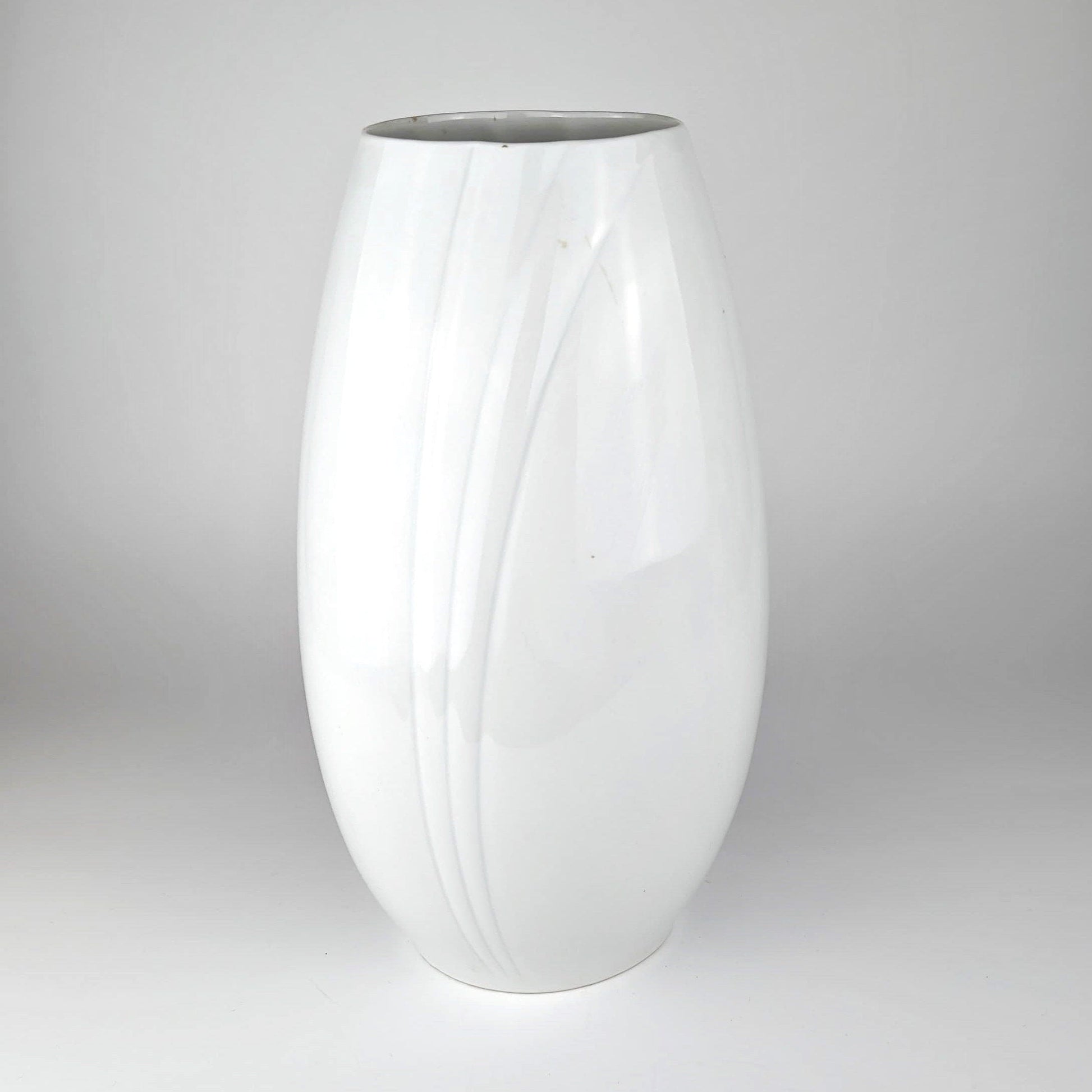 Grand vase vintage en céramique de style Art Déco Neo Revival, inspiré des années 1980, en forme de coquille délicate et abstraite.