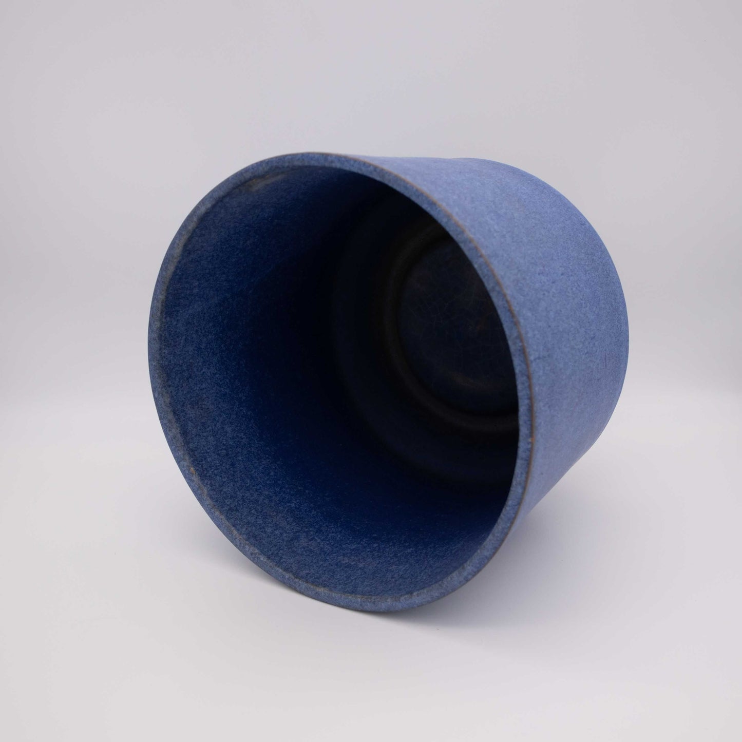 Le grand pot de fleurs est un bel élément de décoration pour votre maison. L'émail oscille entre le bleu clair et le bleu foncé et la forme rappelle les produits de la société de céramique scandinave Arabica. Le pot est fait d’argile de haute qualité et est dans un état presque impeccable. Avec son design de première classe, il attirera tous les regards dans n'importe quel intérieur.
