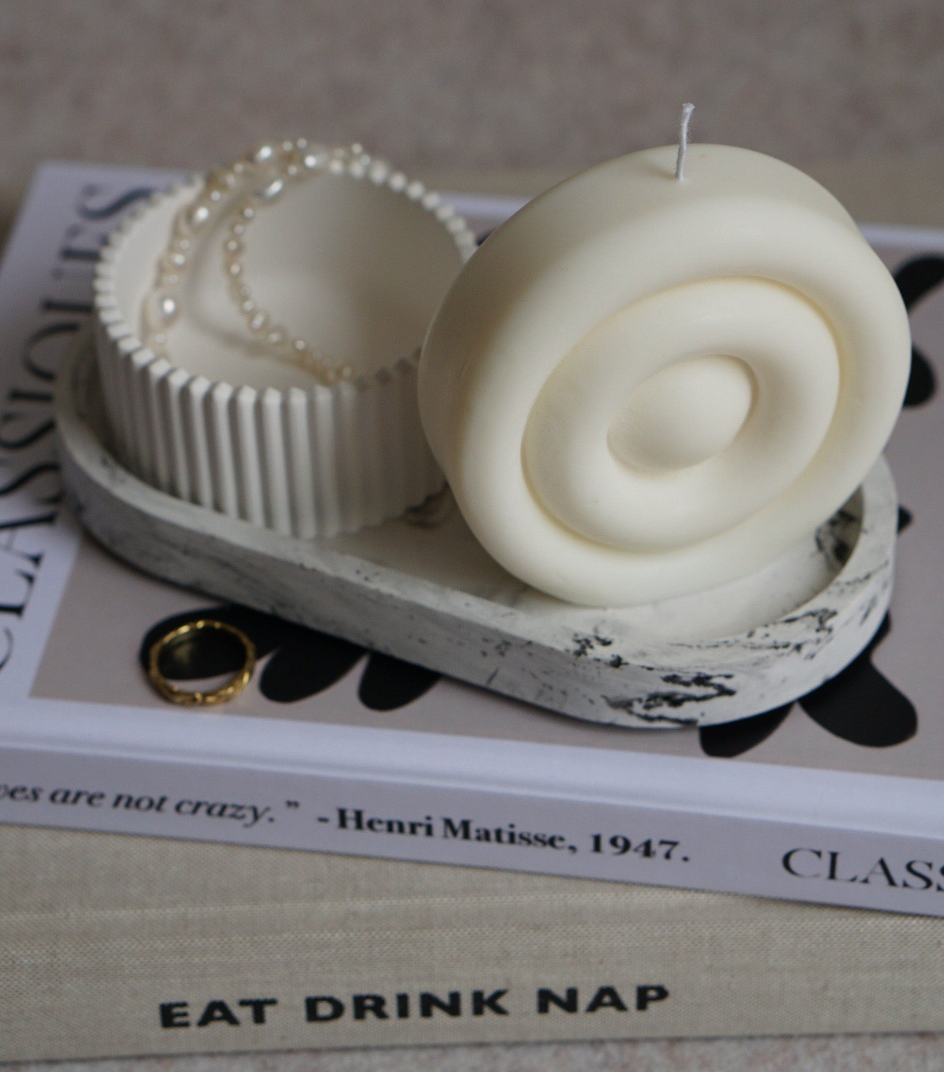 Si vous souhaitez également allumer la bougie et pas seulement l'utiliser comme décoration, nous vous recommandons de placer quelque chose en dessous, comme les plateaux, qui sont également disponibles dans ma boutique :) De cette façon, la cire est soigneusement collectée.
