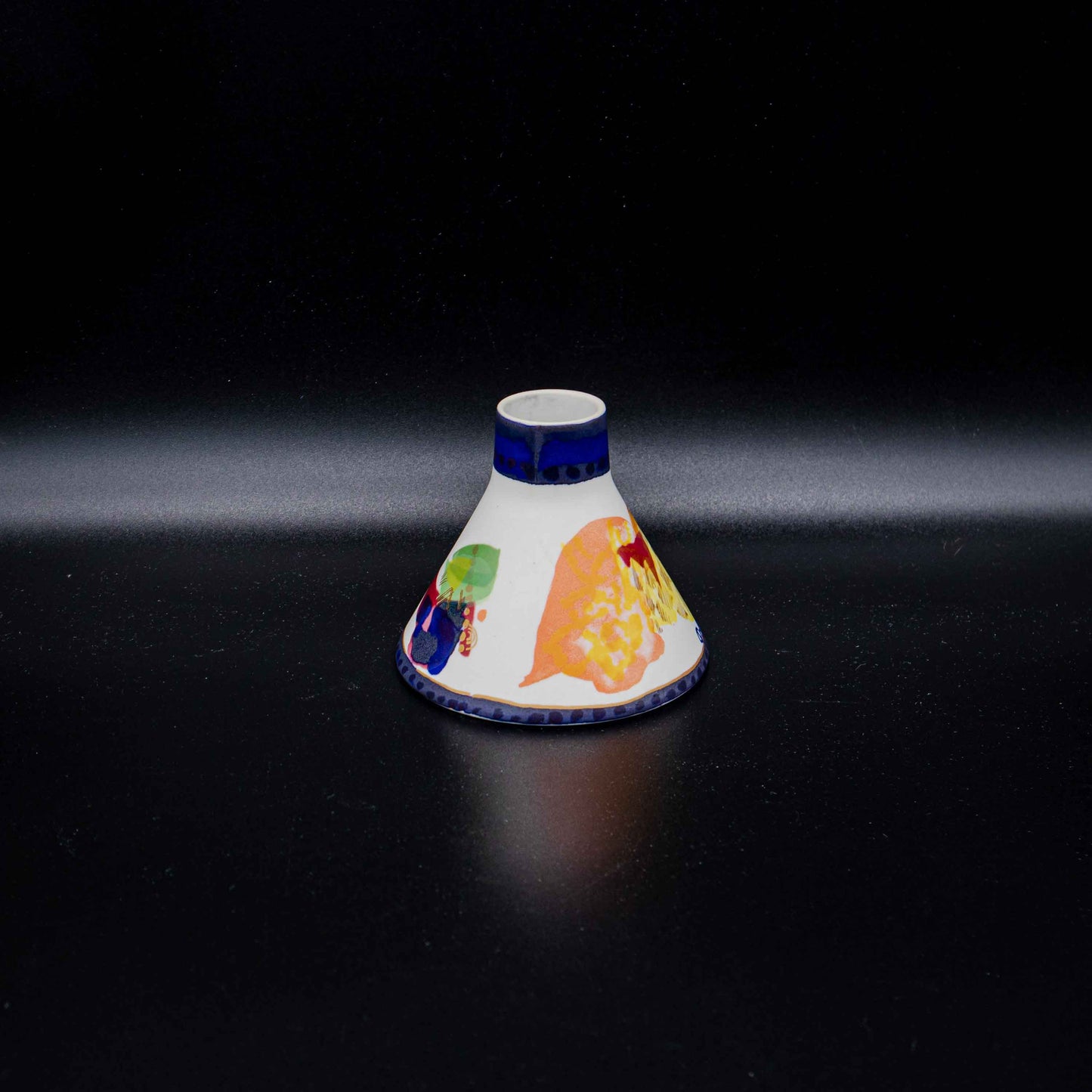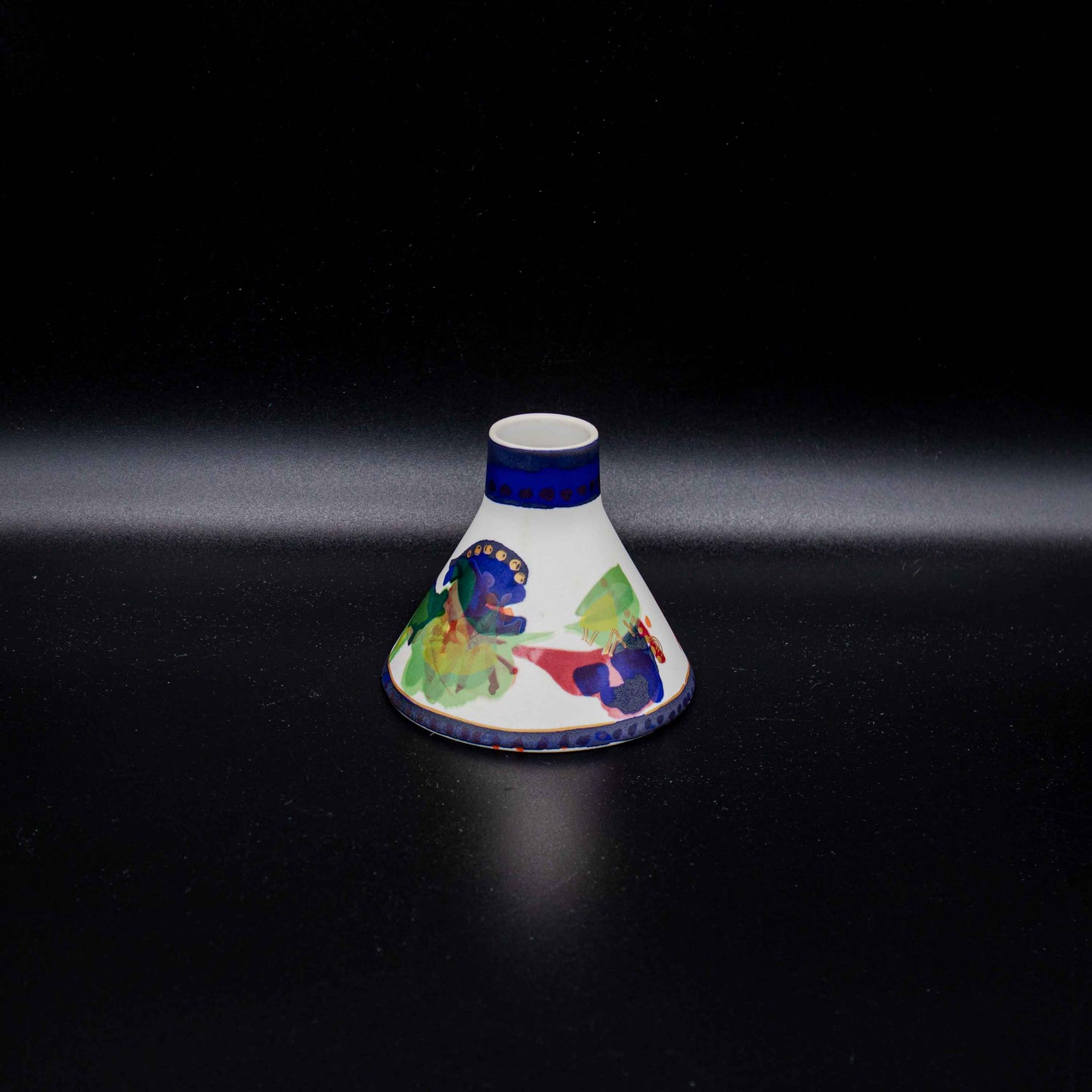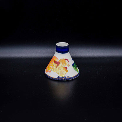 Ce magnifique bougeoir de la manufacture de porcelaine Rosenthal a été fabriqué au milieu des années 1980. Sa base est décorée de motifs colorés et abstraits.