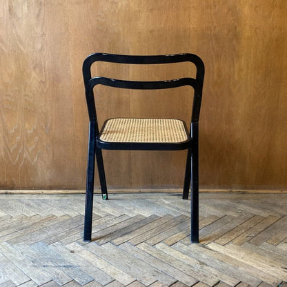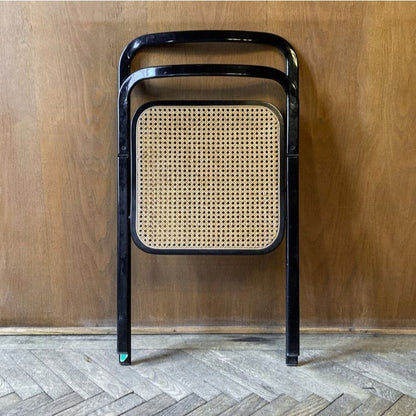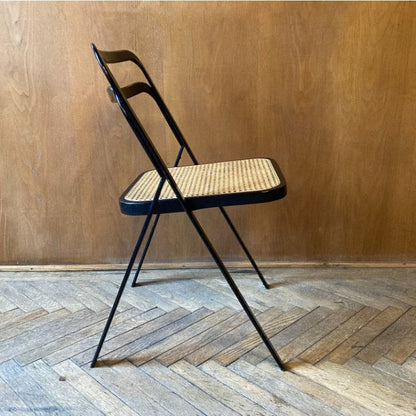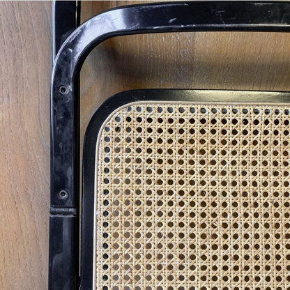 Chaise pliante vintage chromée et en rotin, Italie, années 1970, lot de 4