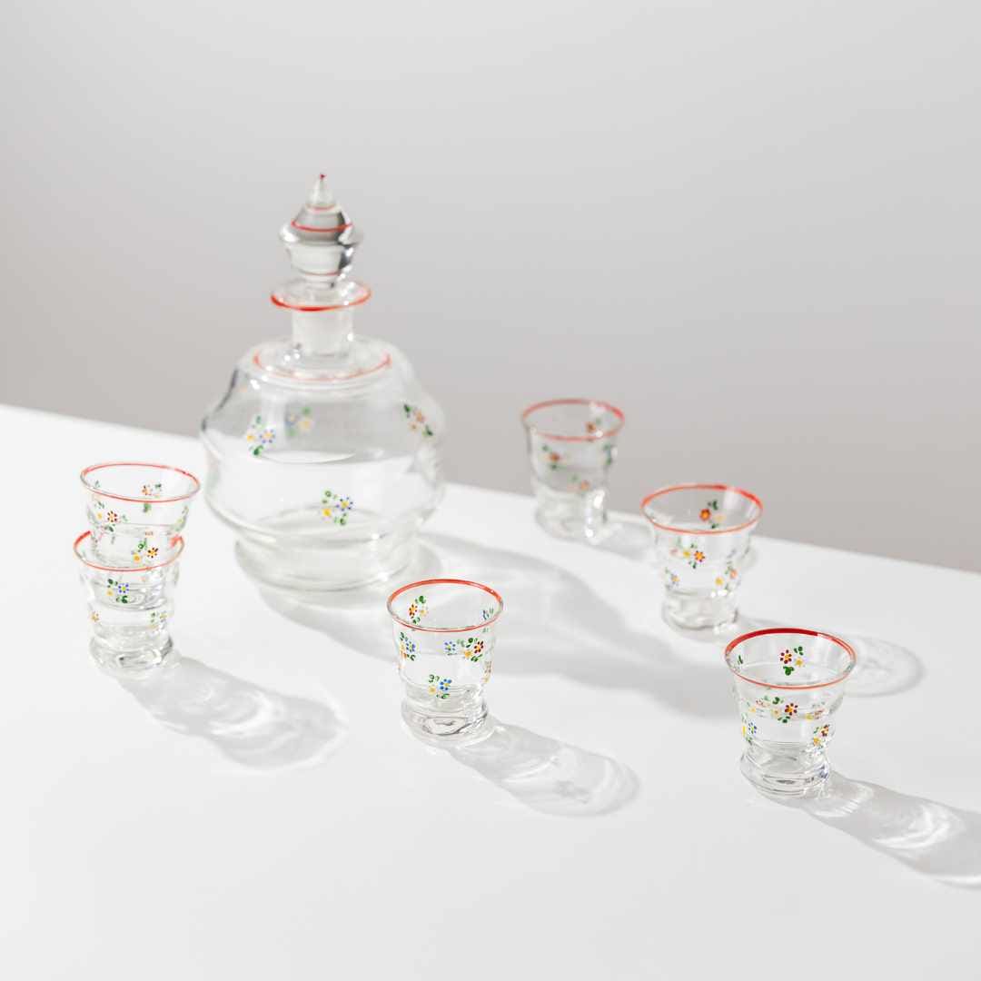 Service à liqueur vintage avec verre à fleurs, lot de 7