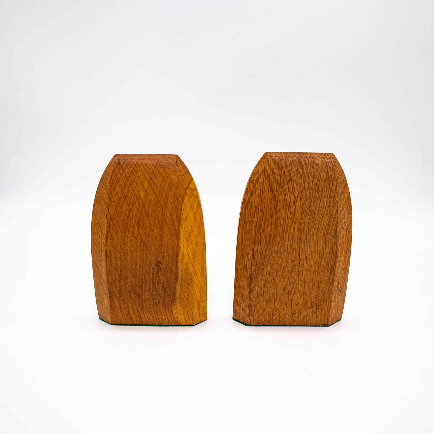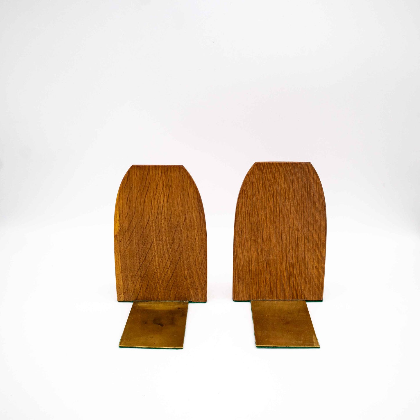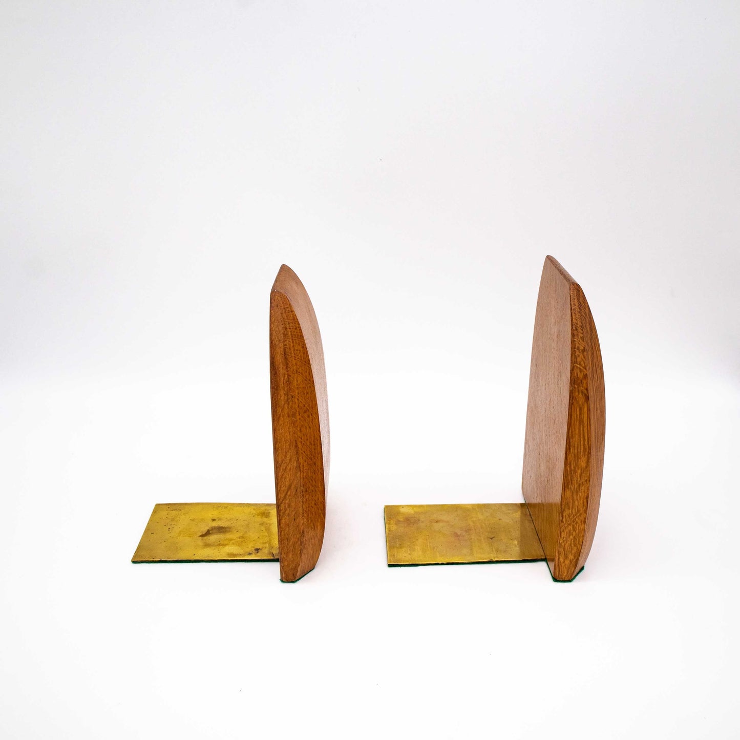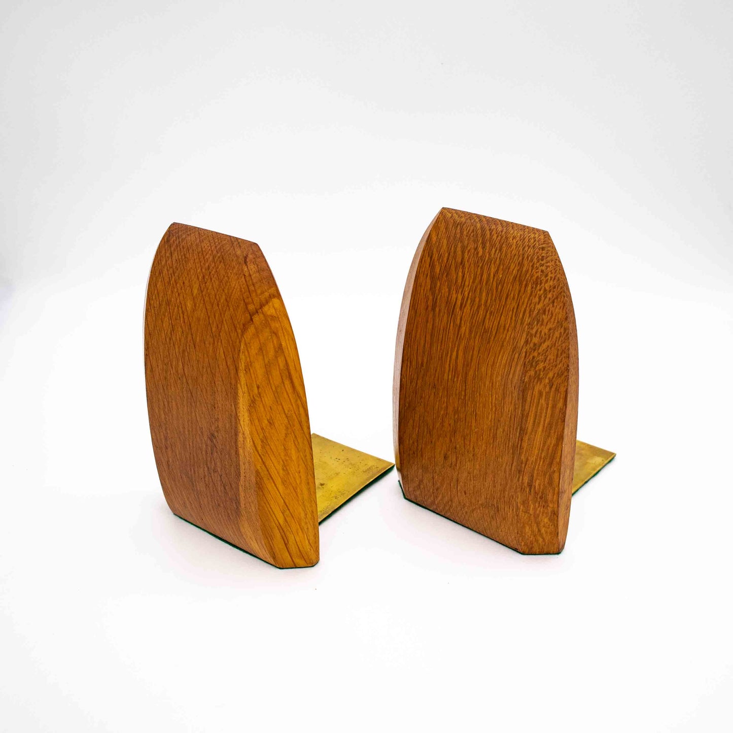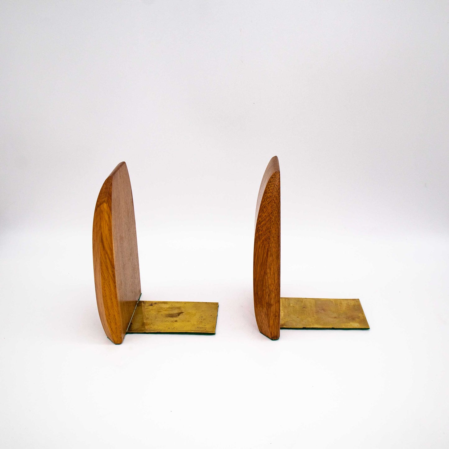 Serre-livres vintage en bois et laiton du milieu du siècle