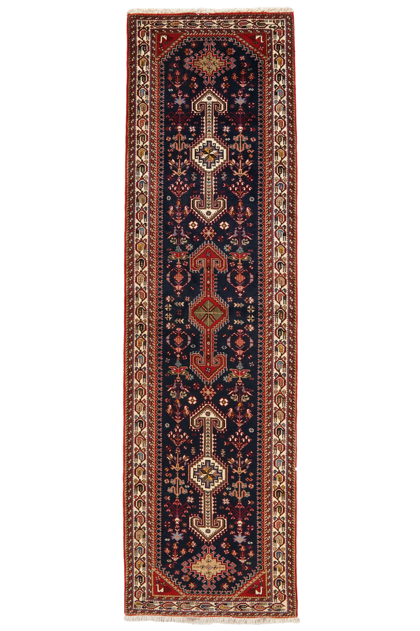 Le Nasrabad Le tapis vintage mesurant 305 x 81 cm est une expression d'un savoir-faire magistral et d'une histoire culturelle. Ces tapis sont connus pour leur tissage serré et leur utilisation de laine filée à la main, ce qui leur confère une texture et une durabilité uniques. Les designs sont souvent inspirés de la nature et du mode de vie des nomades Gashgai et Lori qui fabriquent ces tapis. Ils sont non seulement décoratifs mais aussi fonctionnels car ils apportent chaleur et confort à n'importe quelle pièce.
