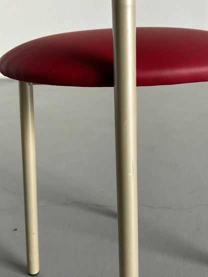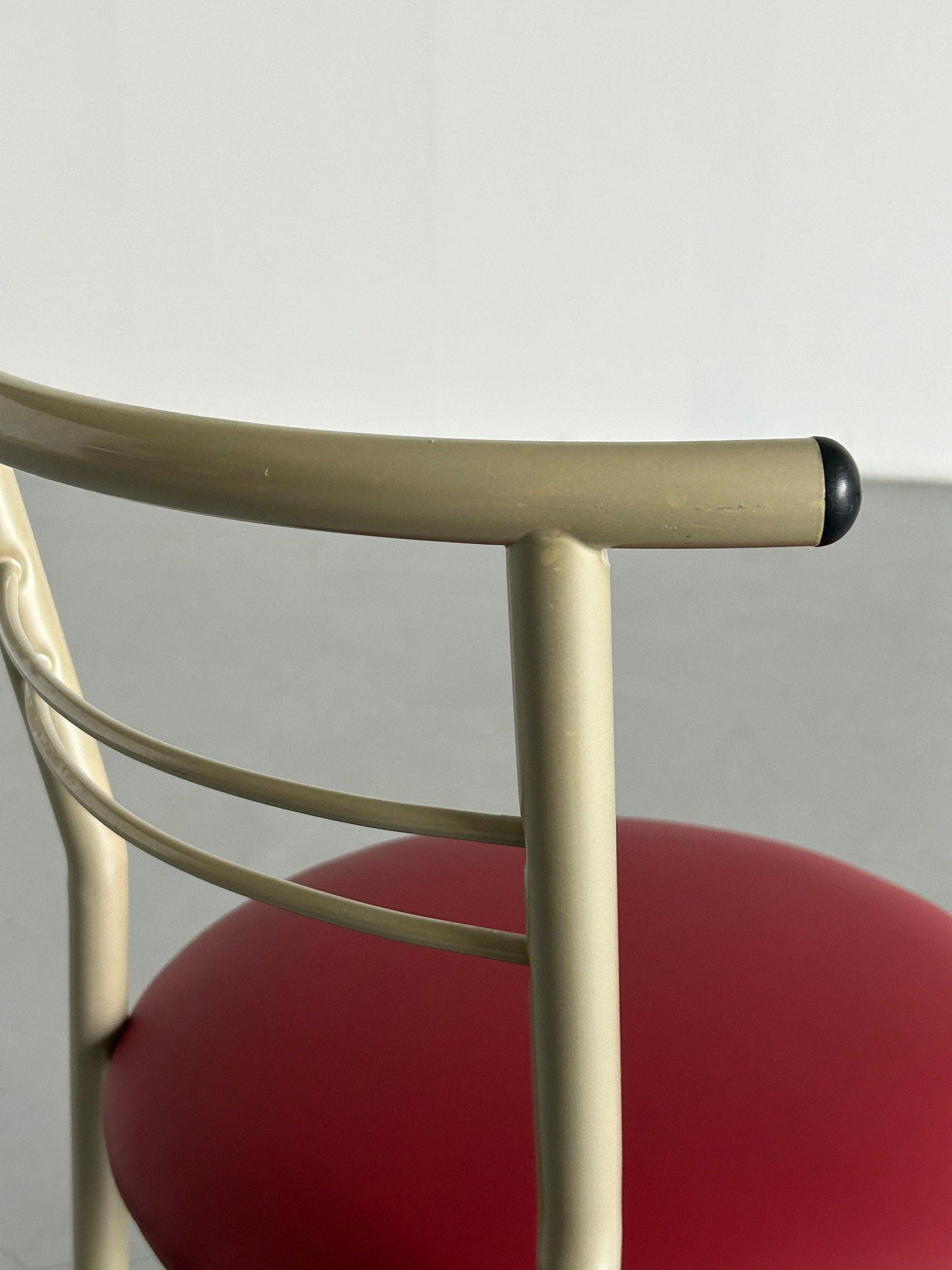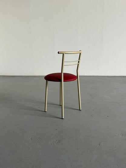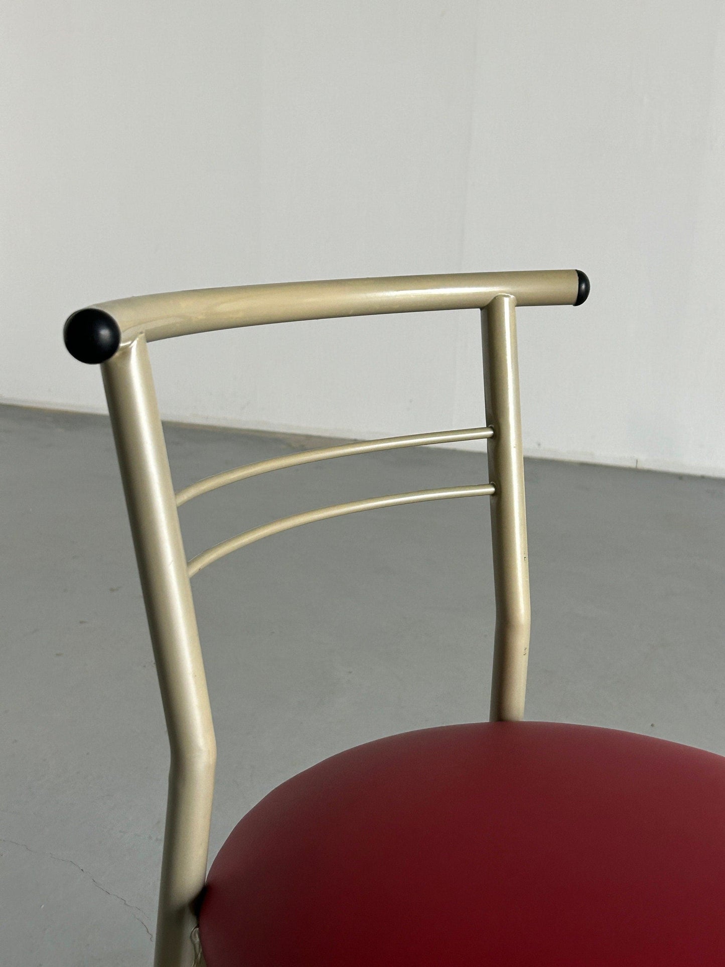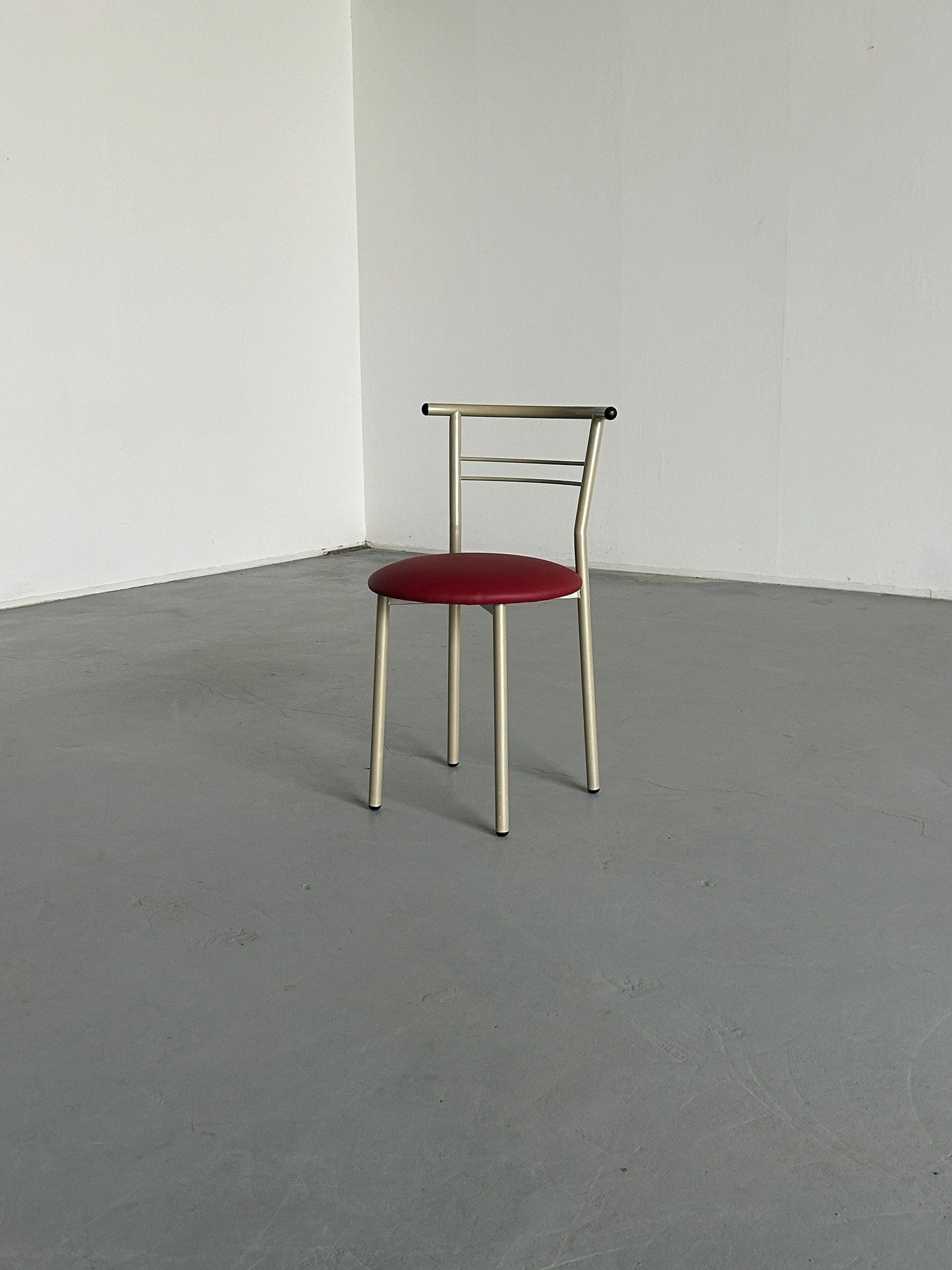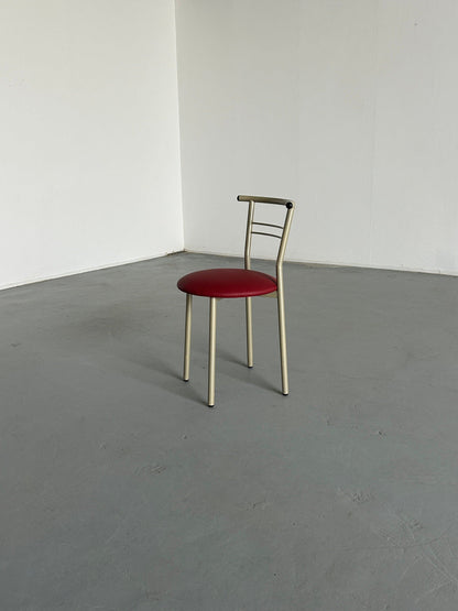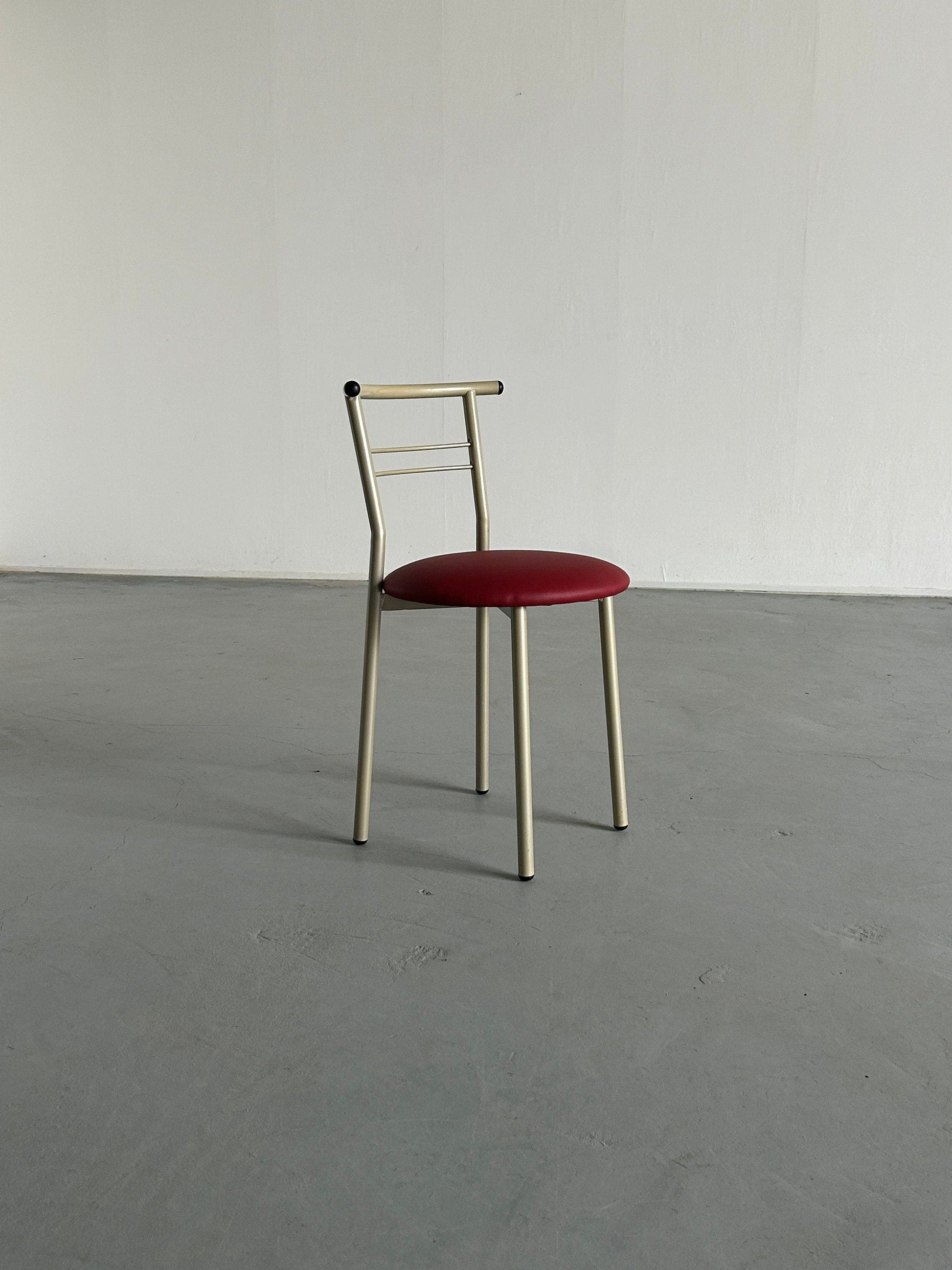 Chaise de salle à manger vintage en métal simili cuir rouge style Memphis années 1980 Italie
