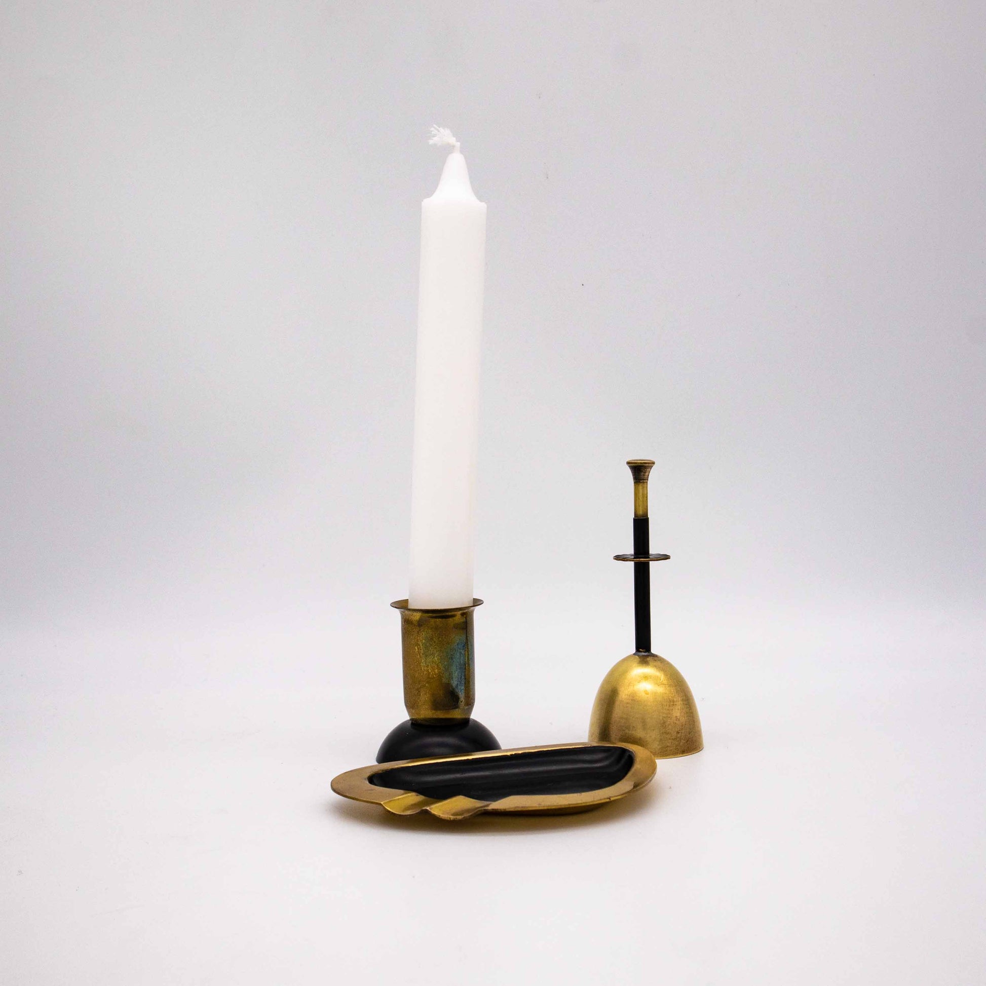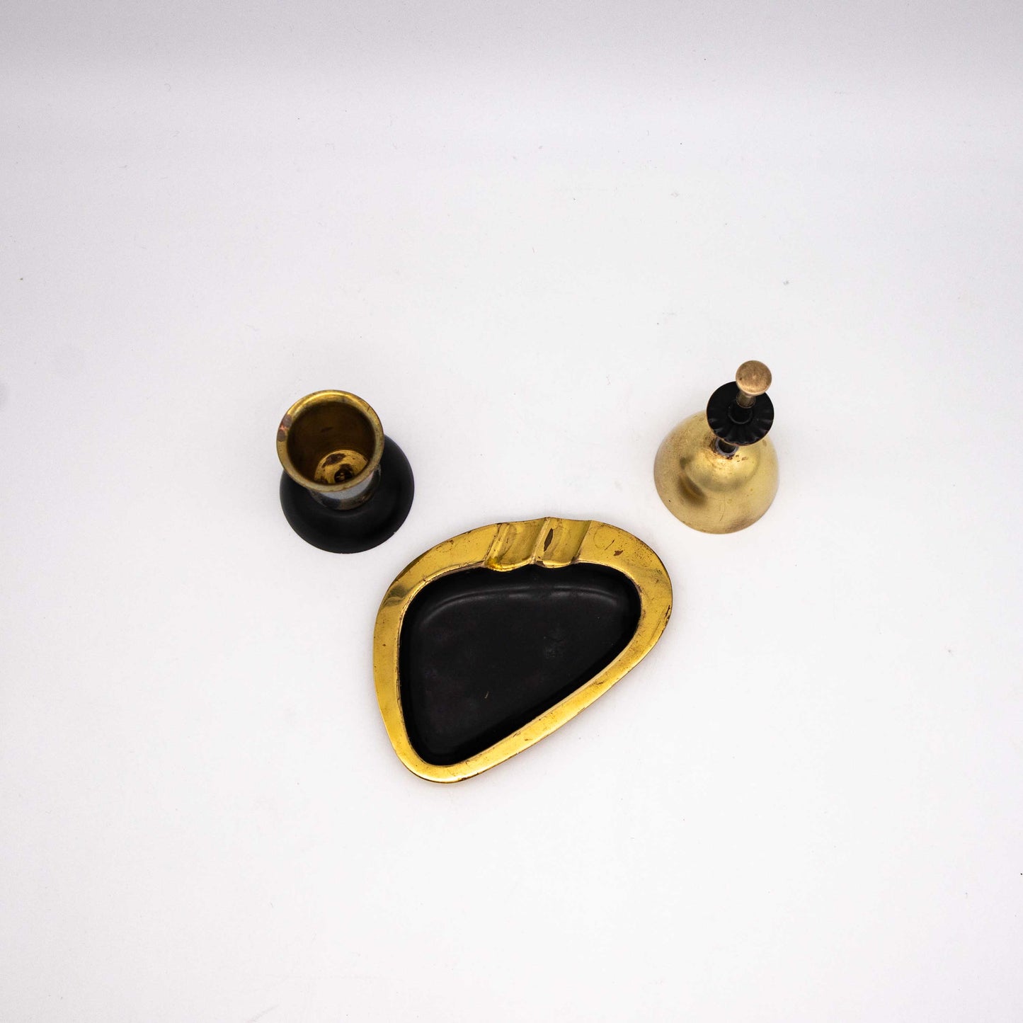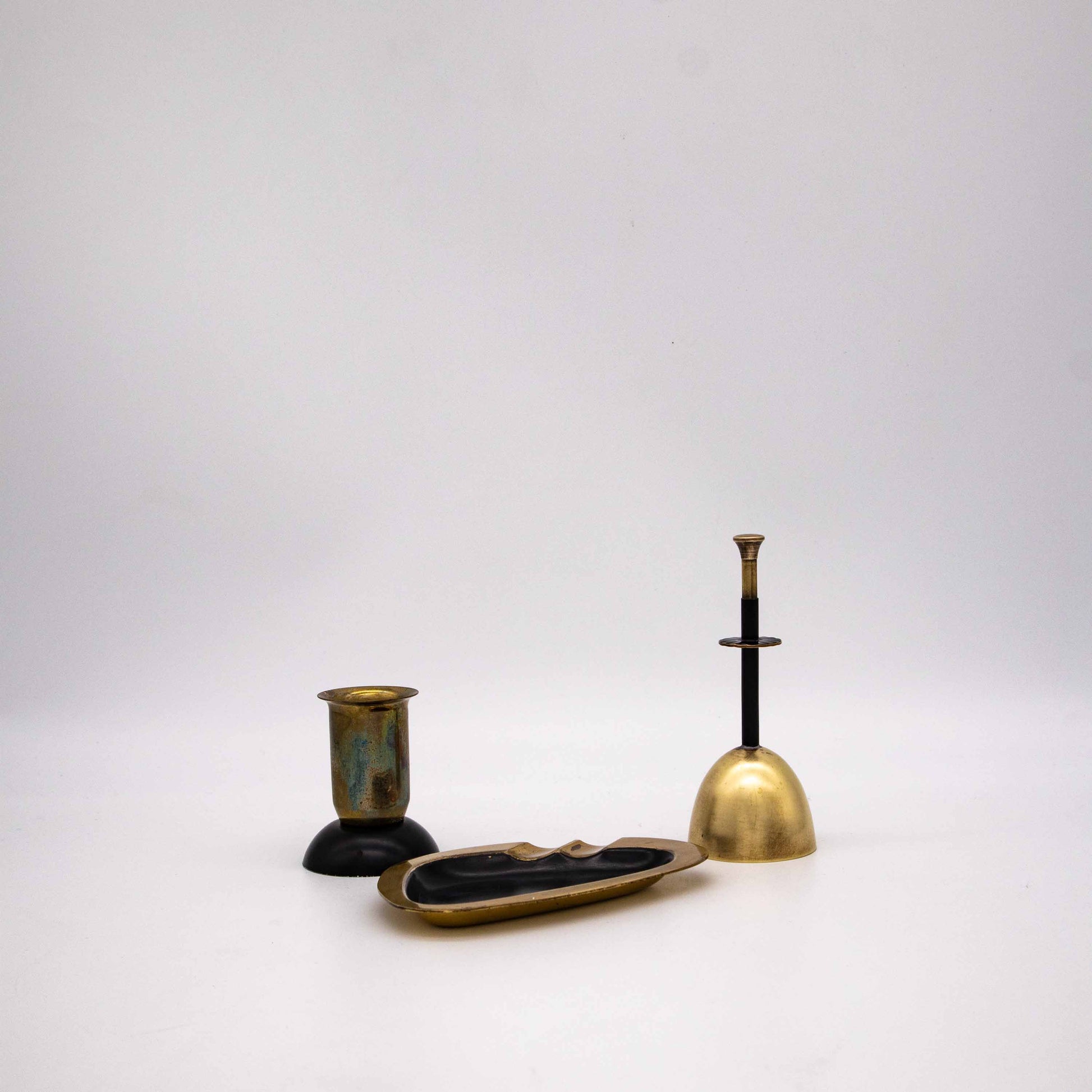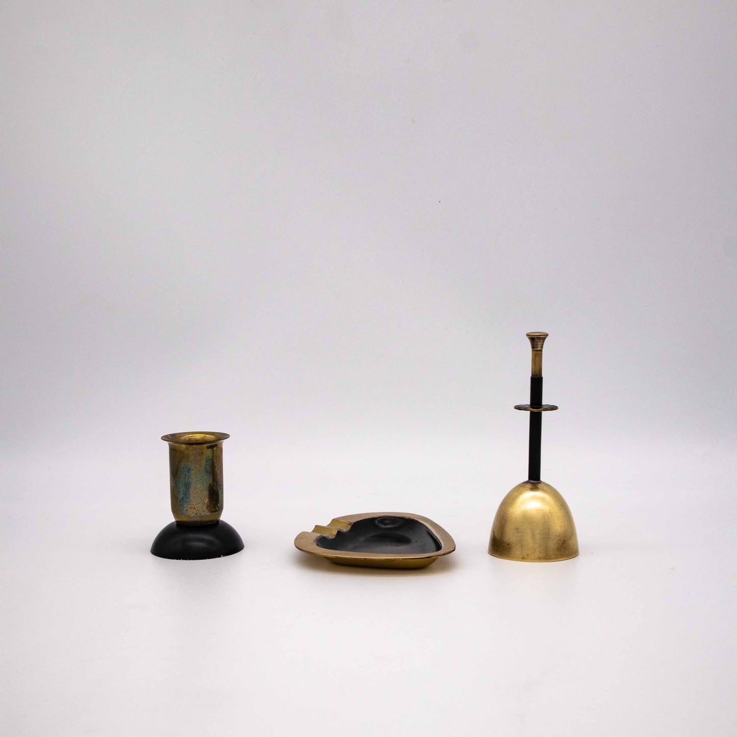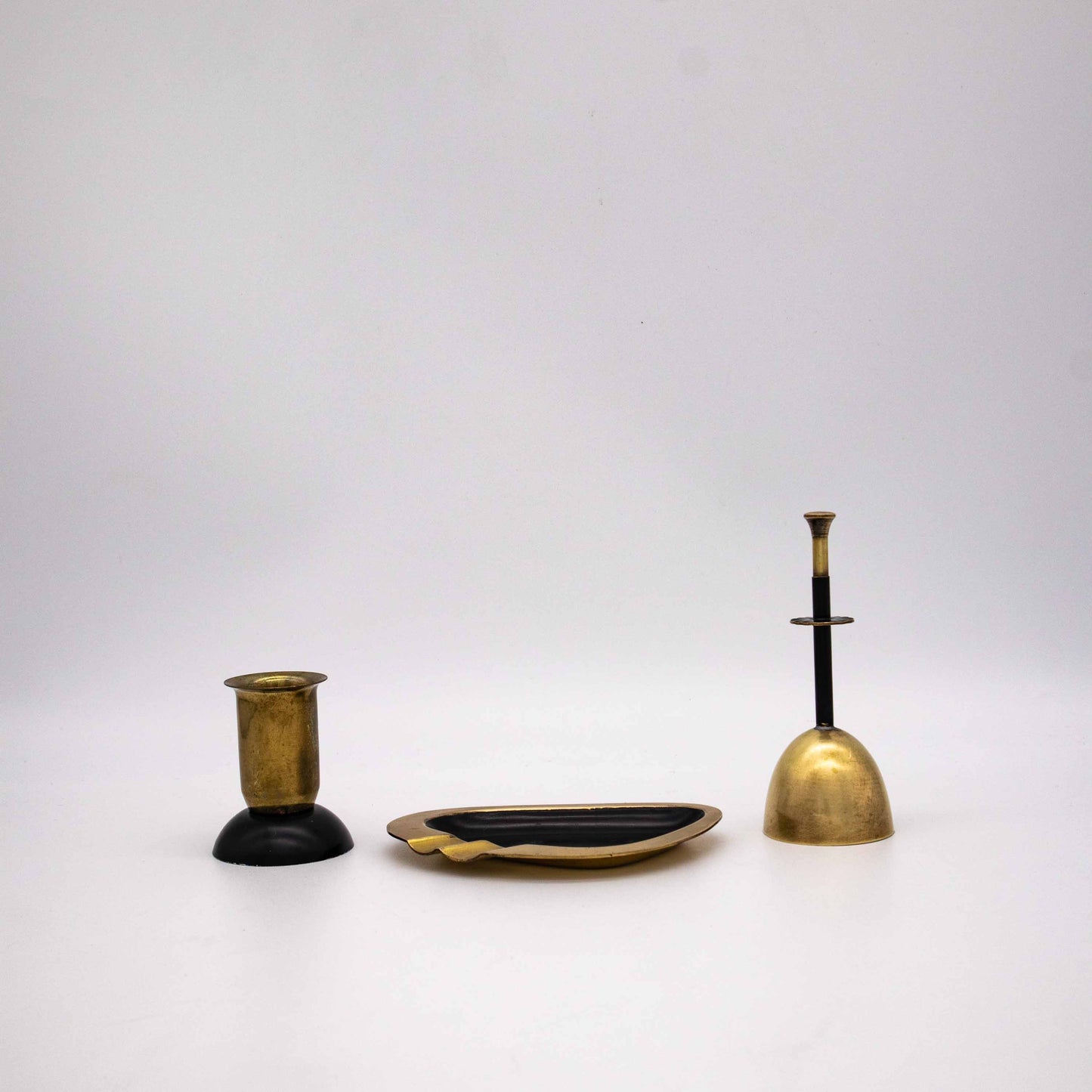 Cet adorable ensemble pour fumer comprend un cendrier, un extincteur de braises et un bougeoir en laiton noirci de haute qualité. L'ensemble a été fabriqué dans les années 1950 par le célèbre fabricant Argentor et porte la marque « AW Made in Austria ». Parfait pour fumer avec style.