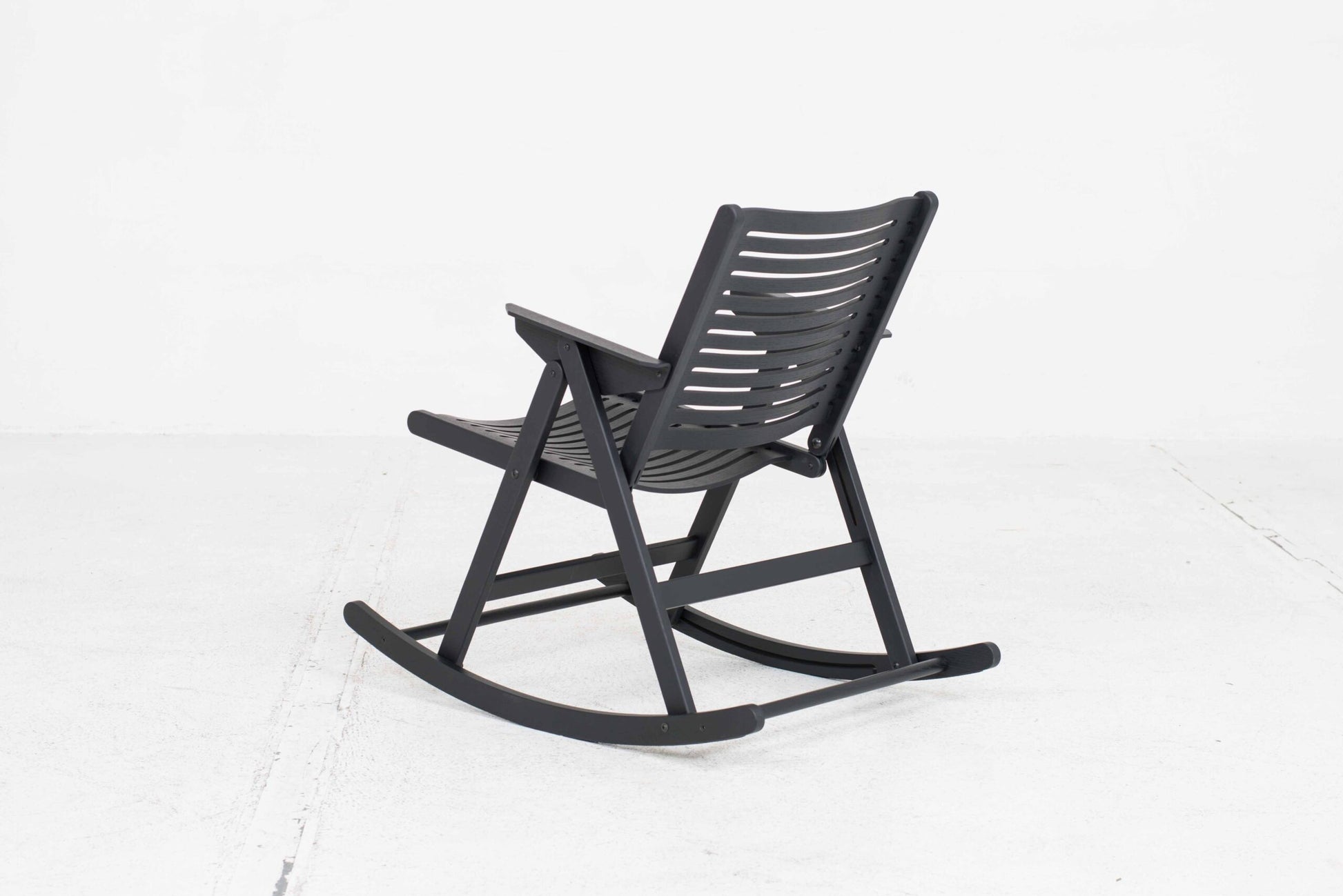 Le fauteuil à bascule Rex de Niko Kralj pour Rex Kralj est un exemple emblématique du design vintage et de l'esthétique moderne du milieu du siècle. Inspiré de la légendaire chaise Rex, exposée au MoMA, ce fauteuil à bascule pliant allie charme futuriste et élégance intemporelle. La marque Rex Kralj est synonyme de qualité exceptionnelle et perpétue la philosophie de design de son fondateur. Ce fauteuil à bascule en chêne noir est une pièce maîtresse pour tout intérieur élégant.