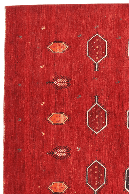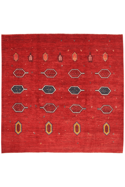 Le Rizbaf Le tapis vintage mesurant 197 x 201 cm est une expression d'un savoir-faire magistral et d'une histoire culturelle. Ces tapis sont connus pour leur tissage serré et leur utilisation de laine filée à la main, ce qui leur confère une texture et une durabilité uniques. Les designs sont souvent inspirés de la nature et du mode de vie des nomades Gashgai et Lori qui fabriquent ces tapis. Ils sont non seulement décoratifs mais aussi fonctionnels car ils apportent chaleur et confort à n'importe quelle pièce.