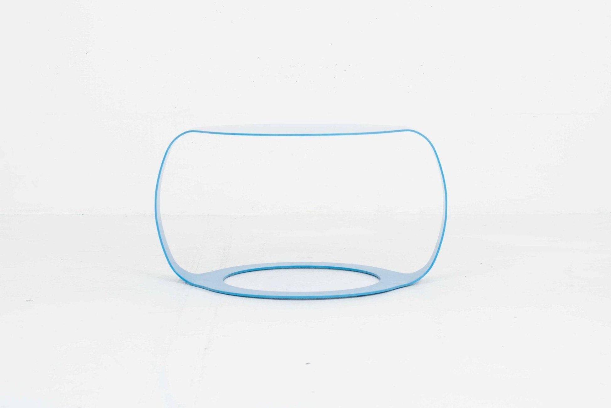 - Matériau : aluminium 6 mm, peinture automobile bleu clair.