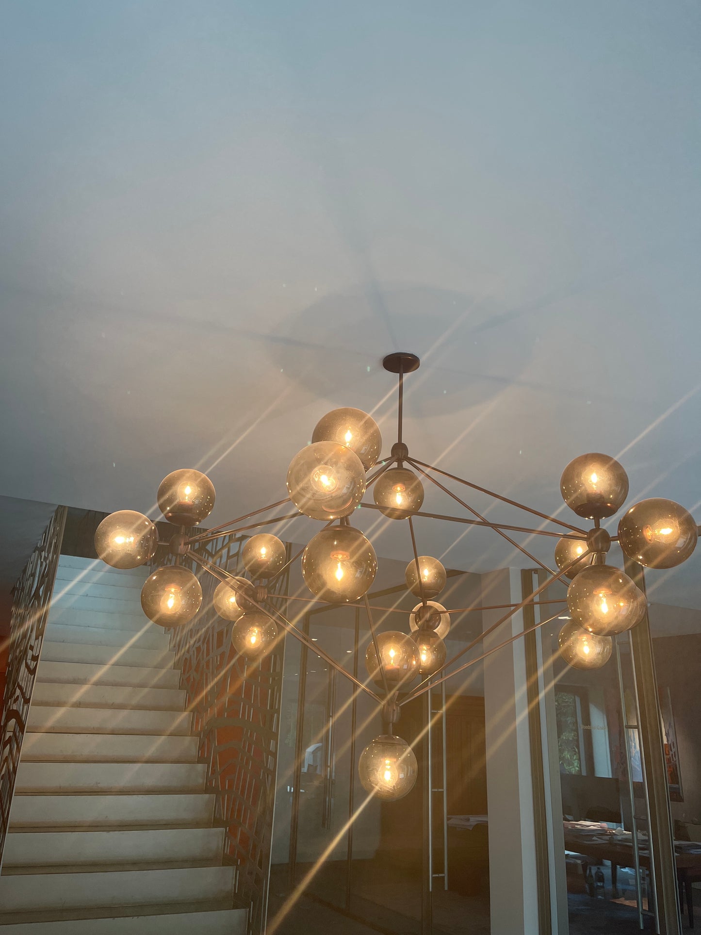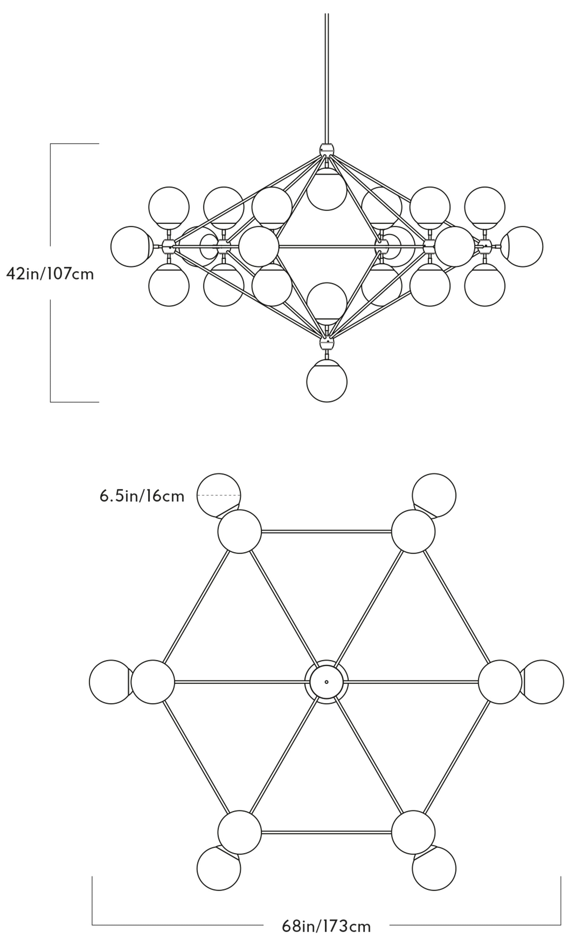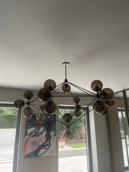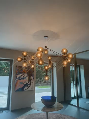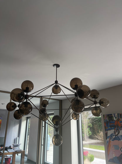 Le modèle Modo 6-21 est un miracle spatial avec une forme de base hexagonale et 21 boules de verre qui assurent un éclairage spectaculaire.